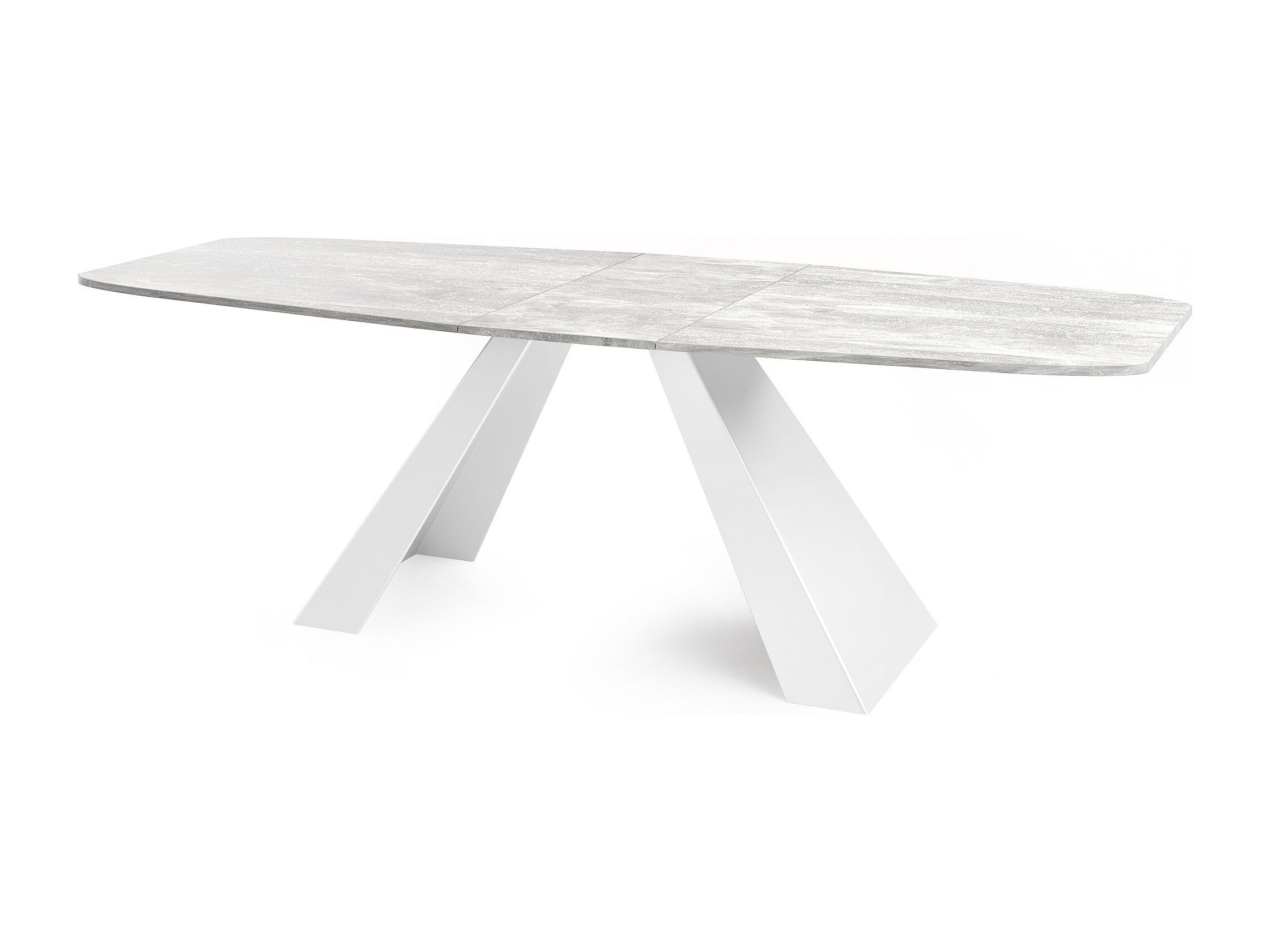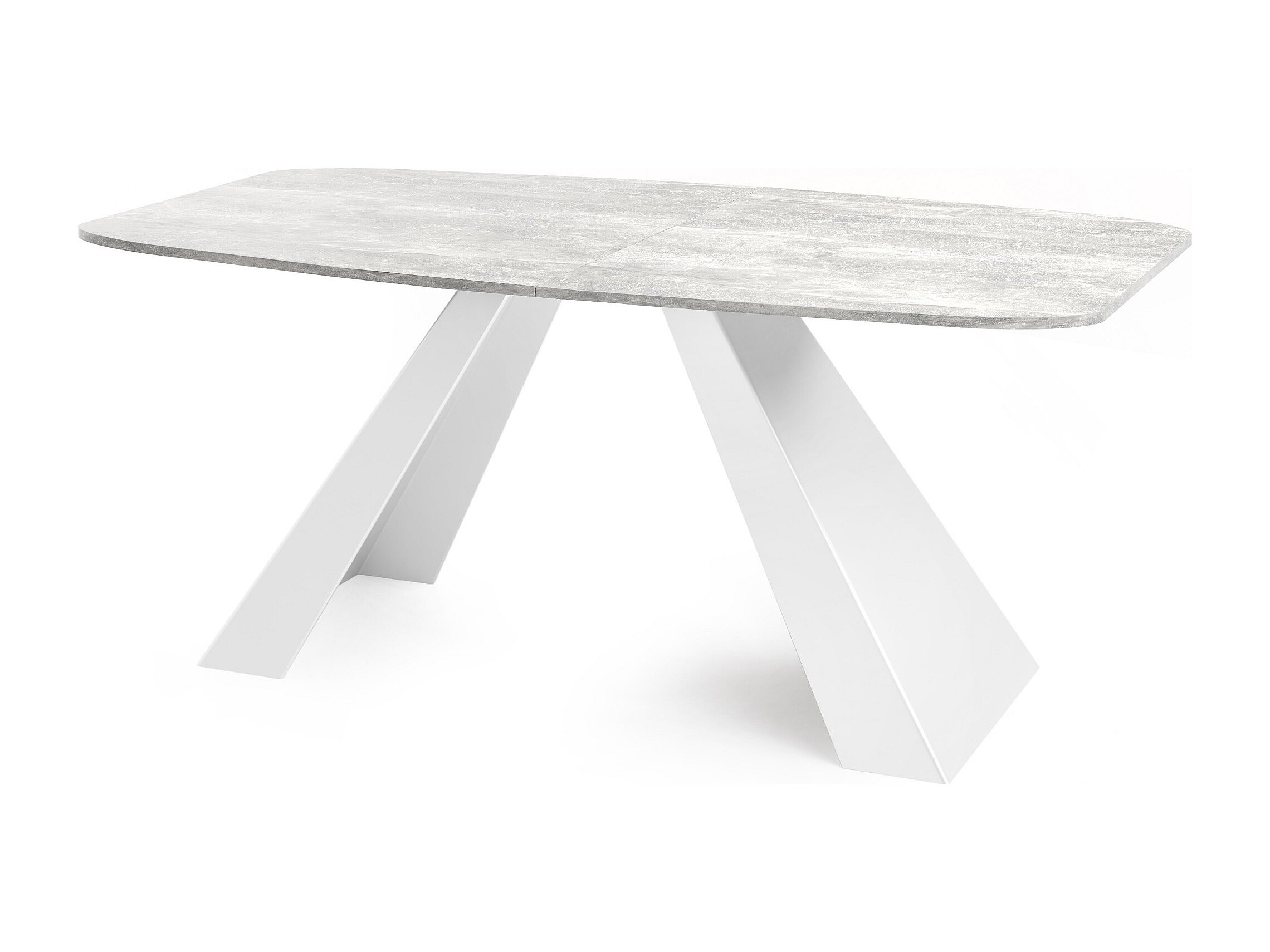 Esstisch Monte Weiß im Modern Stil, Rechteckiger Tisch - Ausziehbar von 160 cm bis 200 cm, Pulverbeschichtete Weiße Metallbeine - 160 x 80 cm - Beton Grau