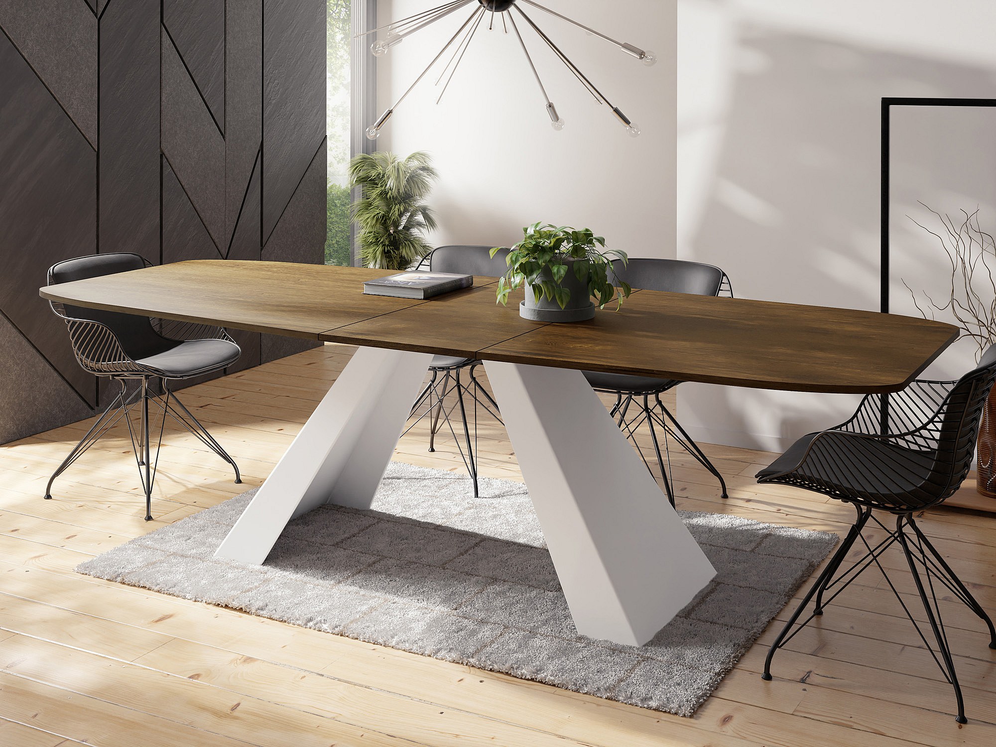 Esstisch Monte Weiß im Modern Stil, Rechteckiger Tisch - Ausziehbar von 160 cm bis 200 cm, Pulverbeschichtete Weiße Metallbeine - 160 x 80 cm - Lefkas Eiche