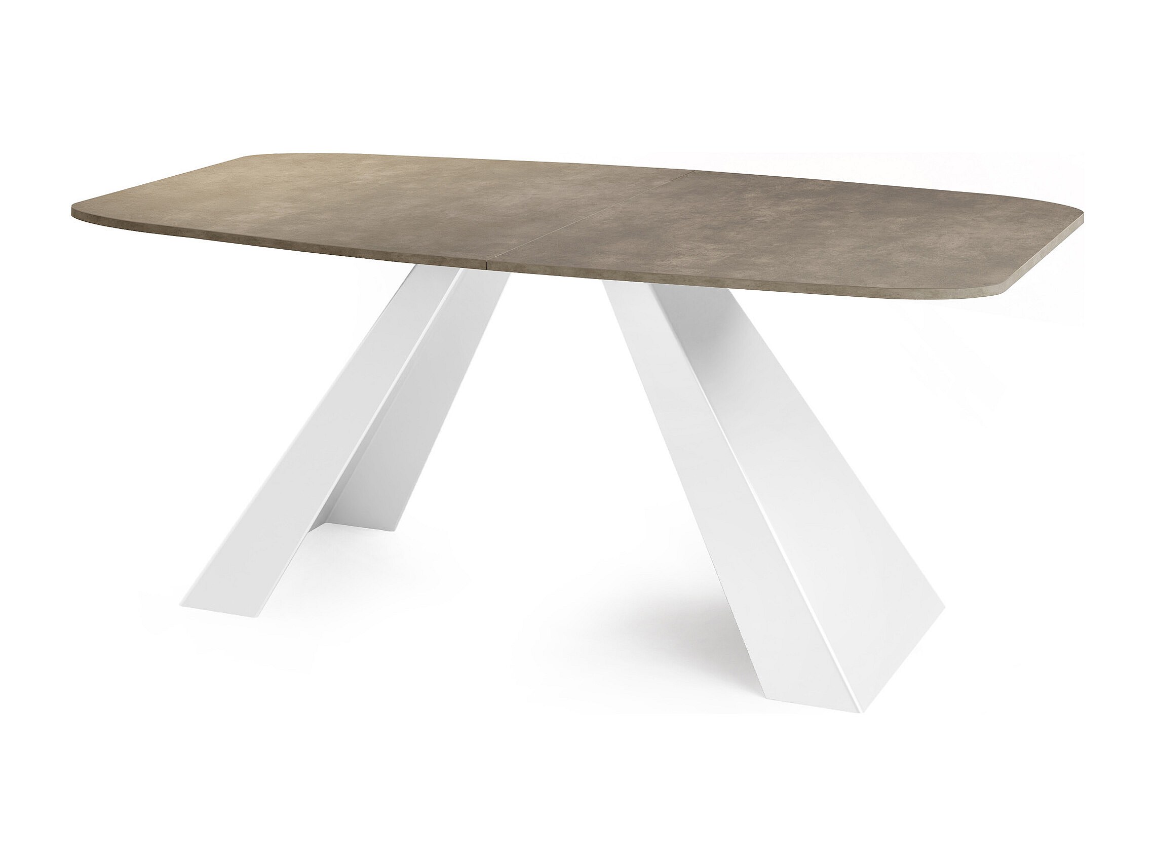 Esstisch Monte Weiß im Modern Stil, Rechteckiger Tisch - Ausziehbar von 180 cm bis 220 cm, Pulverbeschichtete Weiße Metallbeine - 180 x 90 cm - Chicago Beton Grau