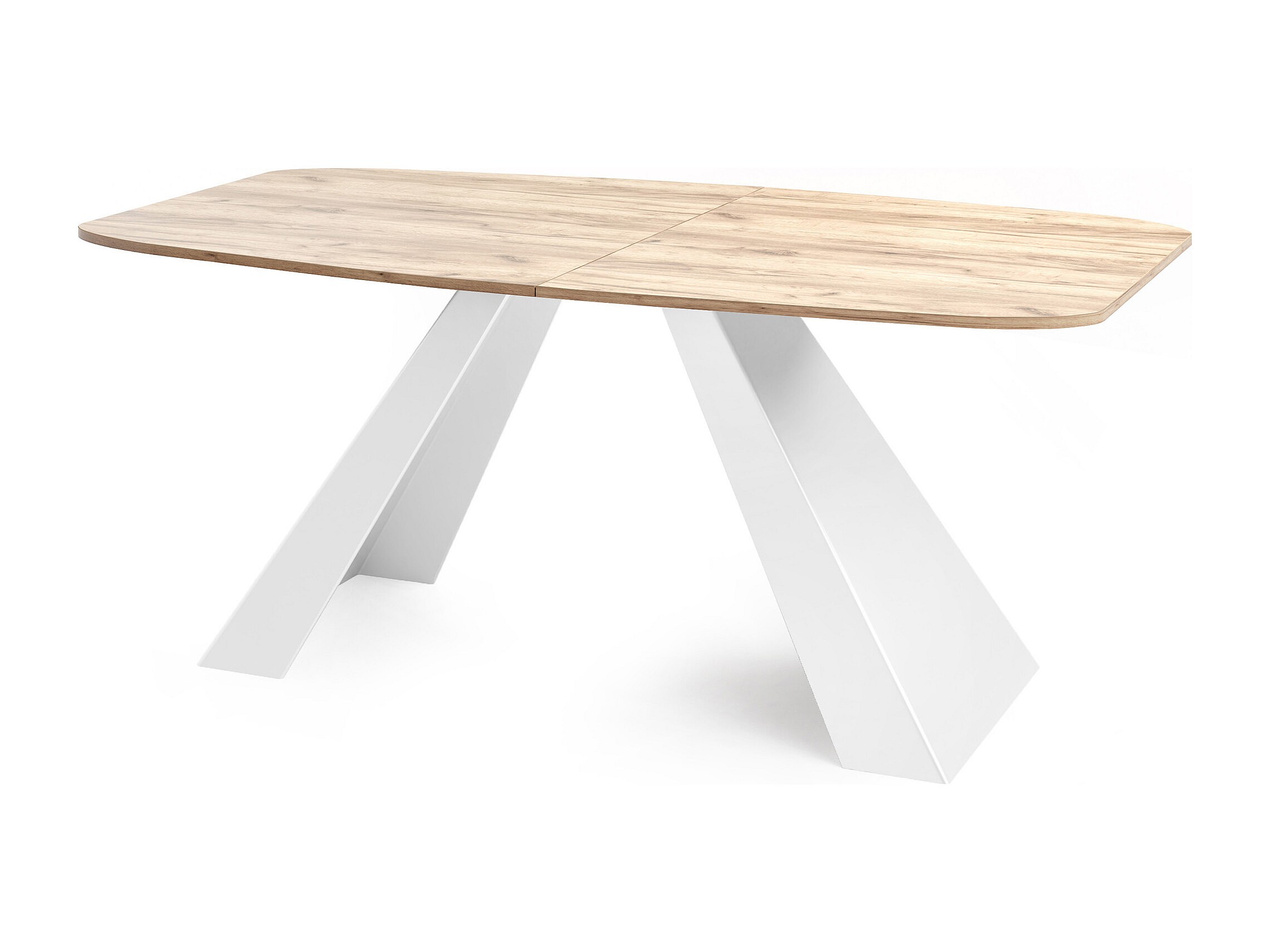 Esstisch Monte Weiß im Modern Stil, Rechteckiger Tisch - Ausziehbar von 180 cm bis 220 cm, Pulverbeschichtete Weiße Metallbeine - 180 x 90 cm - Craft Eiche