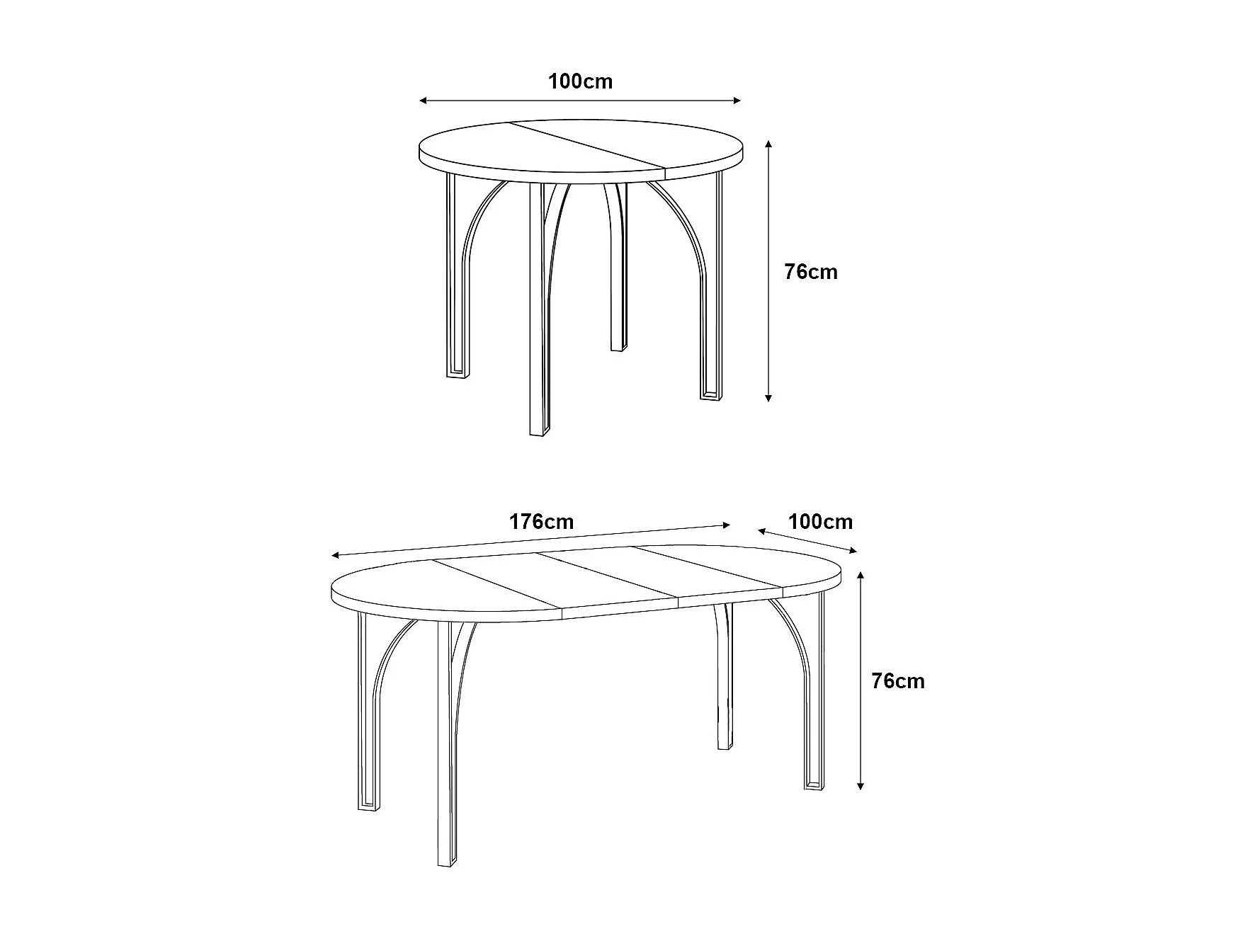 ESSTISCH Nastro 100 Schwarz Molet / Graphit 100/176 / 100 / 76cm
