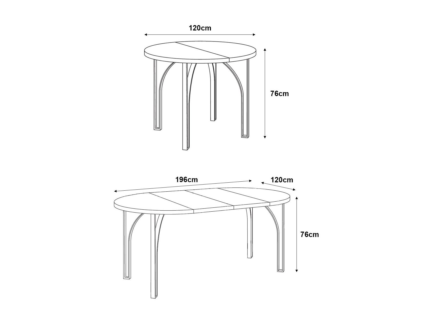 ESSTISCH Nastro 120 Halifax Eiche Natur / Schwarz 120/196 / 120 / 76cm