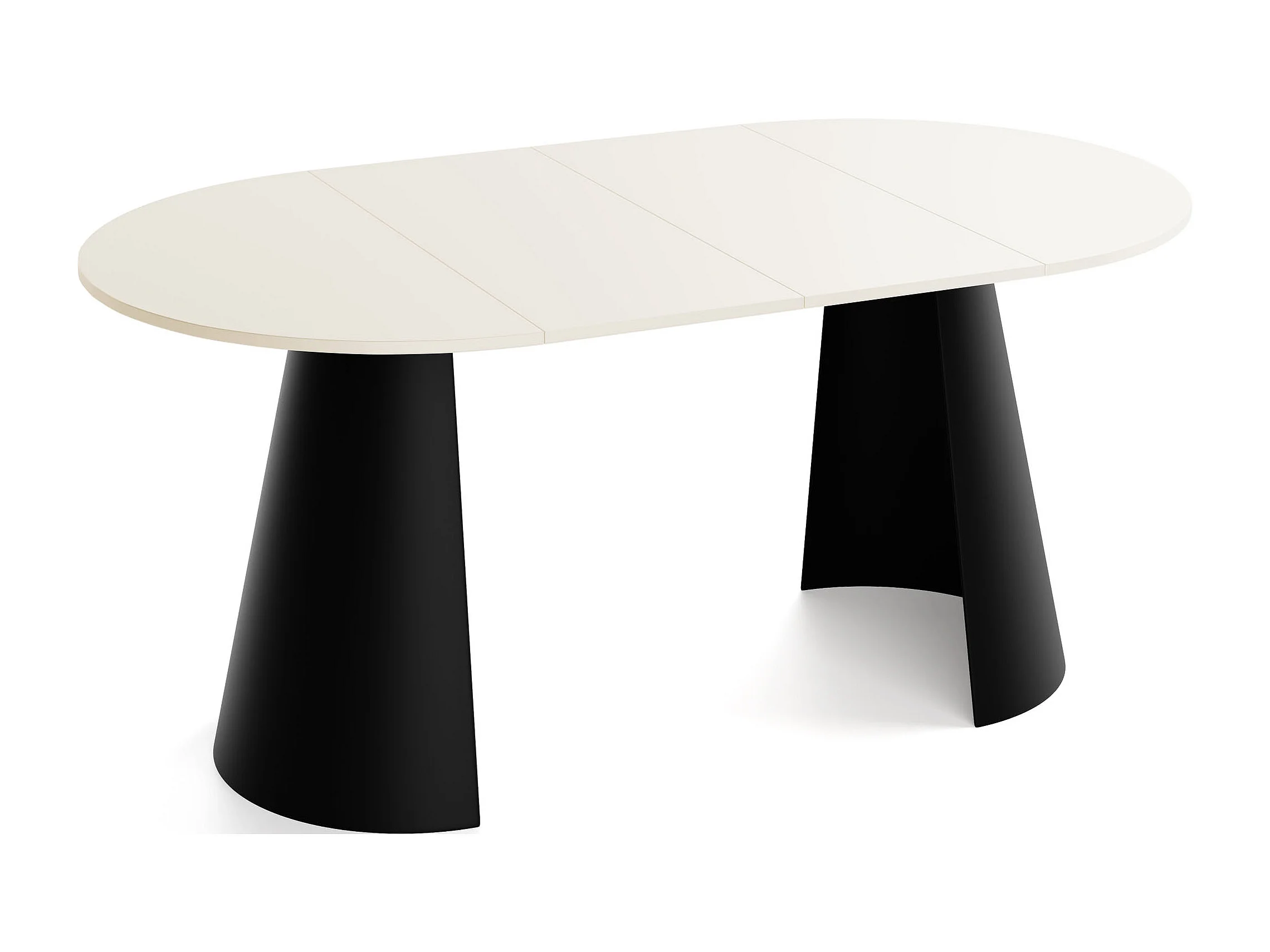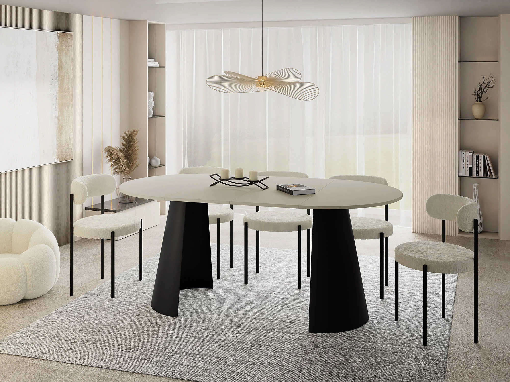 Esstisch Rund Ausziehbar im Loft-Stil – 100 cm – Industrieller Tisch mit Schwarzen Konischem Metallbeinen für 5-8 Personen, Wohnzimmer Esszimmer – Beige Cashmere