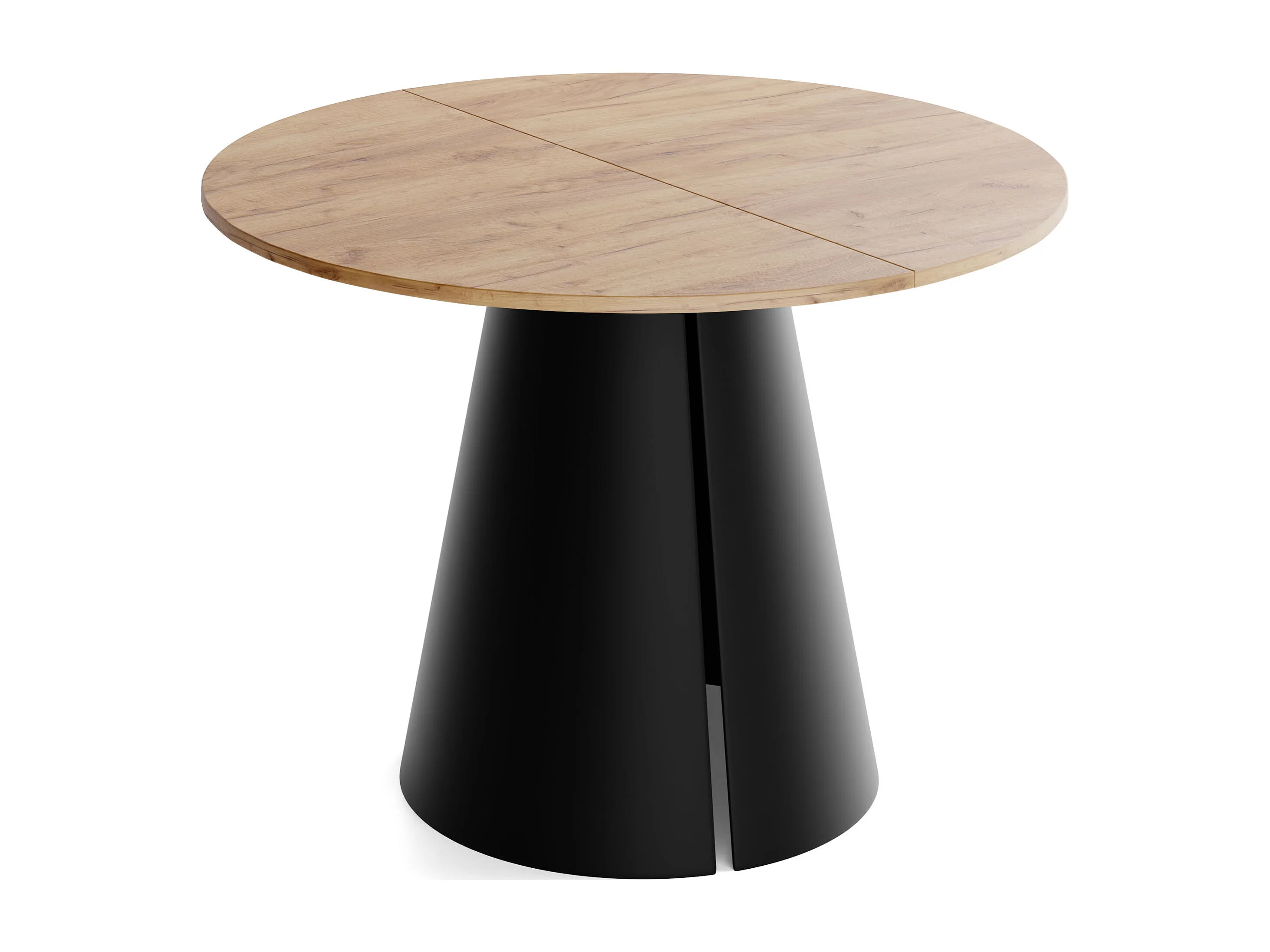 Esstisch Rund Ausziehbar im Loft-Stil – 100 cm – Industrieller Tisch mit Schwarzen Konischem Metallbeinen für 5-8 Personen, Wohnzimmer Esszimmer – Eiche Hell Braun