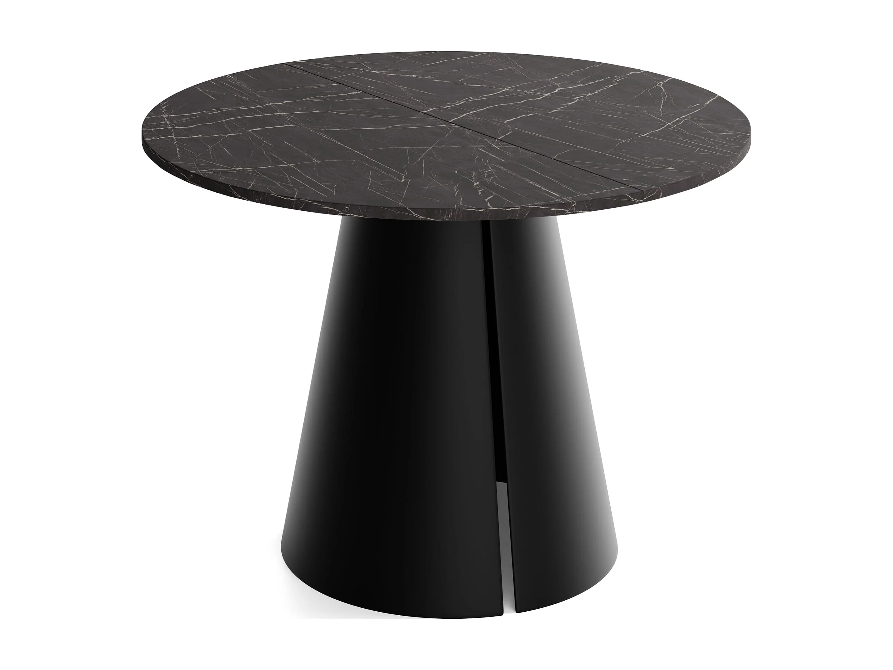 Esstisch Rund Ausziehbar im Loft-Stil – 100 cm – Industrieller Tisch mit Schwarzen Konischem Metallbeinen für 5-8 Personen, Wohnzimmer Esszimmer – Marmor Schwarz