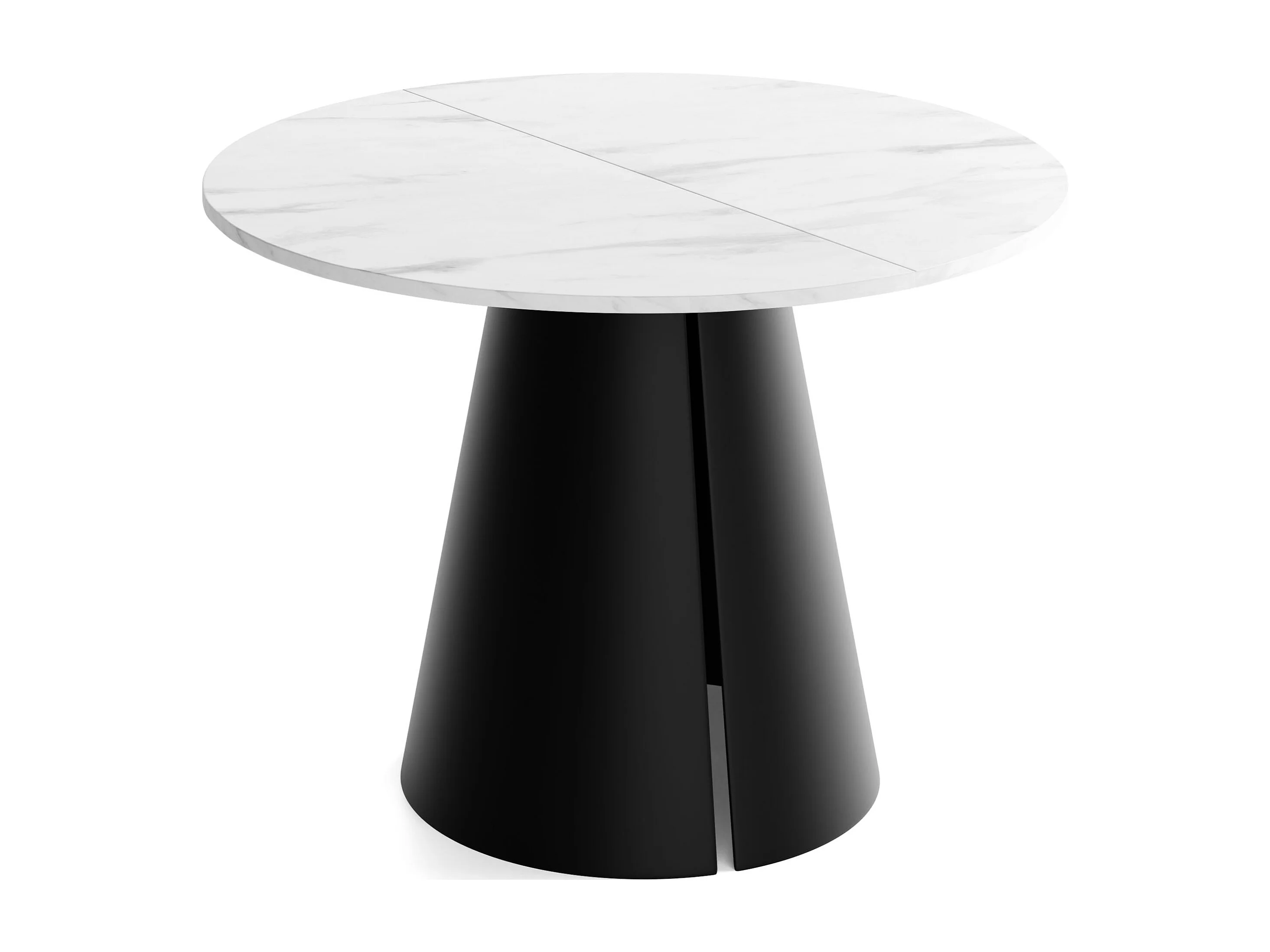 Esstisch Rund Ausziehbar im Loft-Stil – 100 cm – Industrieller Tisch mit Schwarzen Konischem Metallbeinen für 5-8 Personen, Wohnzimmer Esszimmer – Marmor Weiß