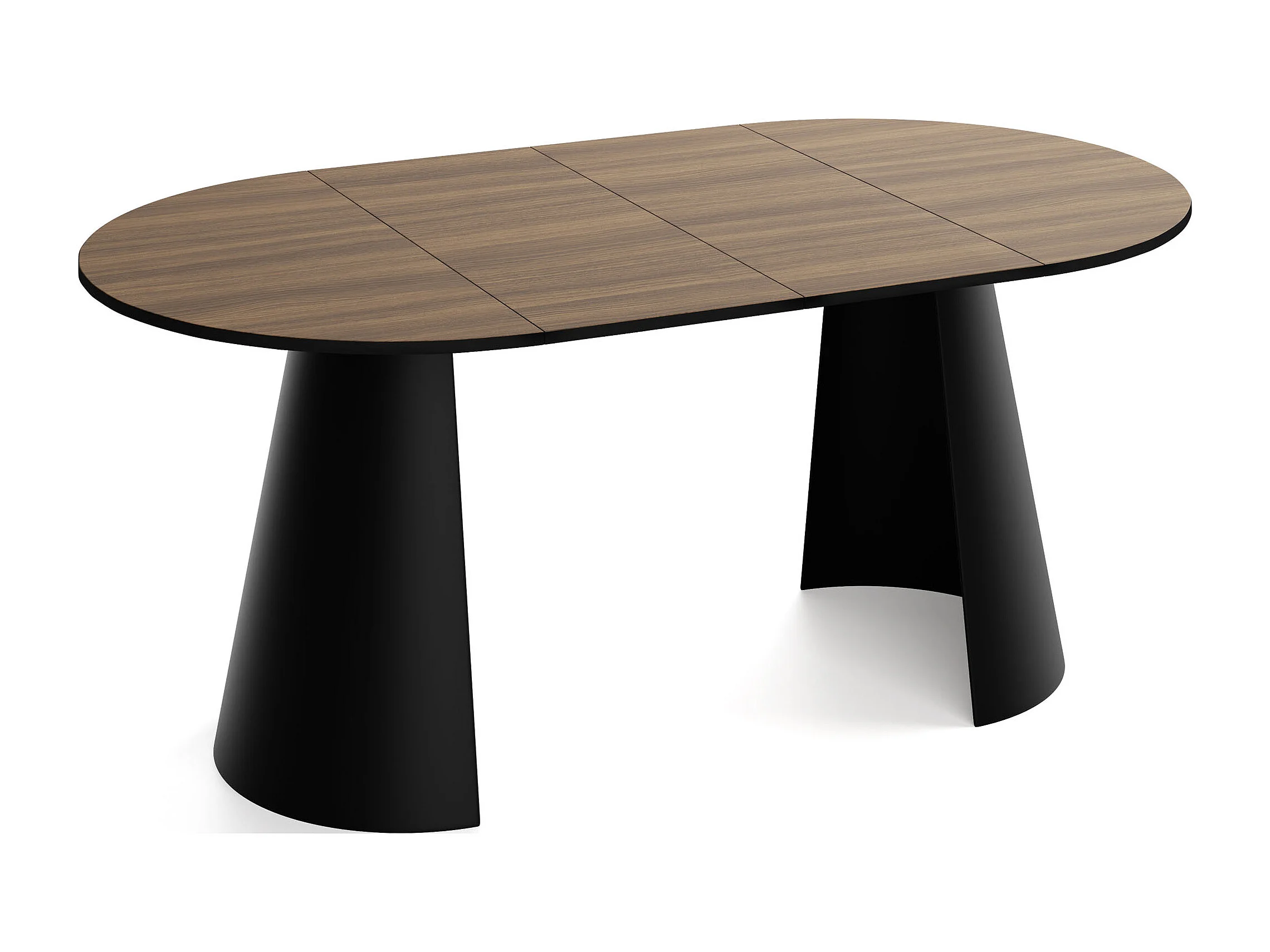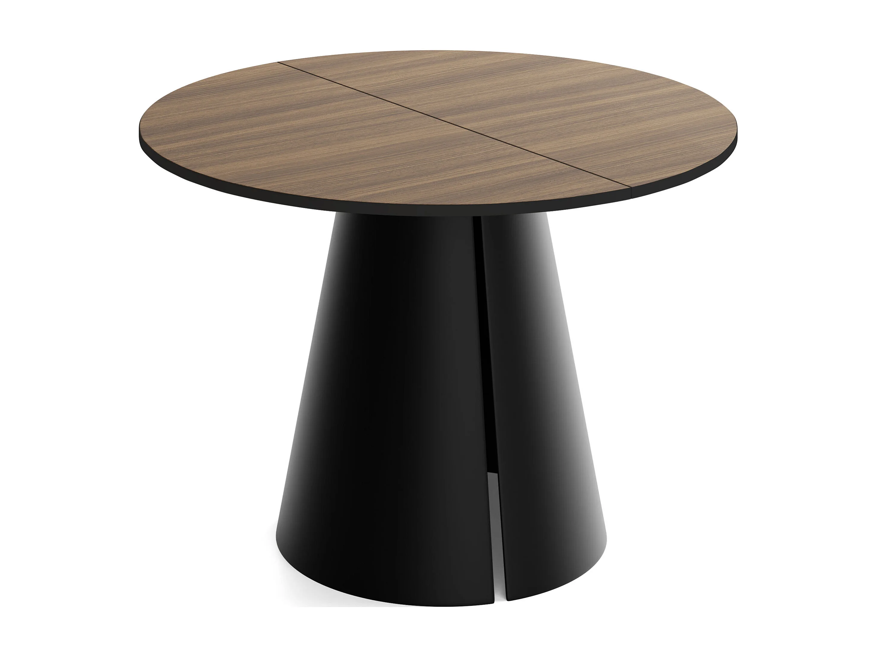 Esstisch Rund Ausziehbar im Loft-Stil – 100 cm – Industrieller Tisch mit Schwarzen Konischem Metallbeinen für 5-8 Personen, Wohnzimmer Esszimmer – Walnuss Braun