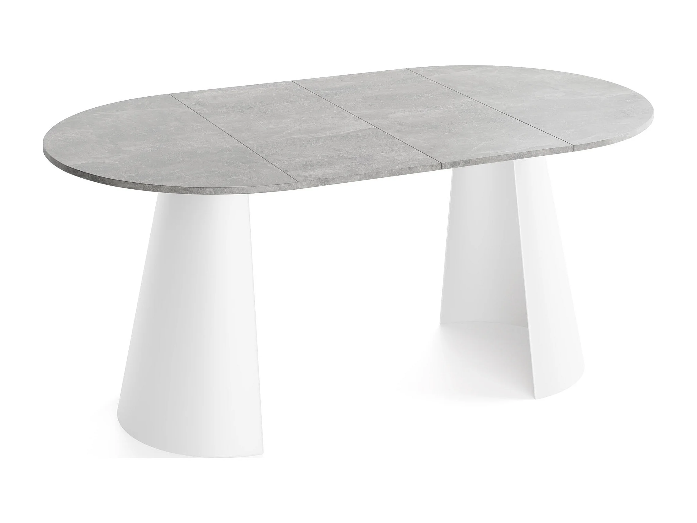 Esstisch Rund Ausziehbar im Loft-Stil – 100 cm – Industrieller Tisch mit Weißen Konischem Metallbeinen für 5-8 Personen, Wohnzimmer Esszimmer – Grauer Beton