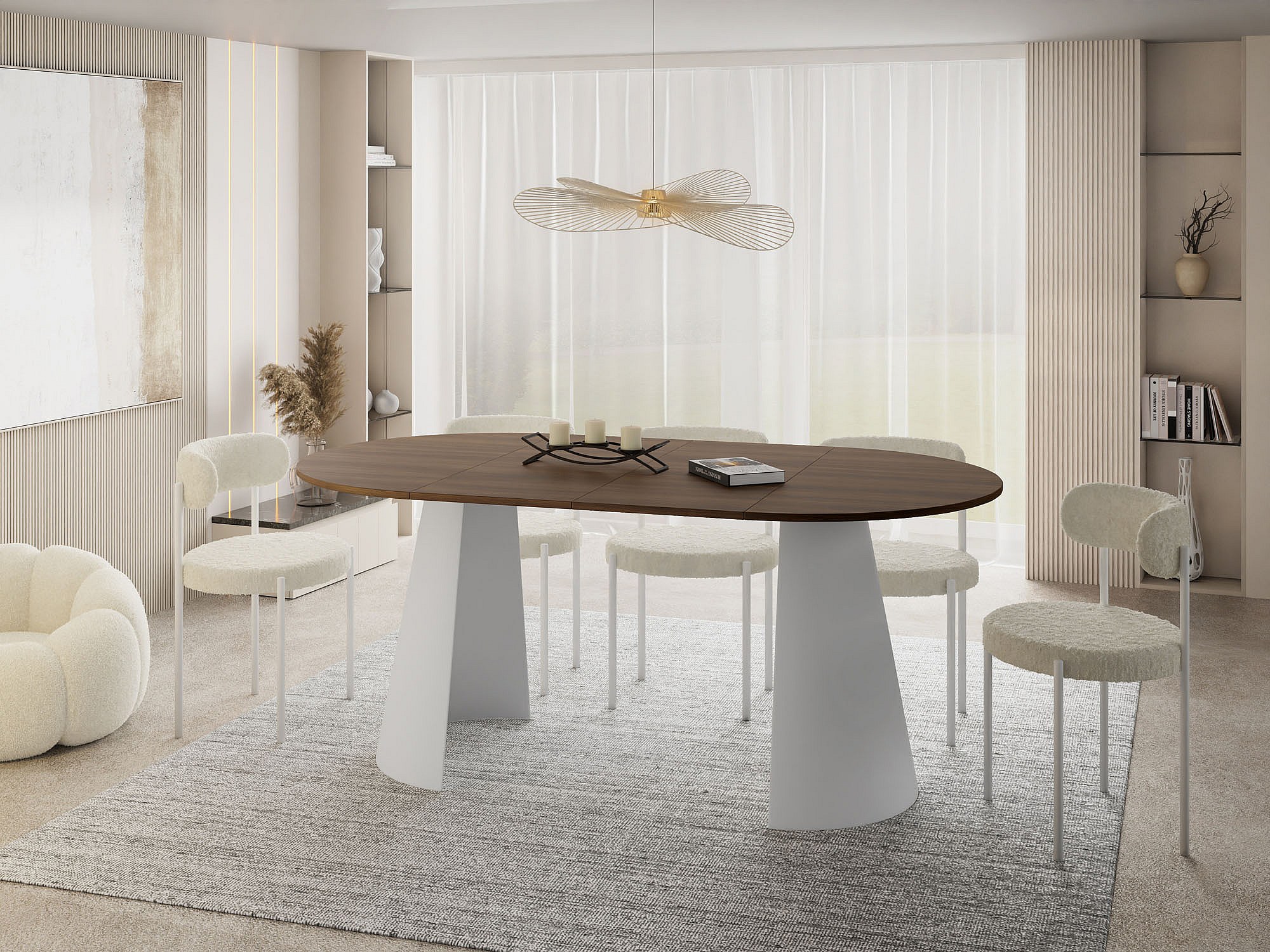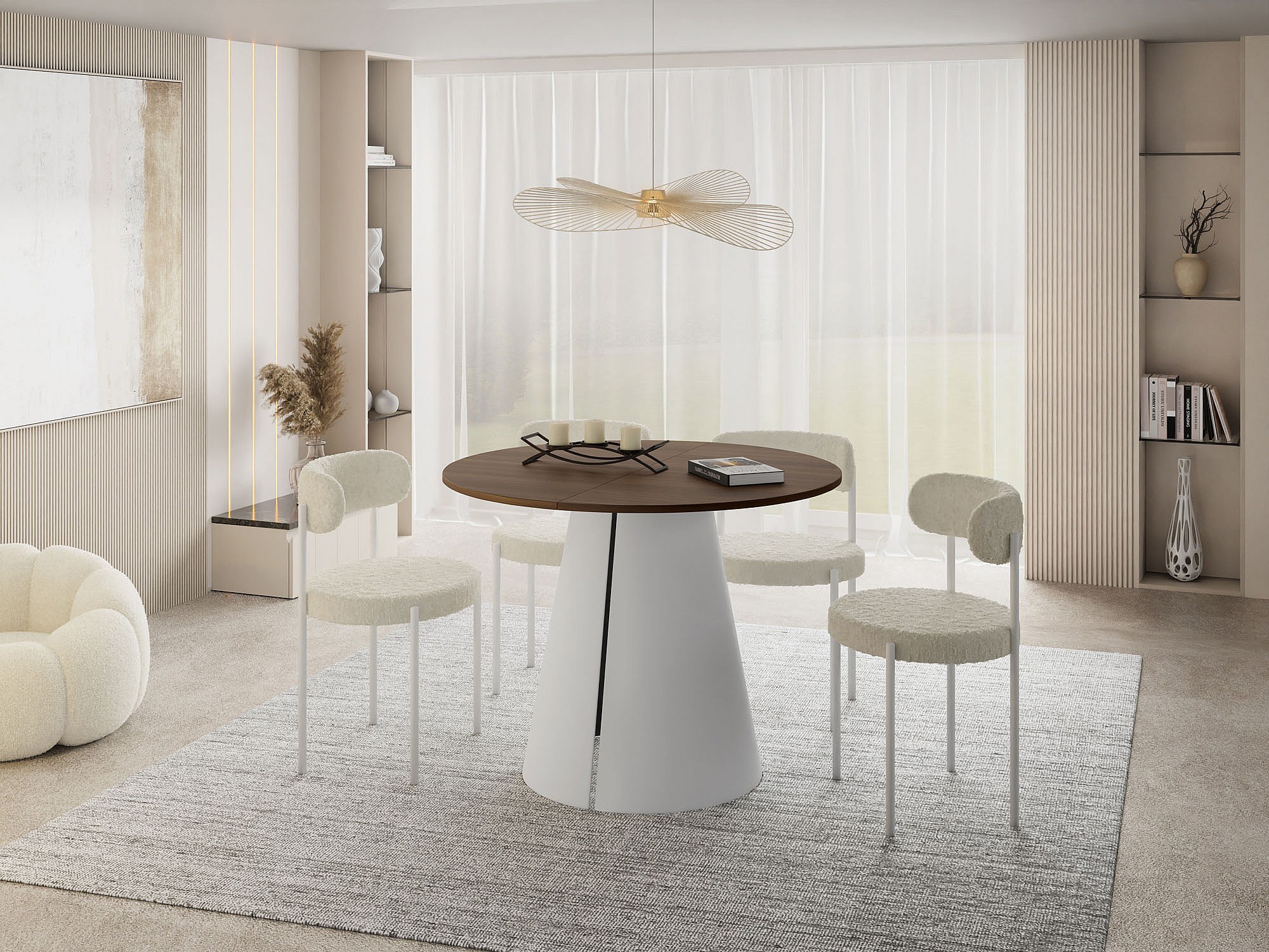 Esstisch Rund Ausziehbar im Loft-Stil – 100 cm – Industrieller Tisch mit Weißen Konischem Metallbeinen für 5-8 Personen, Wohnzimmer Esszimmer – Walnuss Braun