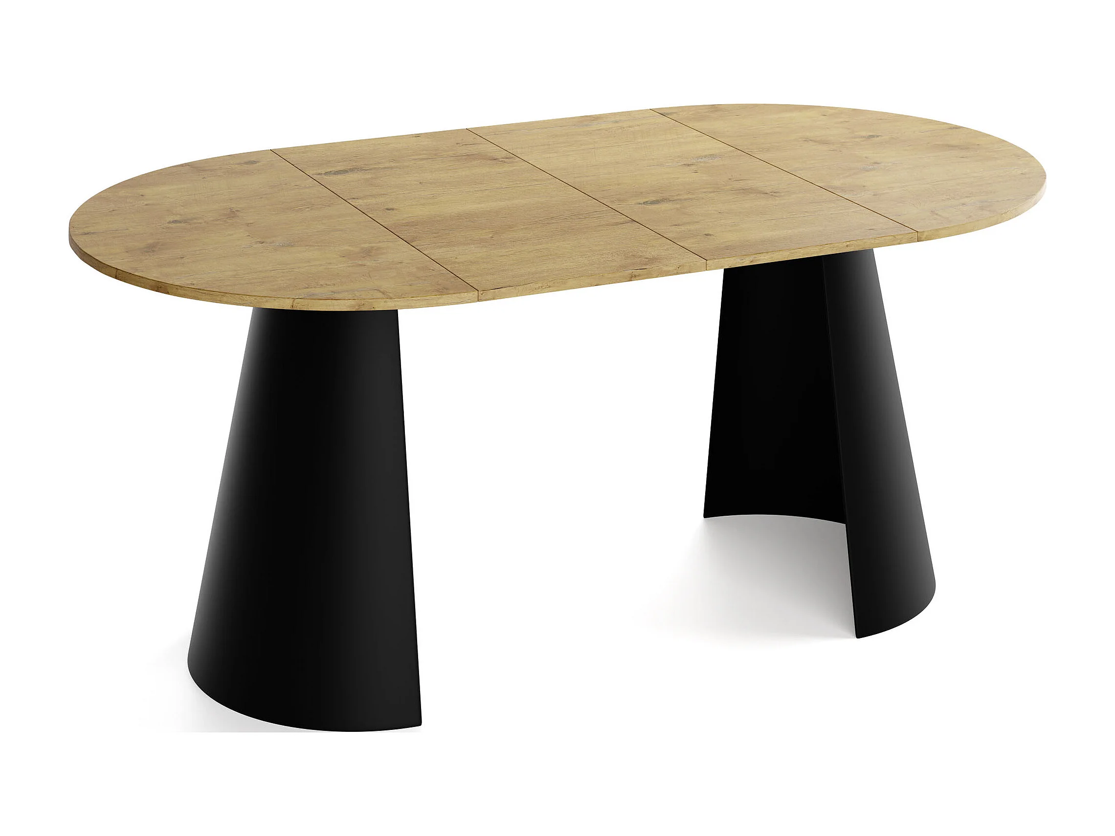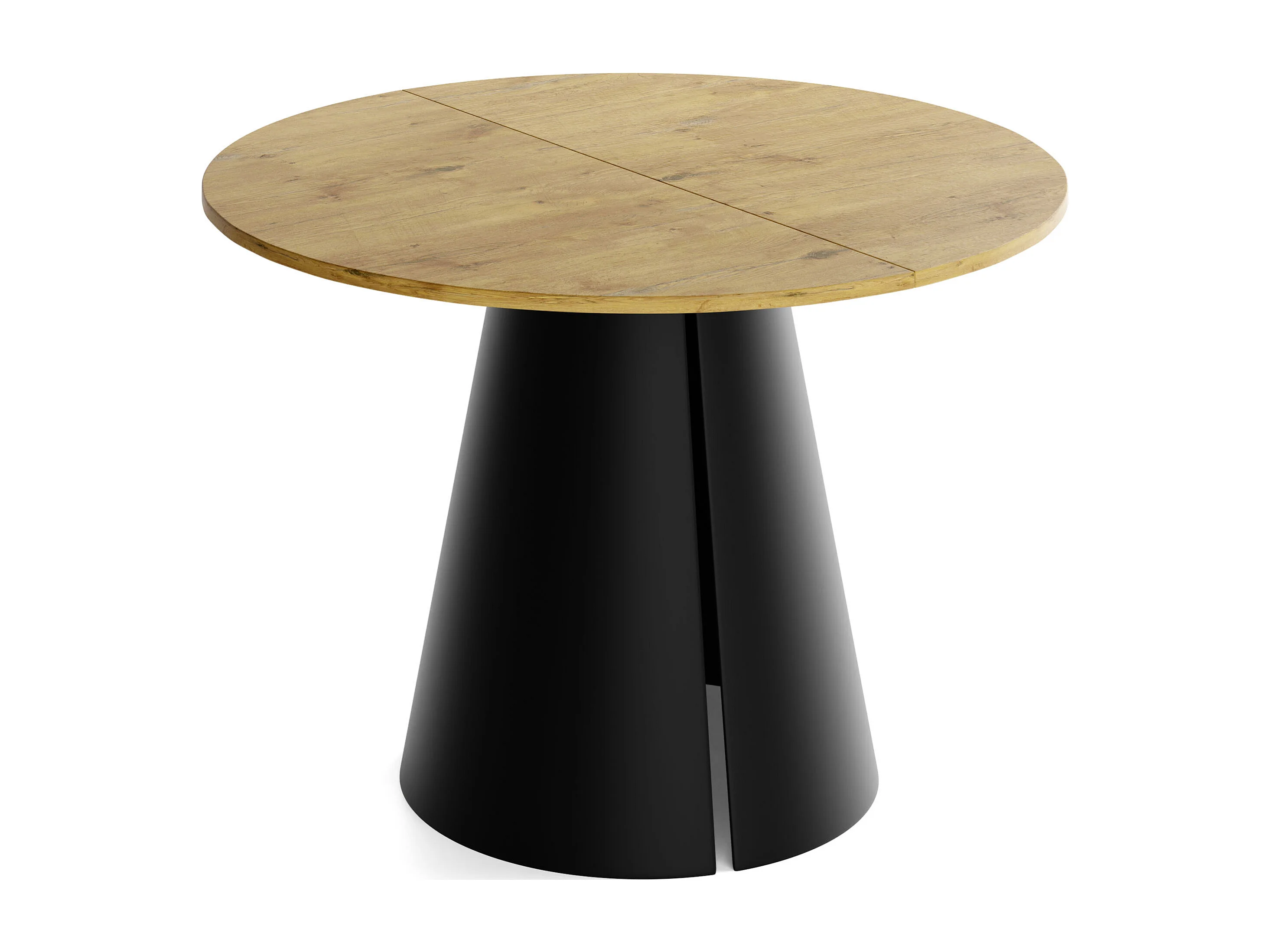 Esstisch Rund Ausziehbar im Loft-Stil – 120 cm – Industrieller Tisch mit Schwarzen Konischem Metallbeinen für 6-10 Personen, Wohnzimmer Esszimmer – Eiche Hell Braun