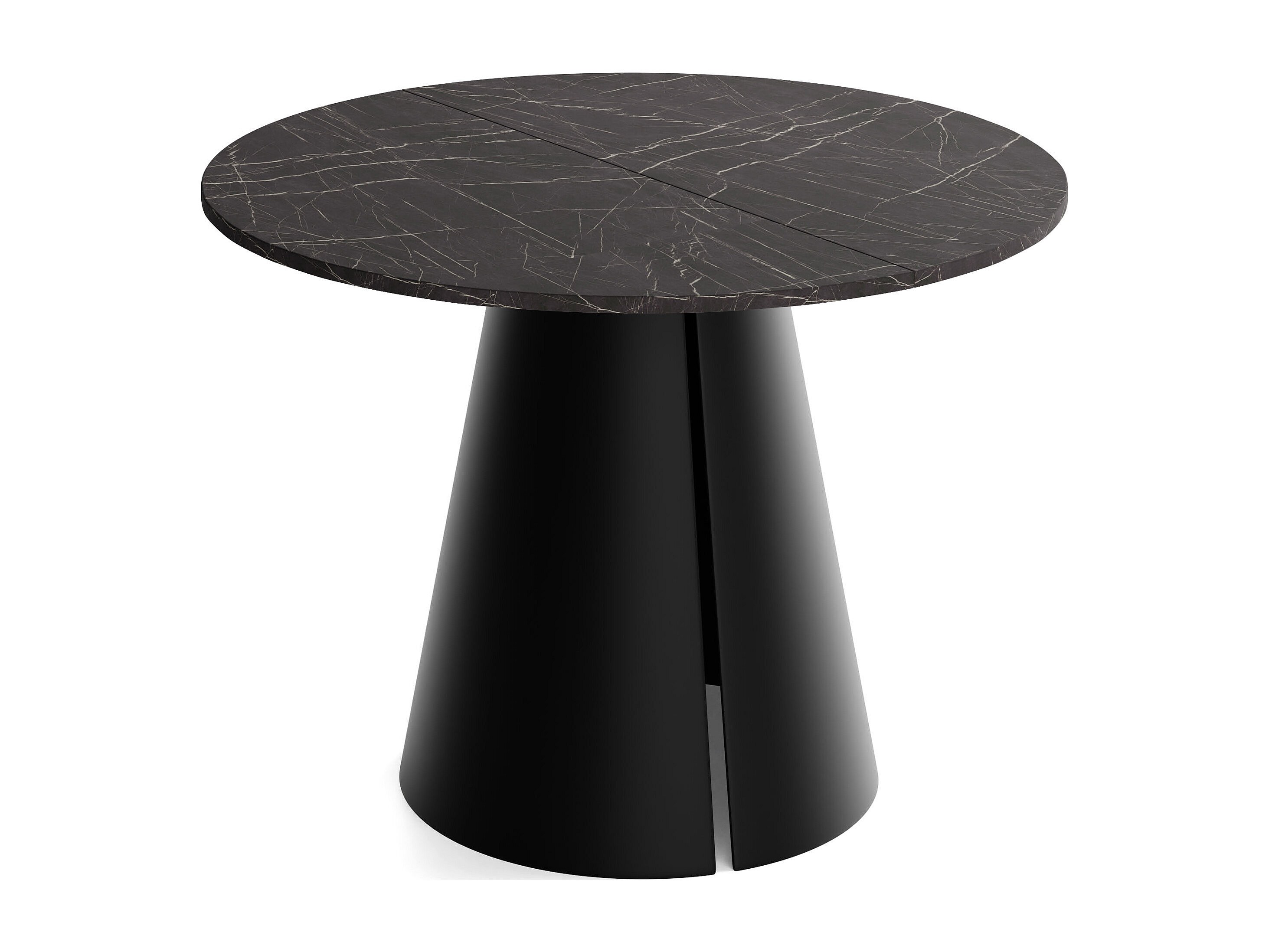 Esstisch Rund Ausziehbar im Loft-Stil – 120 cm – Industrieller Tisch mit Schwarzen Konischem Metallbeinen für 6-10 Personen, Wohnzimmer Esszimmer – Marmor Schwarz