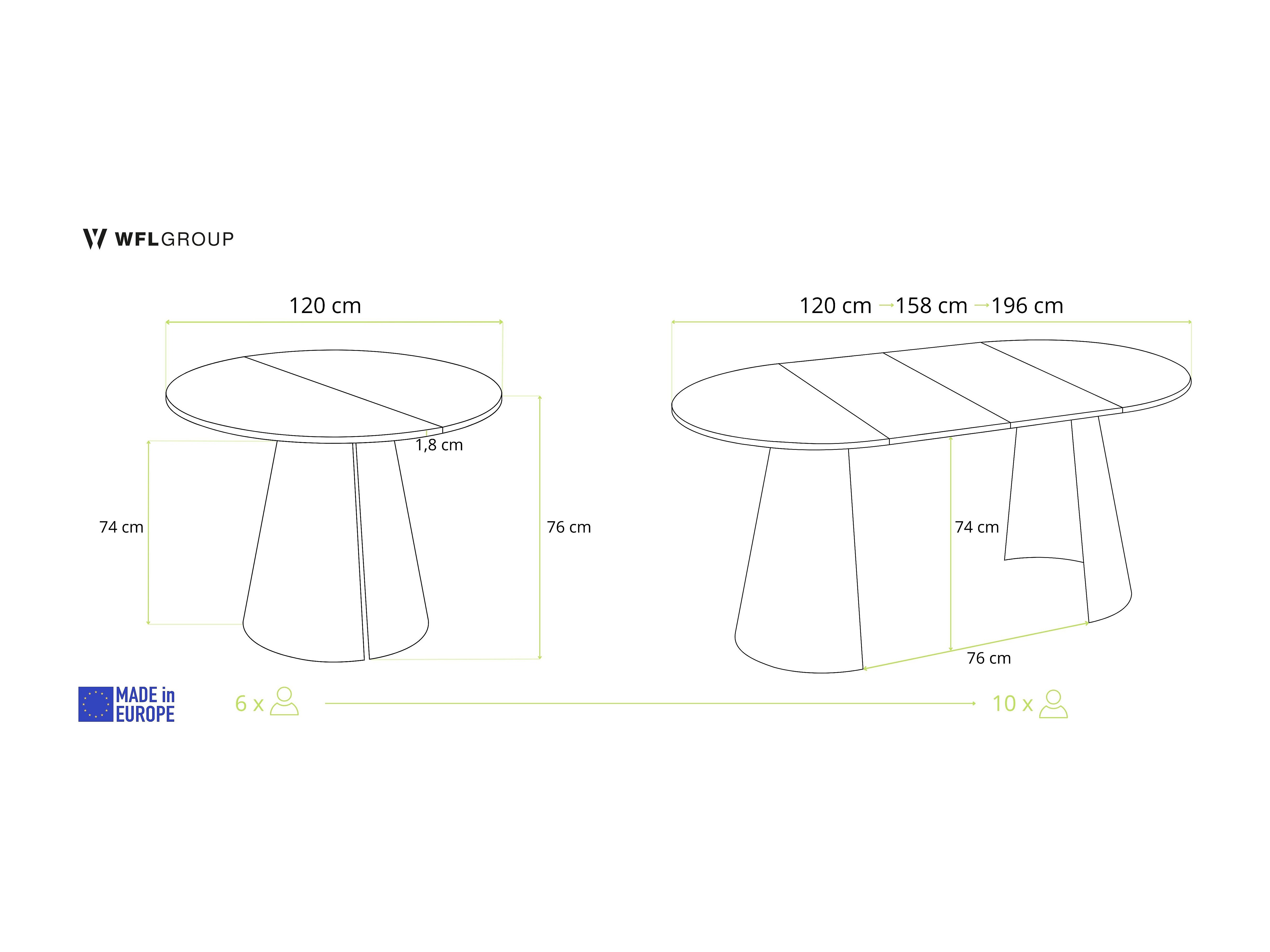Esstisch Rund Ausziehbar im Loft-Stil – 120 cm – Industrieller Tisch mit Schwarzen Konischem Metallbeinen für 6-10 Personen, Wohnzimmer Esszimmer – Marmor Weiß