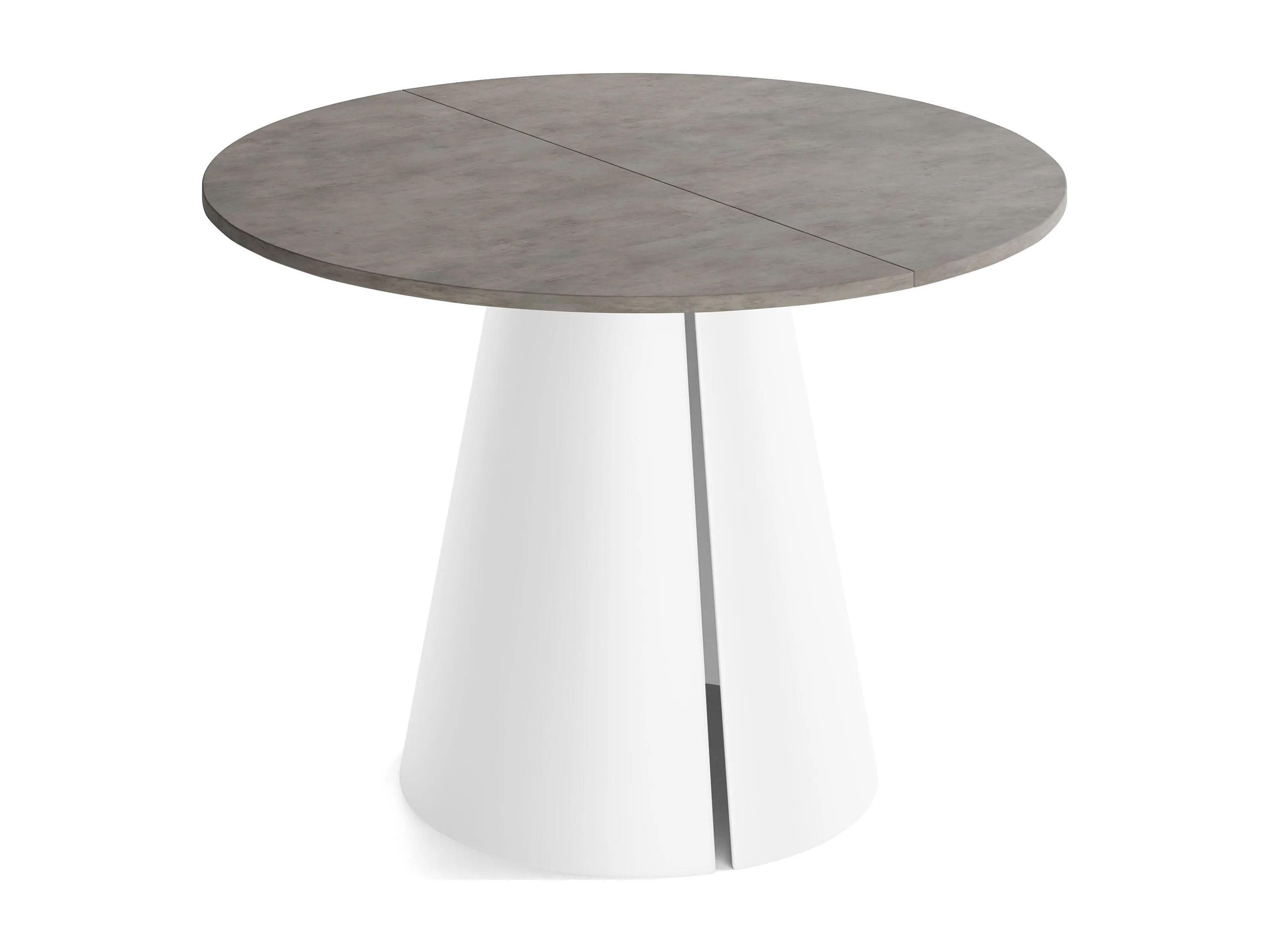 Esstisch Rund Ausziehbar im Loft-Stil – 120 cm – Industrieller Tisch mit Weißen Konischem Metallbeinen für 6-10 Personen, Wohnzimmer – Beton-Optik Dunkelgrau