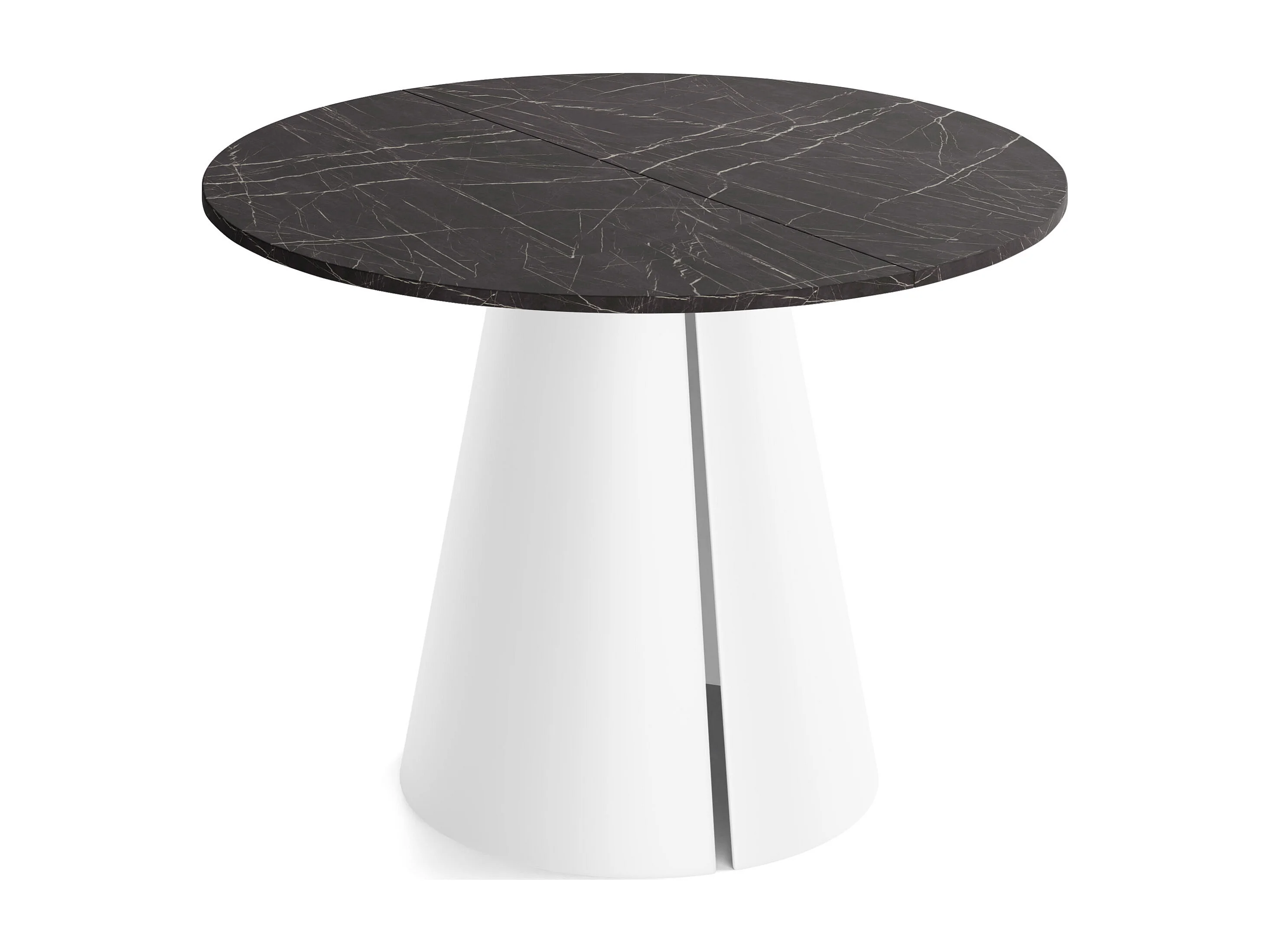 Esstisch Rund Ausziehbar im Loft-Stil – 120 cm – Industrieller Tisch mit Weißen Konischem Metallbeinen für 6-10 Personen, Wohnzimmer Esszimmer – Marmor Schwarz