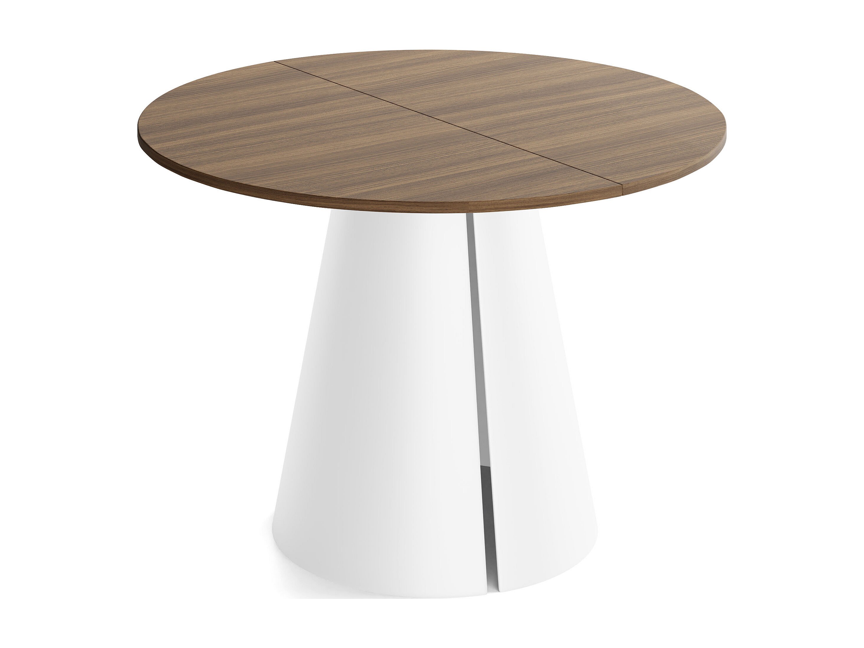 Esstisch Rund Ausziehbar im Loft-Stil – 120 cm – Industrieller Tisch mit Weißen Konischem Metallbeinen für 6-10 Personen, Wohnzimmer Esszimmer – Walnuss Braun