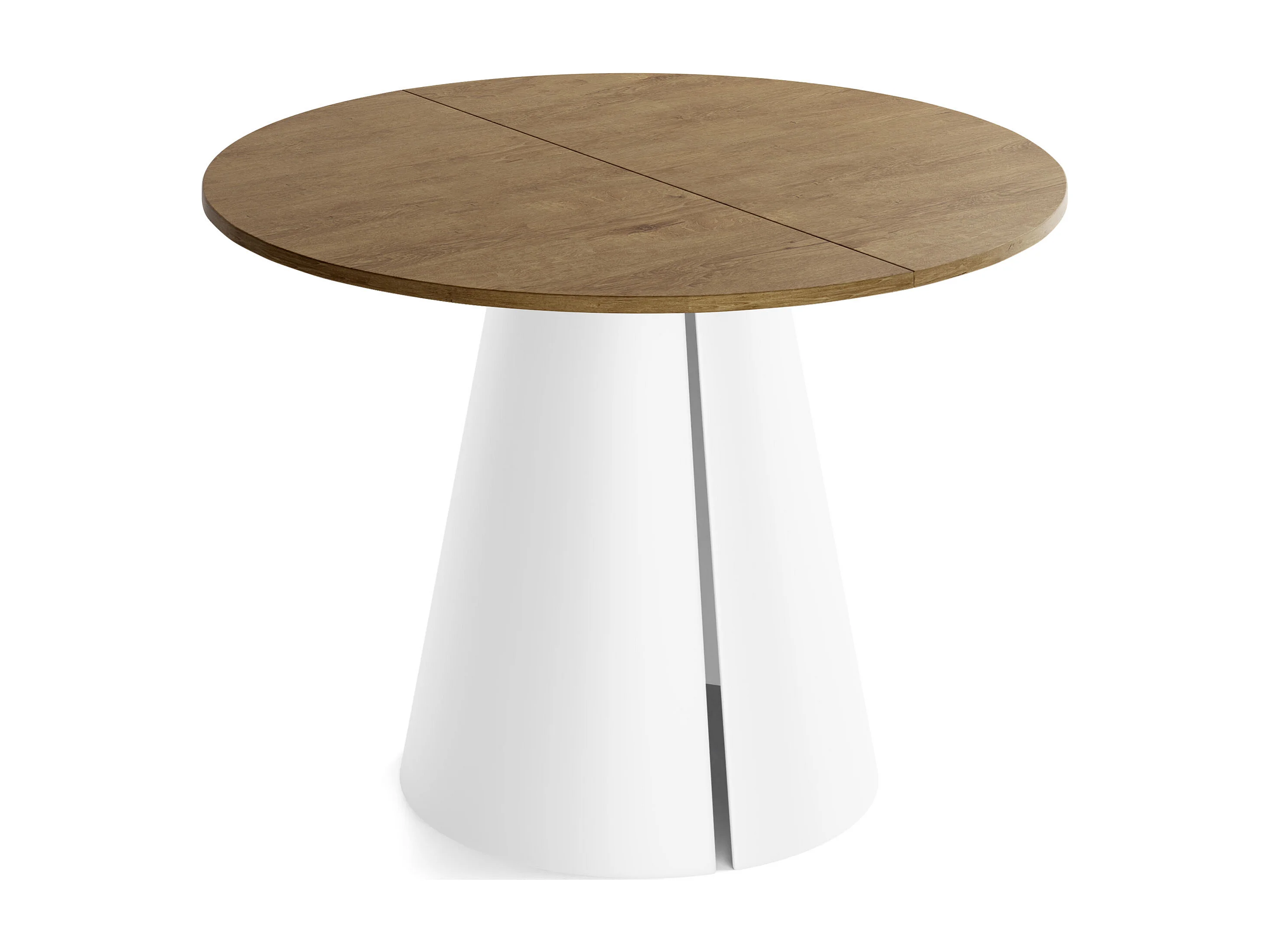 Esstisch Rund Ausziehbar im Loft-Stil – 120cm – Industrieller Tisch mit Weißen Konischem Metallbeinen für 6-10 Personen, Wohnzimmer Esszimmer – Eiche Braun Rustikal