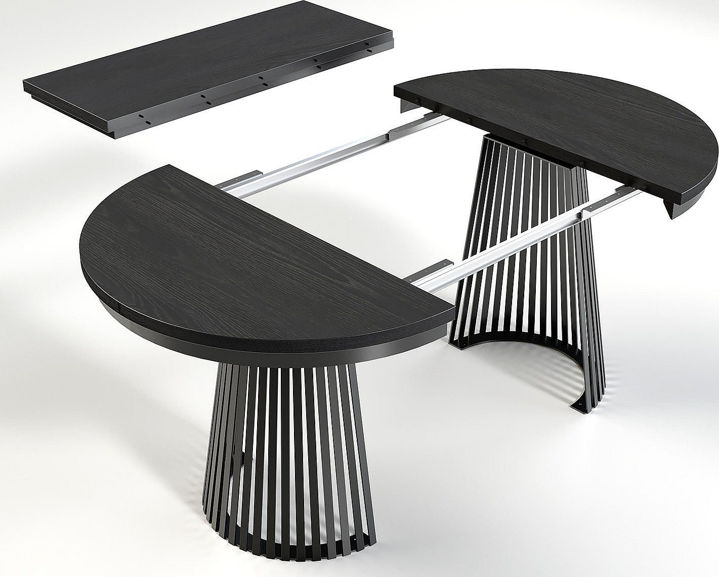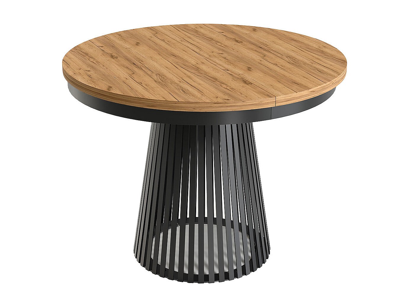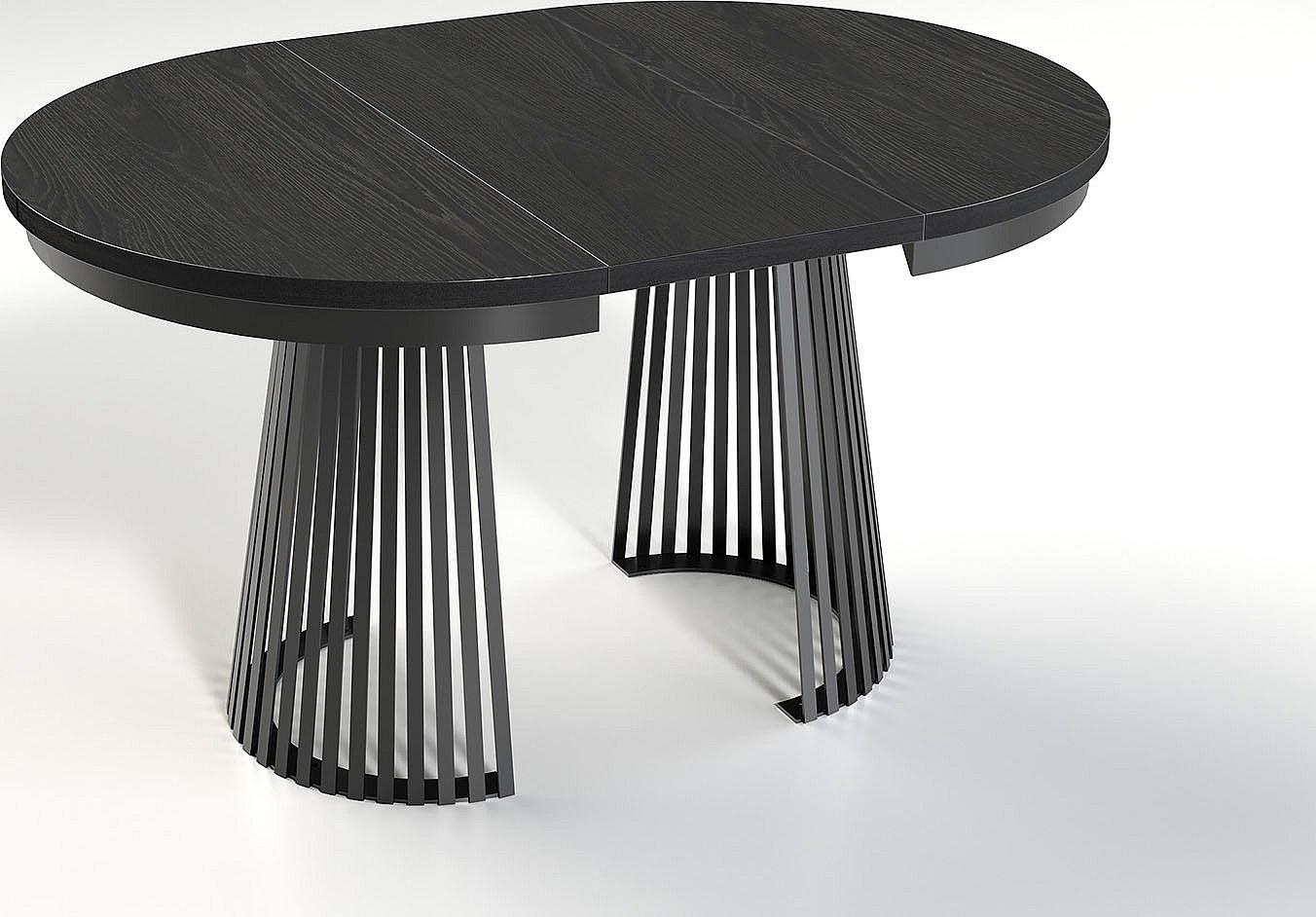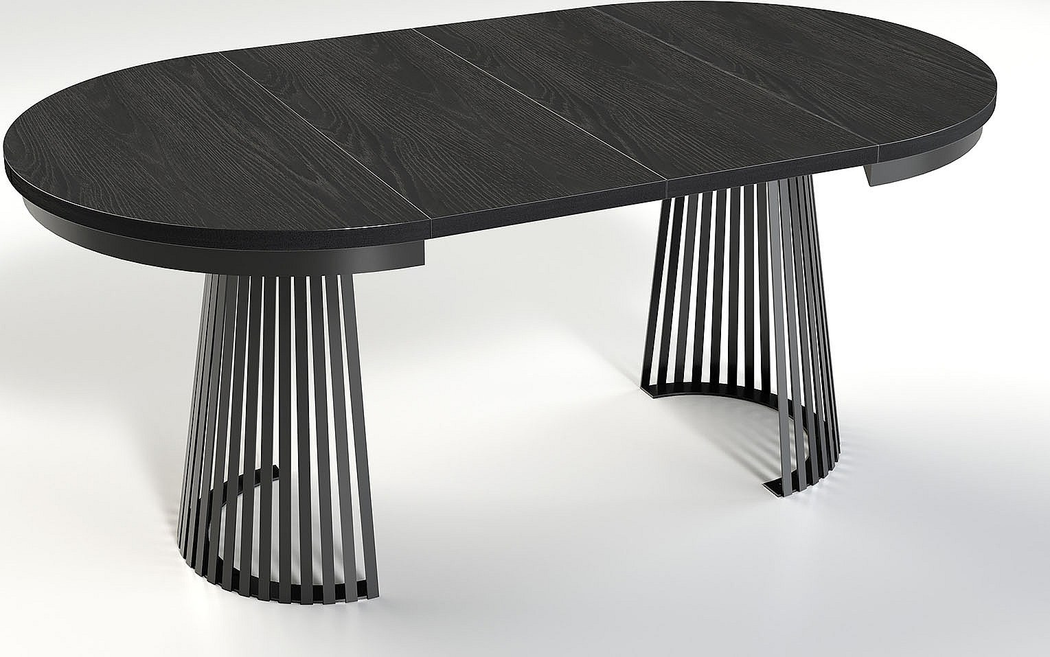 Esstisch Rund Ausziehbar mit Lamellen im Loft-Stil – 100 bis 180 cm – Platzsparender, Industrieller Tisch mit Schwarzen Metallbeinen, Metallgestell – Braun