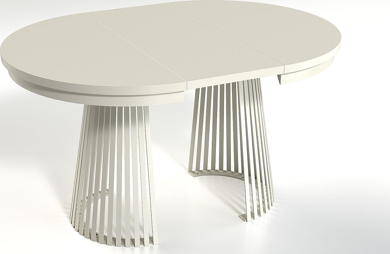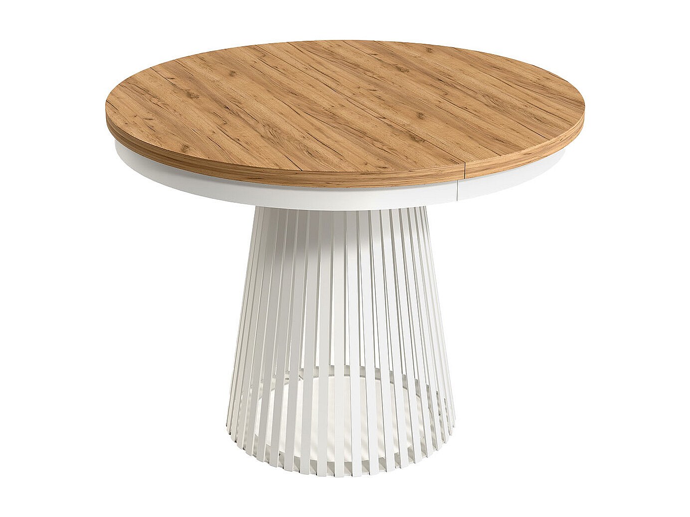 Esstisch Rund Ausziehbar mit Lamellen im Loft-Stil – 100 bis 180 cm – Platzsparender, Industrieller Tisch mit Weißen Metallbeinen, Metallgestell – Braun