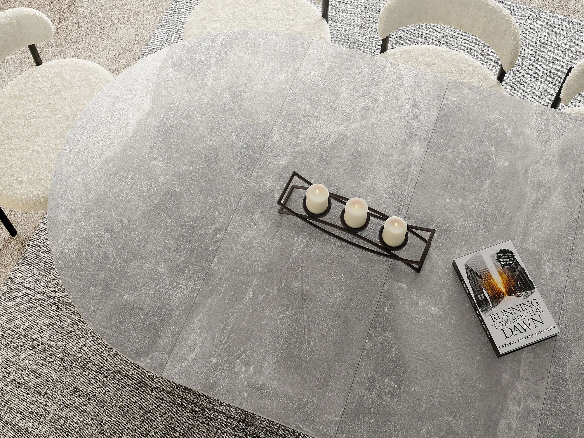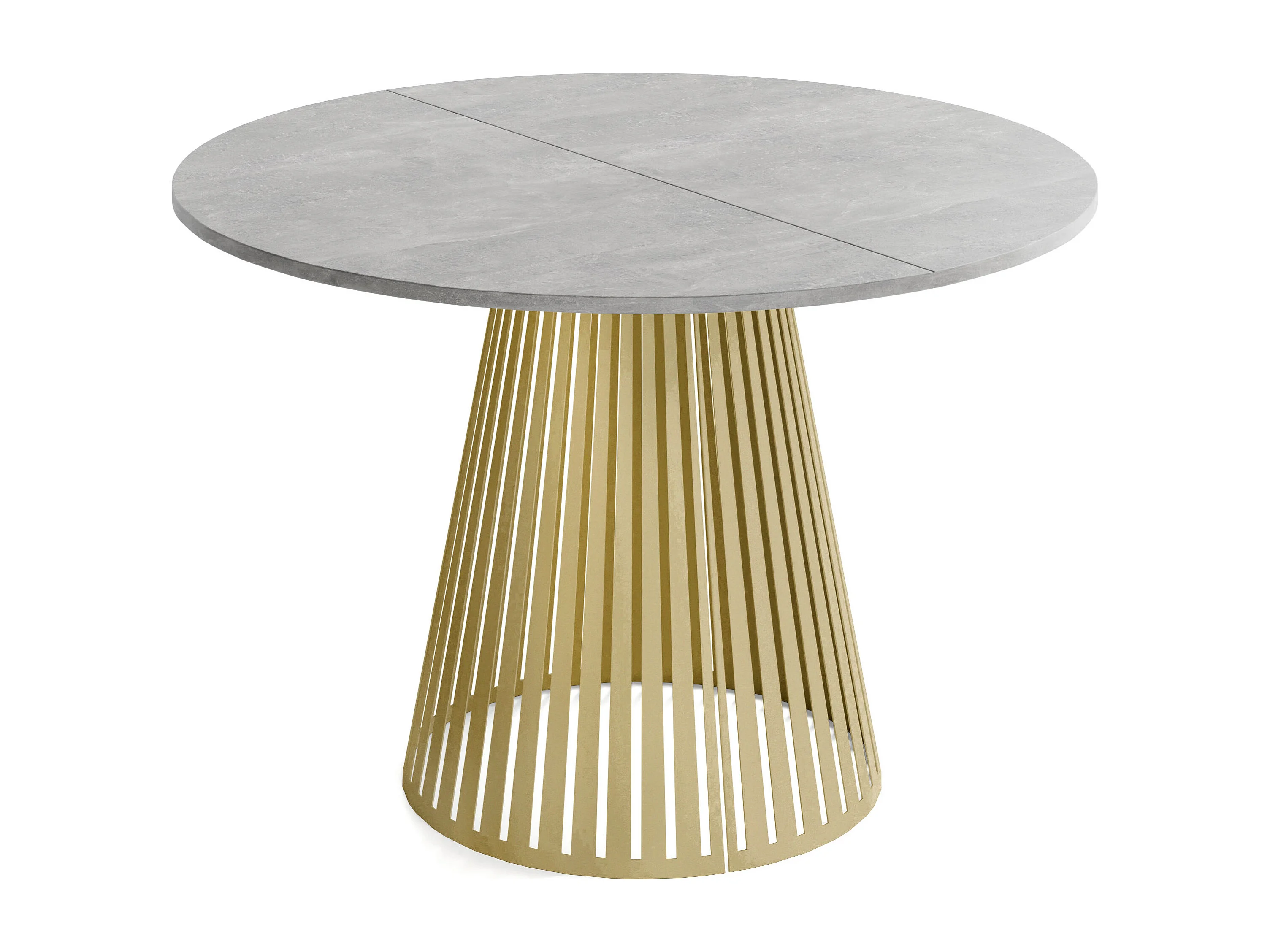 Esstisch Rund Ausziehbar mit Lamellen im Loft-Stil – 100 cm – Industrieller Tisch mit Goldenen Metallbeinen, Platzsparend für Wohnzimmer – Grauer Beton