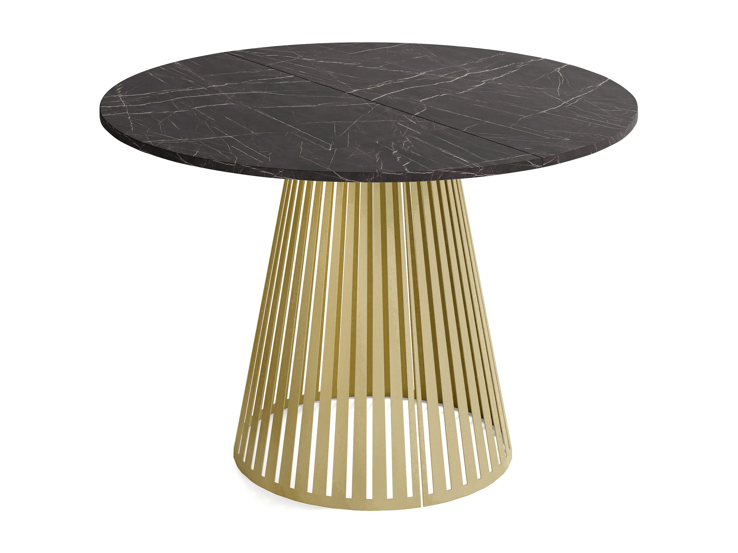 Esstisch Rund Ausziehbar mit Lamellen im Loft-Stil – 100 cm – Industrieller Tisch mit Goldenen Metallbeinen, Platzsparend für Wohnzimmer – Marmor Schwarz
