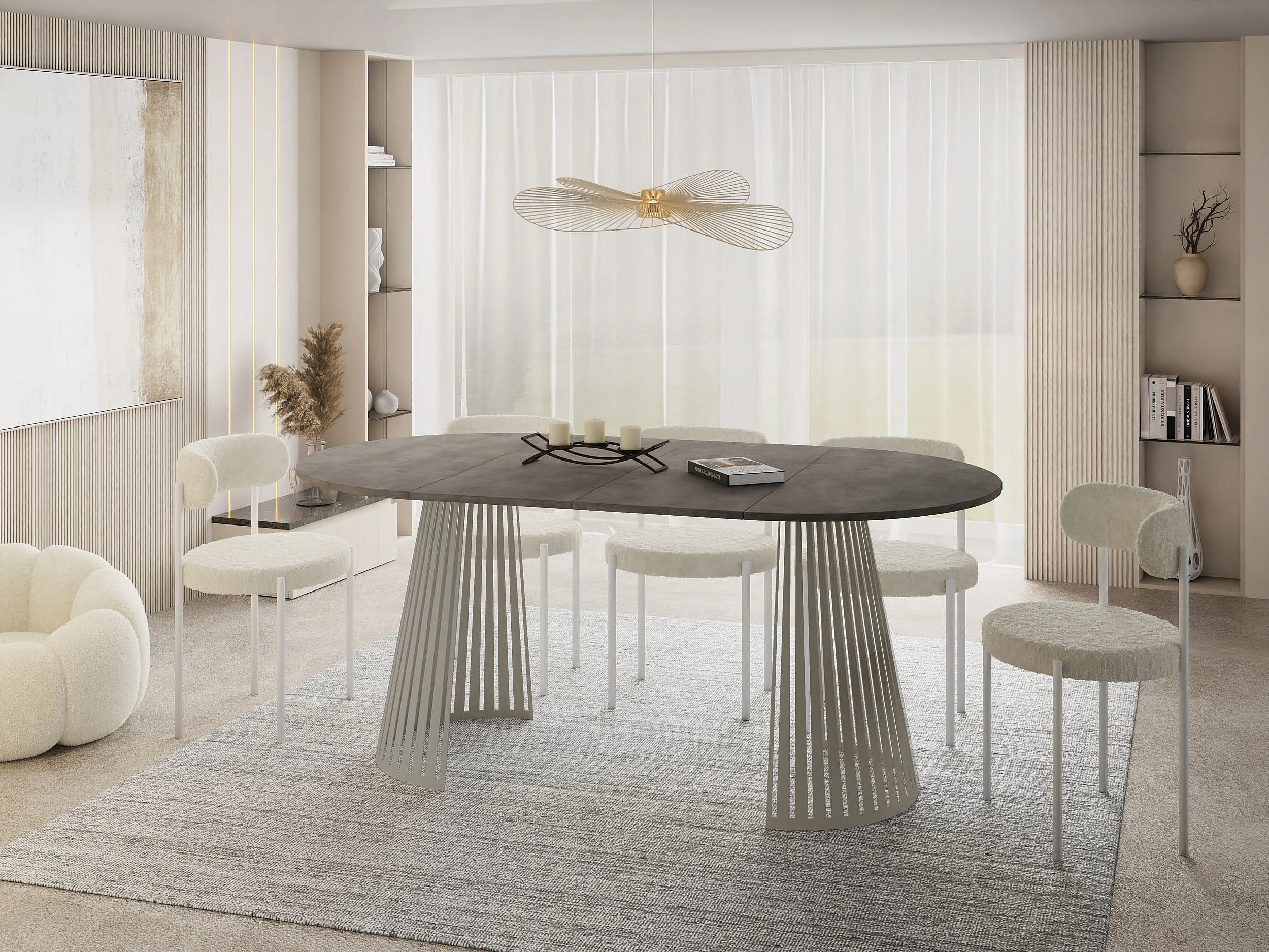 Esstisch Rund Ausziehbar mit Lamellen im Loft-Stil – 100 cm – Industrieller Tisch mit Metallbeinen in Grau-Beige, Platzsparend – Beton-Optik Dunkelgrau