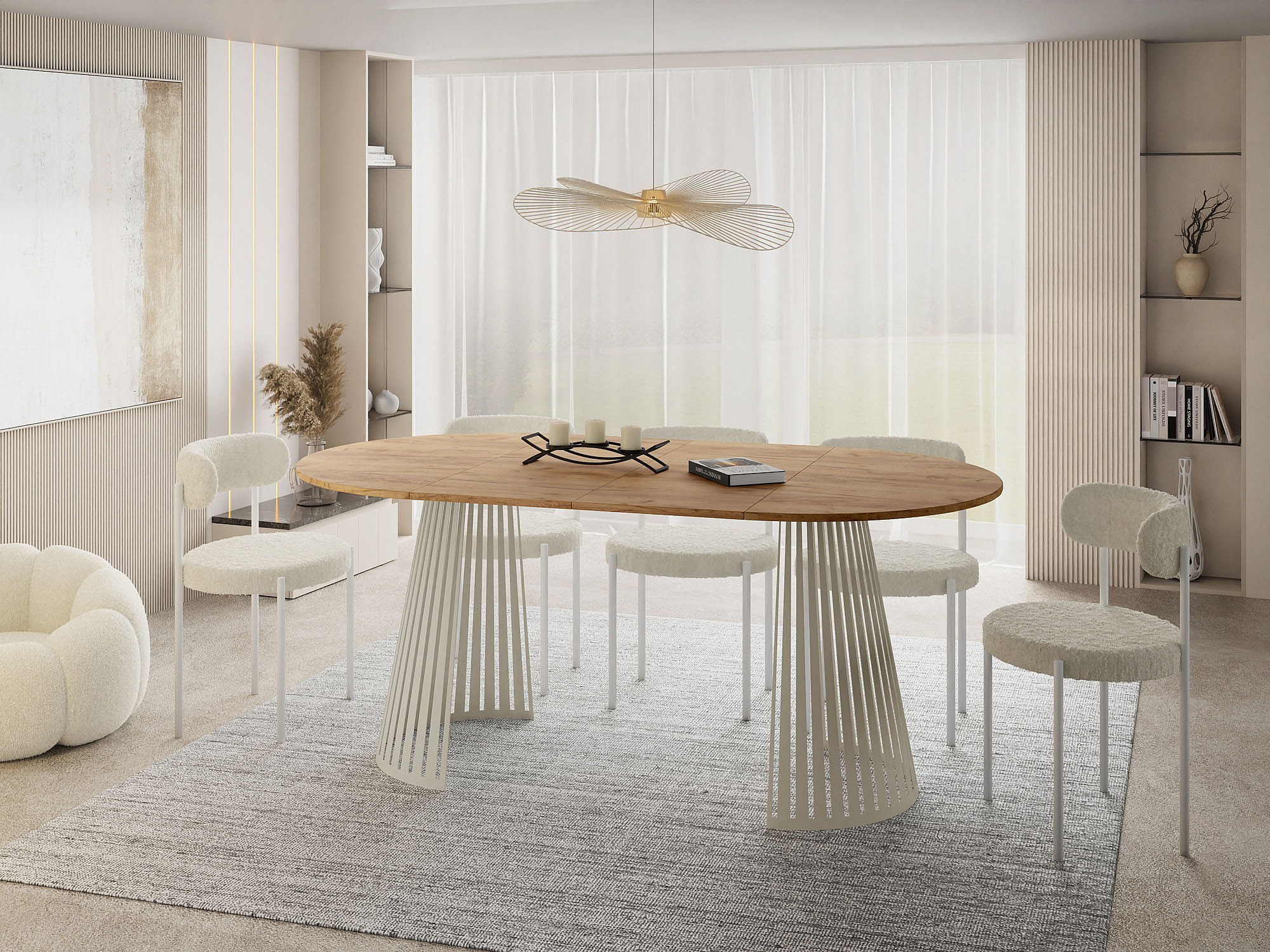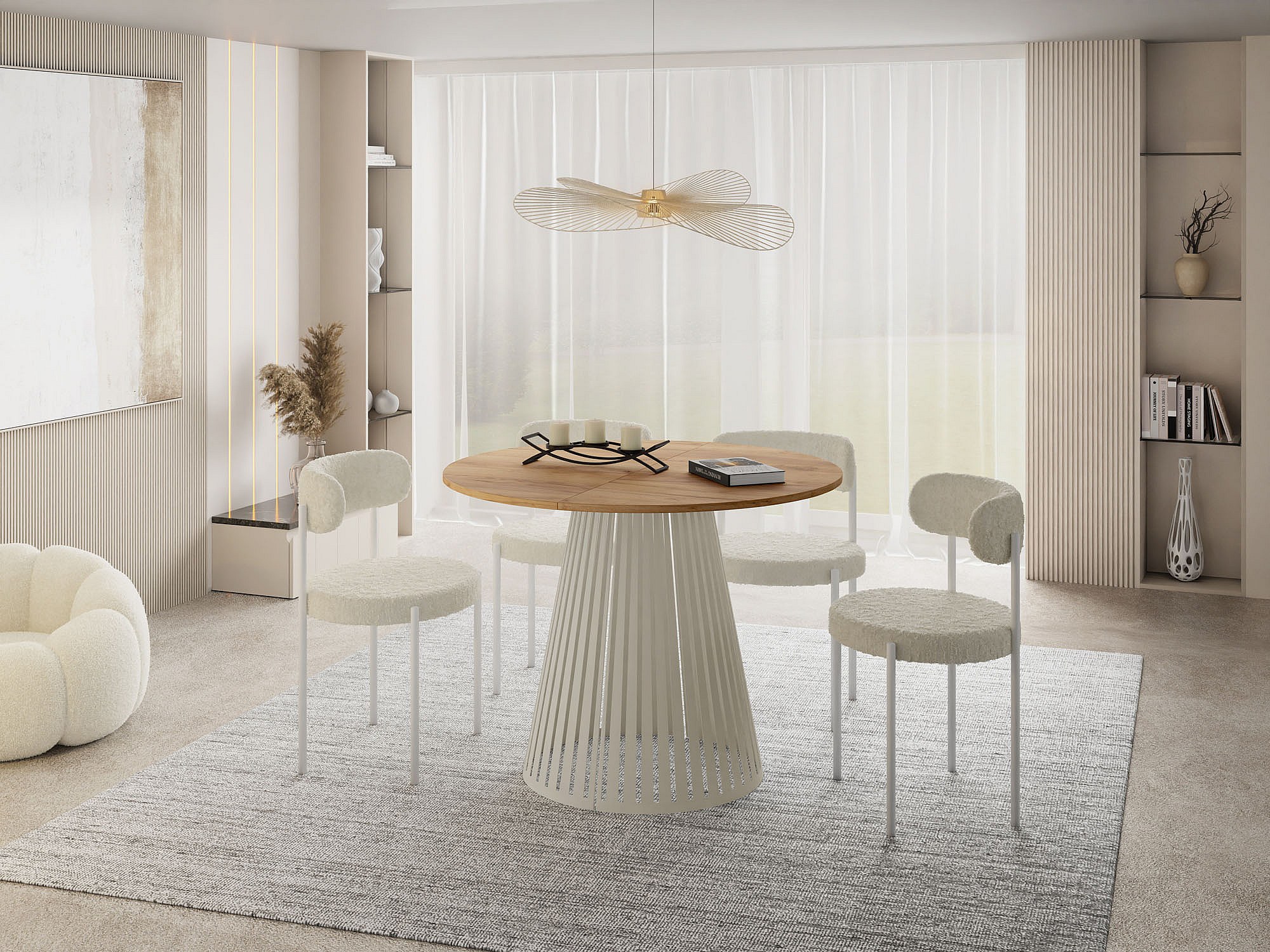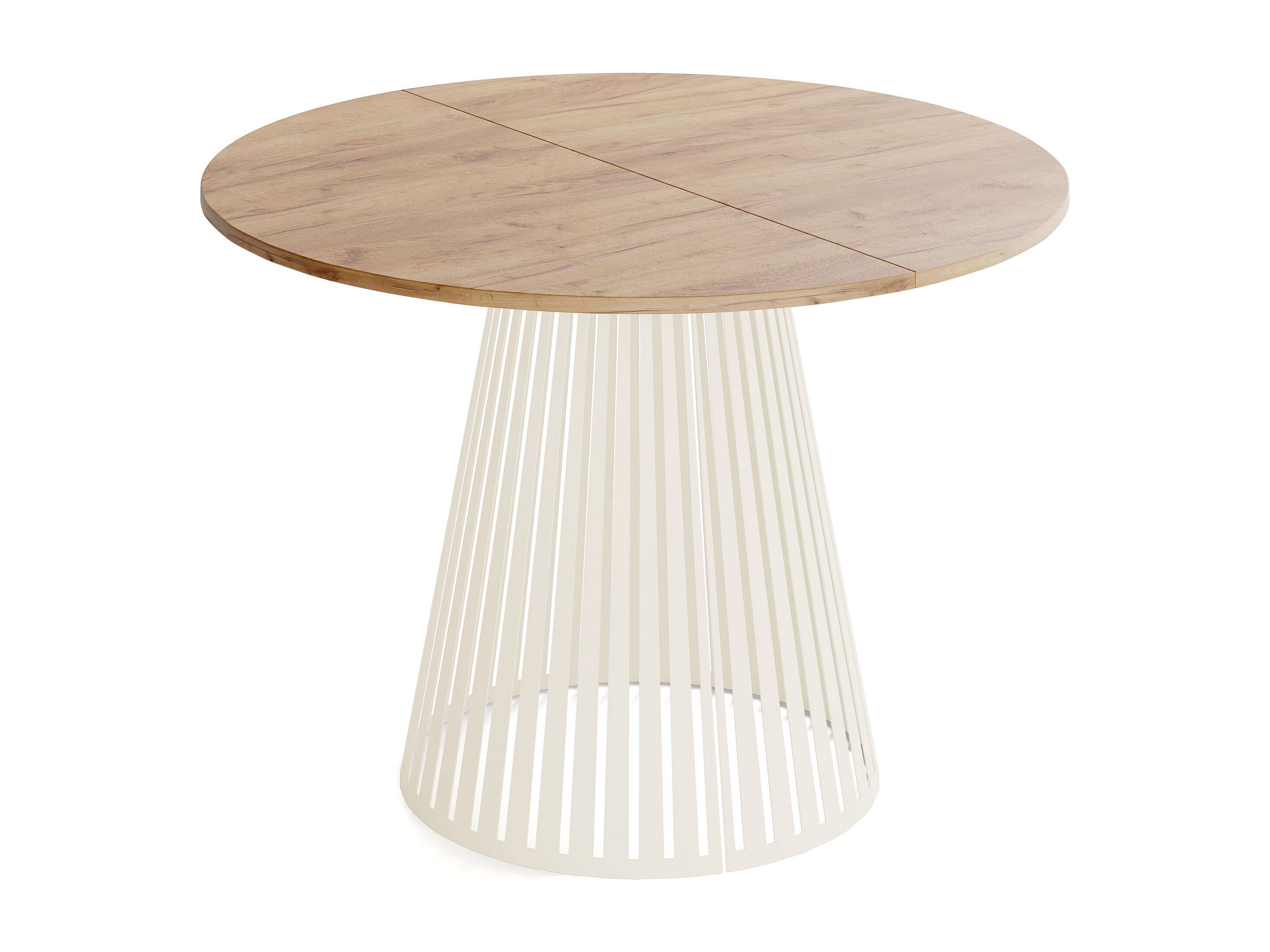 Esstisch Rund Ausziehbar mit Lamellen im Loft-Stil – 100 cm – Industrieller Tisch mit Metallbeinen in Beige Cashmere, Platzsparend für Wohnzimmer, Esszimmer – Braun
