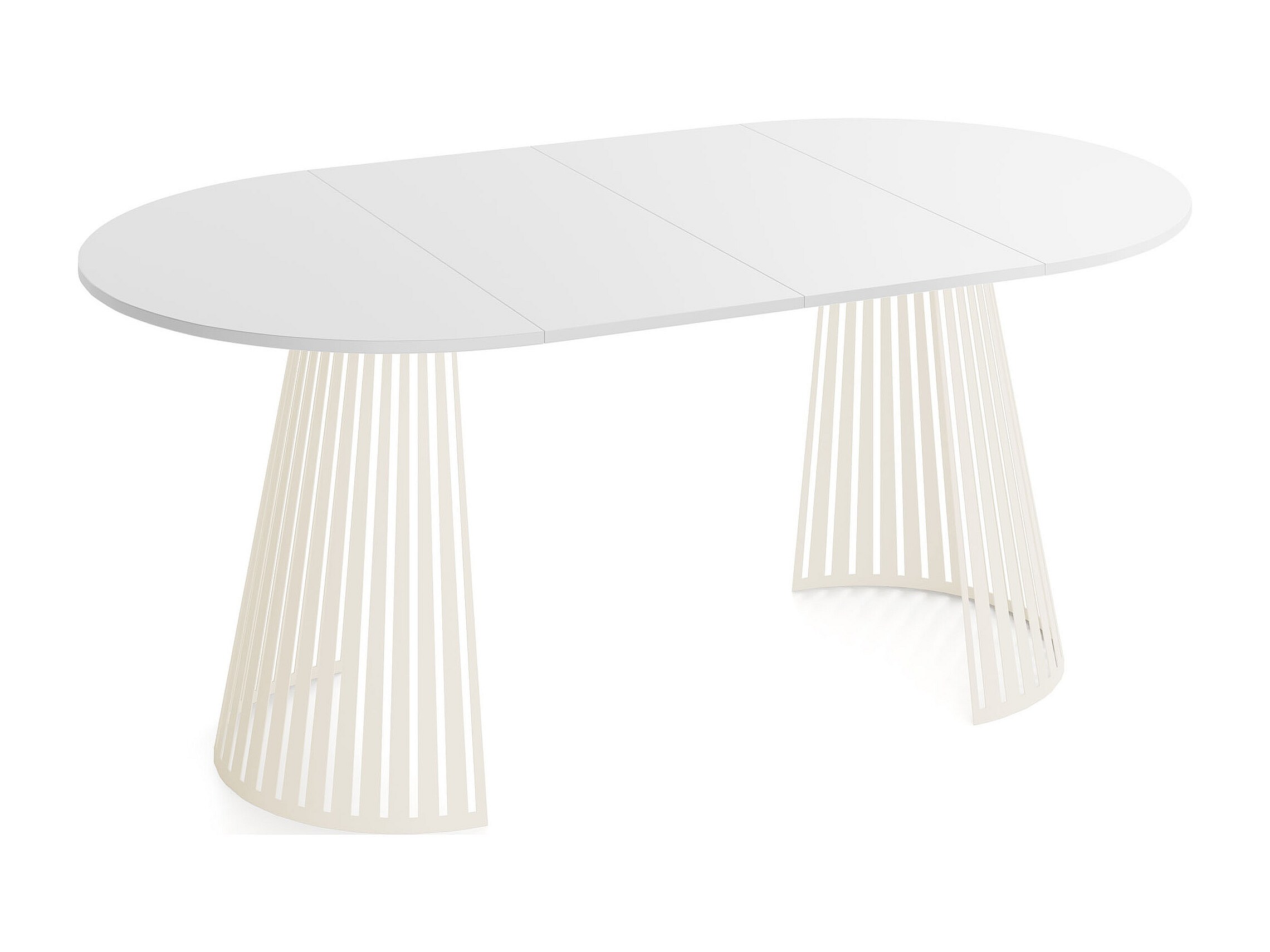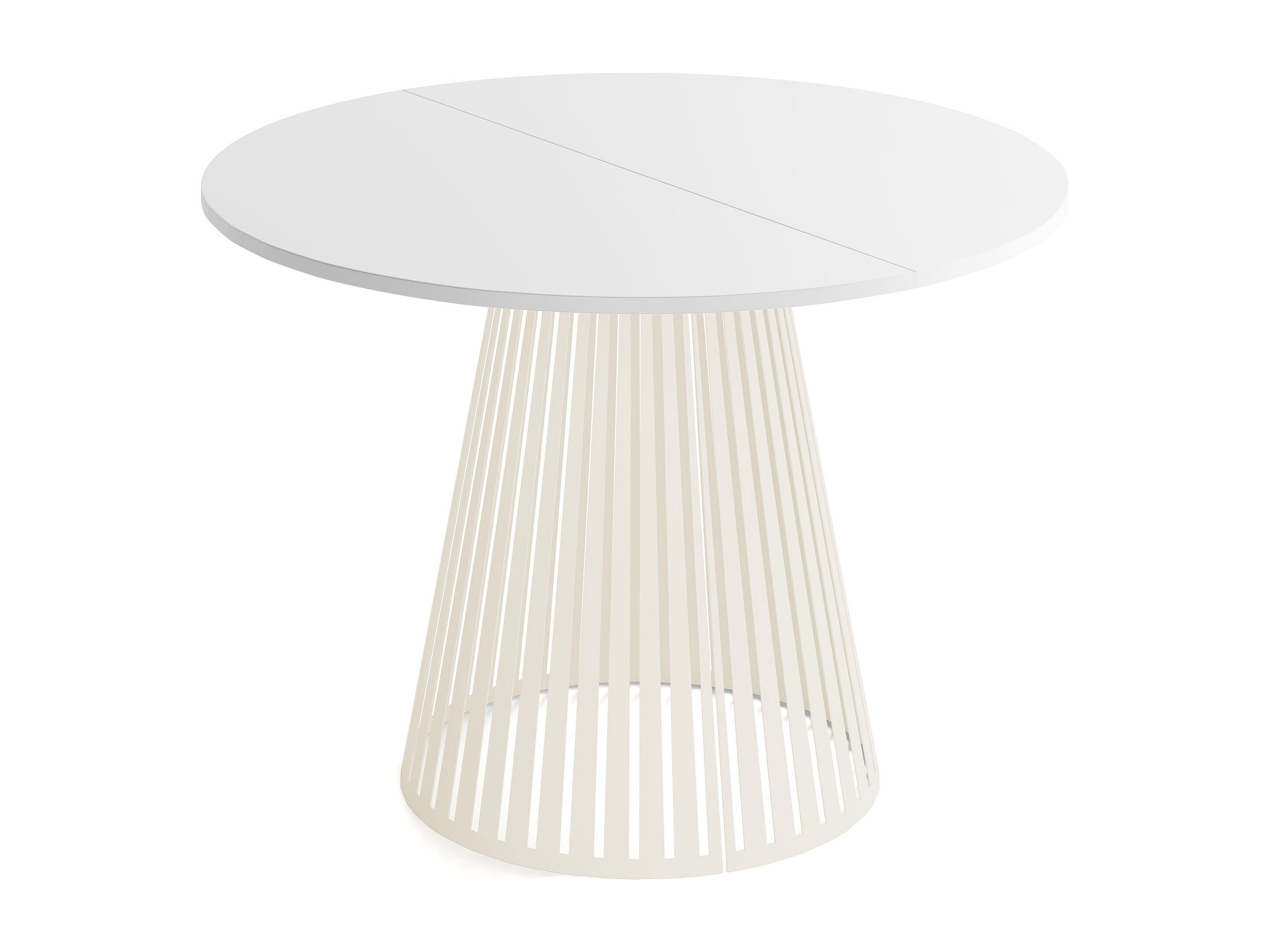 Esstisch Rund Ausziehbar mit Lamellen im Loft-Stil – 100 cm – Industrieller Tisch mit Metallbeinen in Beige Cashmere, Platzsparend für Wohnzimmer Esszimmer – Weiß