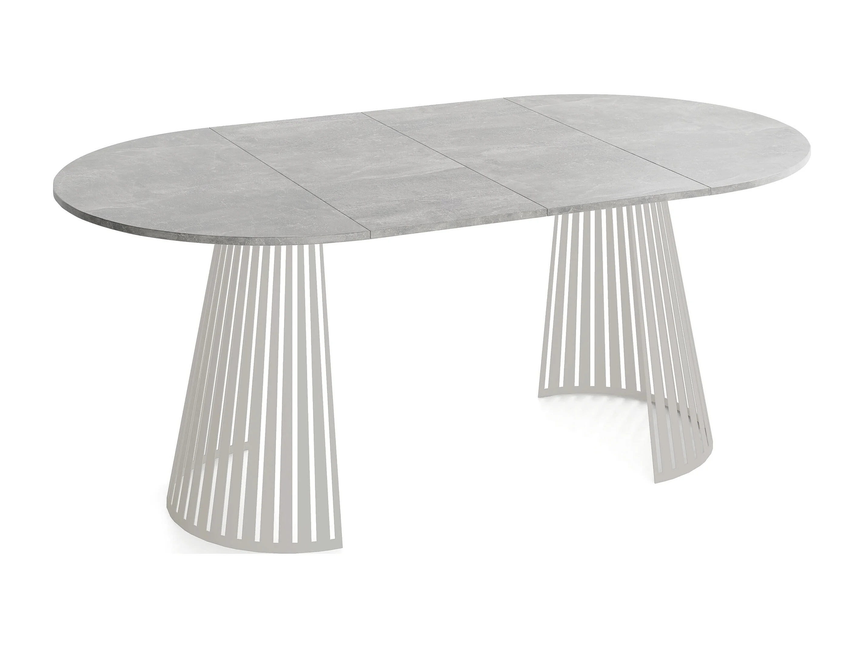 Esstisch Rund Ausziehbar mit Lamellen im Loft-Stil – 100 cm – Industrieller Tisch mit Metallbeinen in Grau-Beige, Platzsparend für Wohnzimmer – Grauer Beton