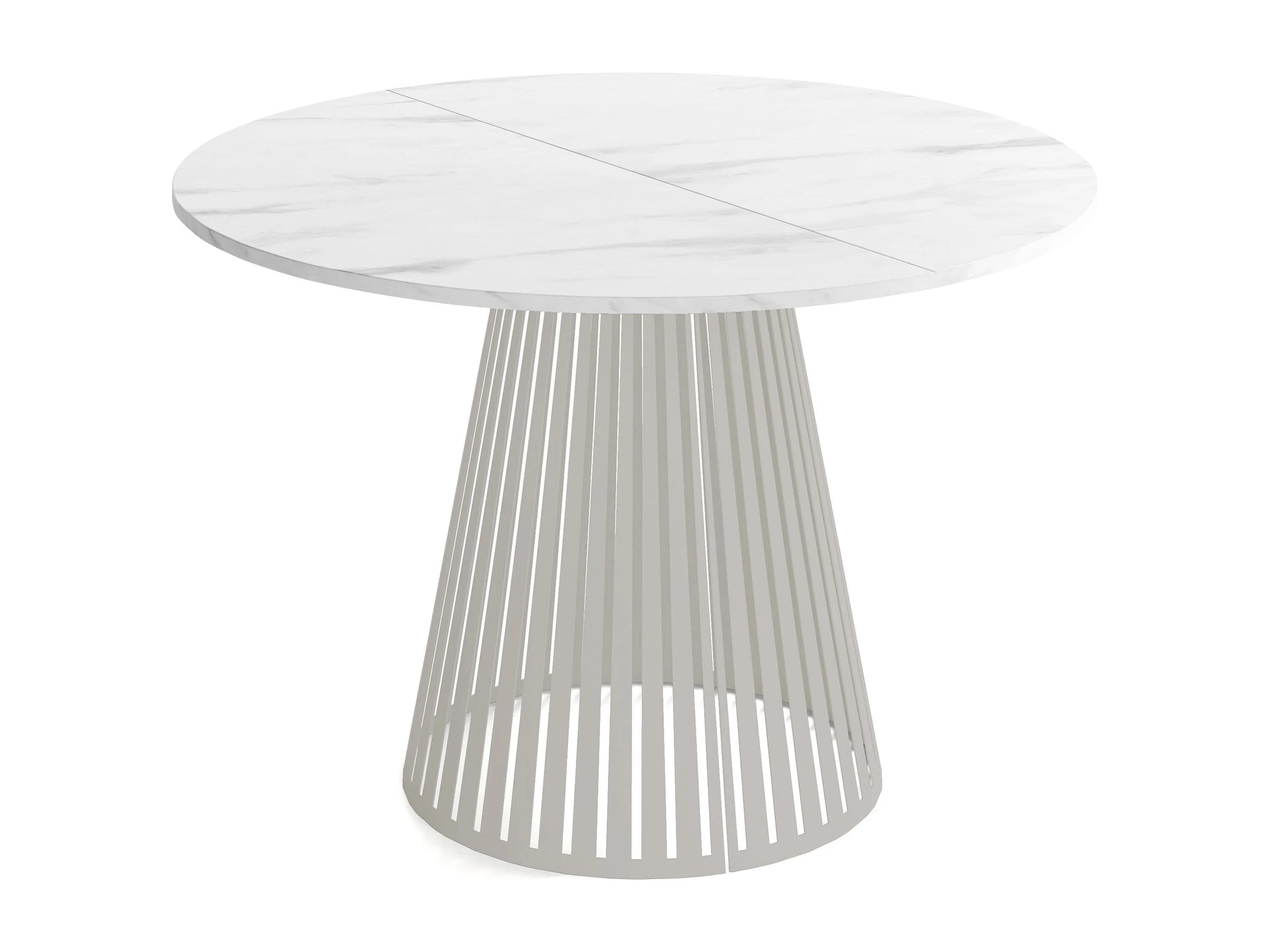 Esstisch Rund Ausziehbar mit Lamellen im Loft-Stil – 100 cm – Industrieller Tisch mit Metallbeinen in Grau-Beige, Platzsparend für Wohnzimmer – Marmor Weiß