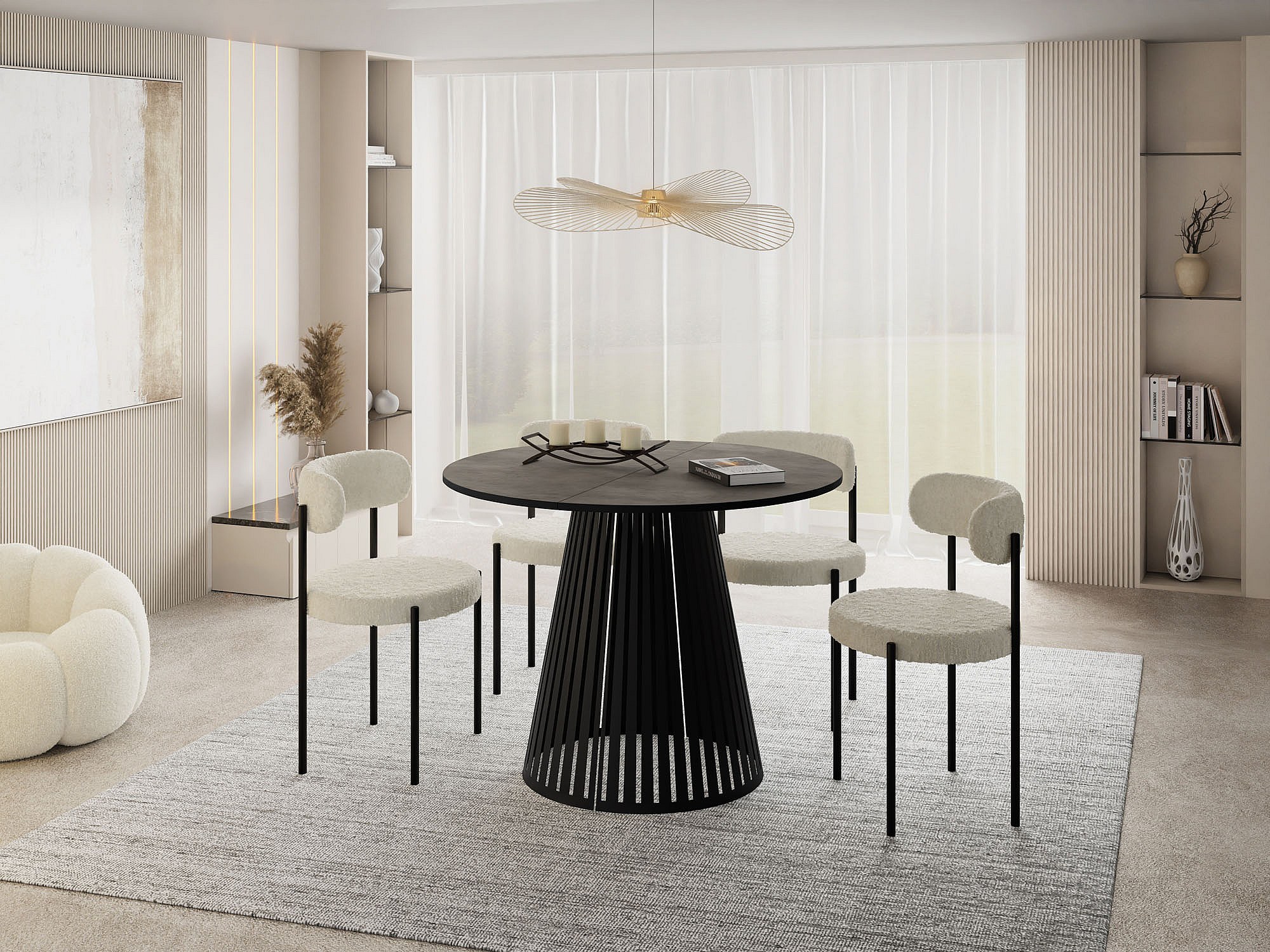 Esstisch Rund Ausziehbar mit Lamellen im Loft-Stil – 100 cm – Industrieller Tisch mit Schwarzen Metallbeinen, Platzsparend für Esszimmer – Beton-Optik Dunkelgrau