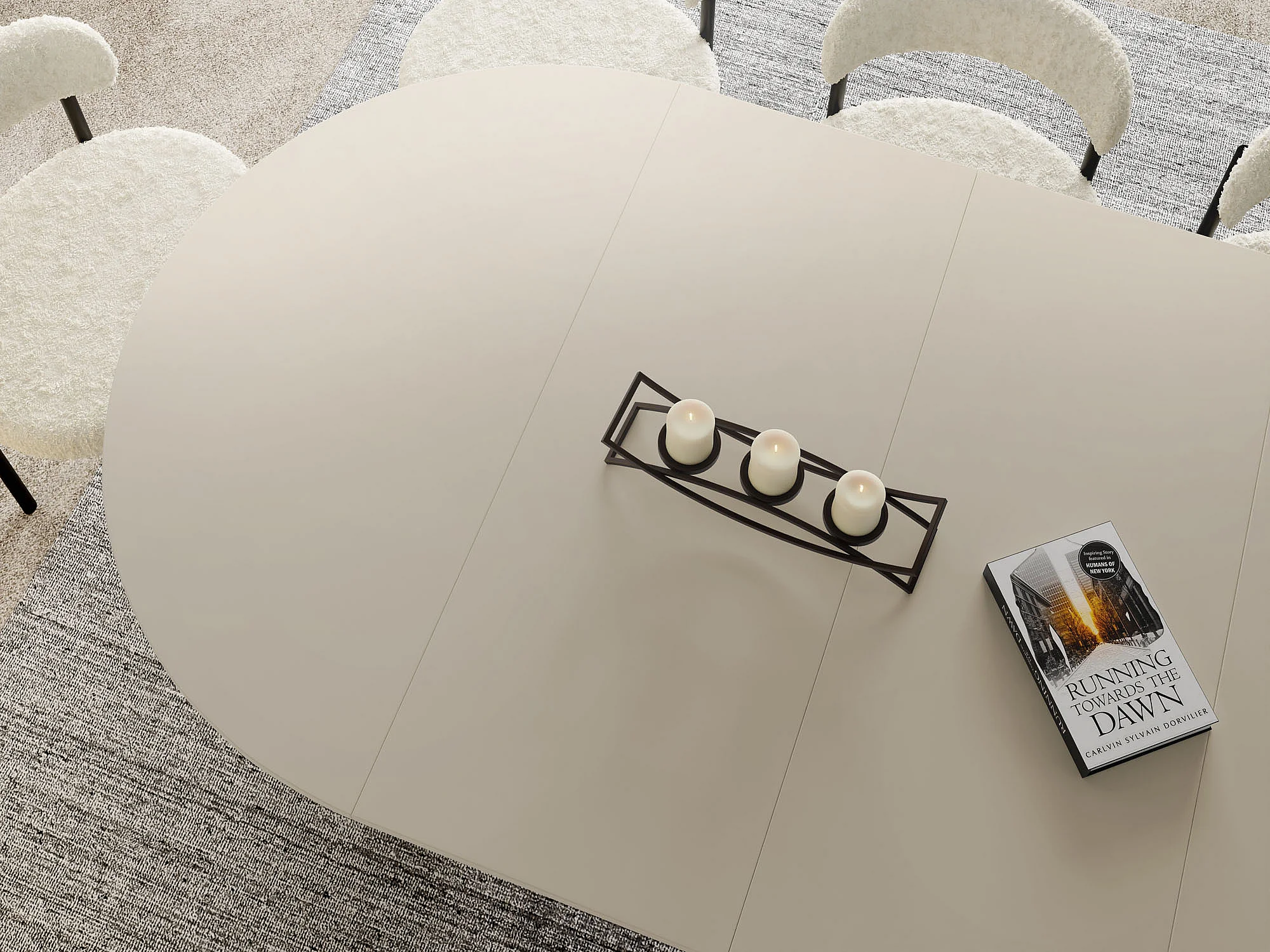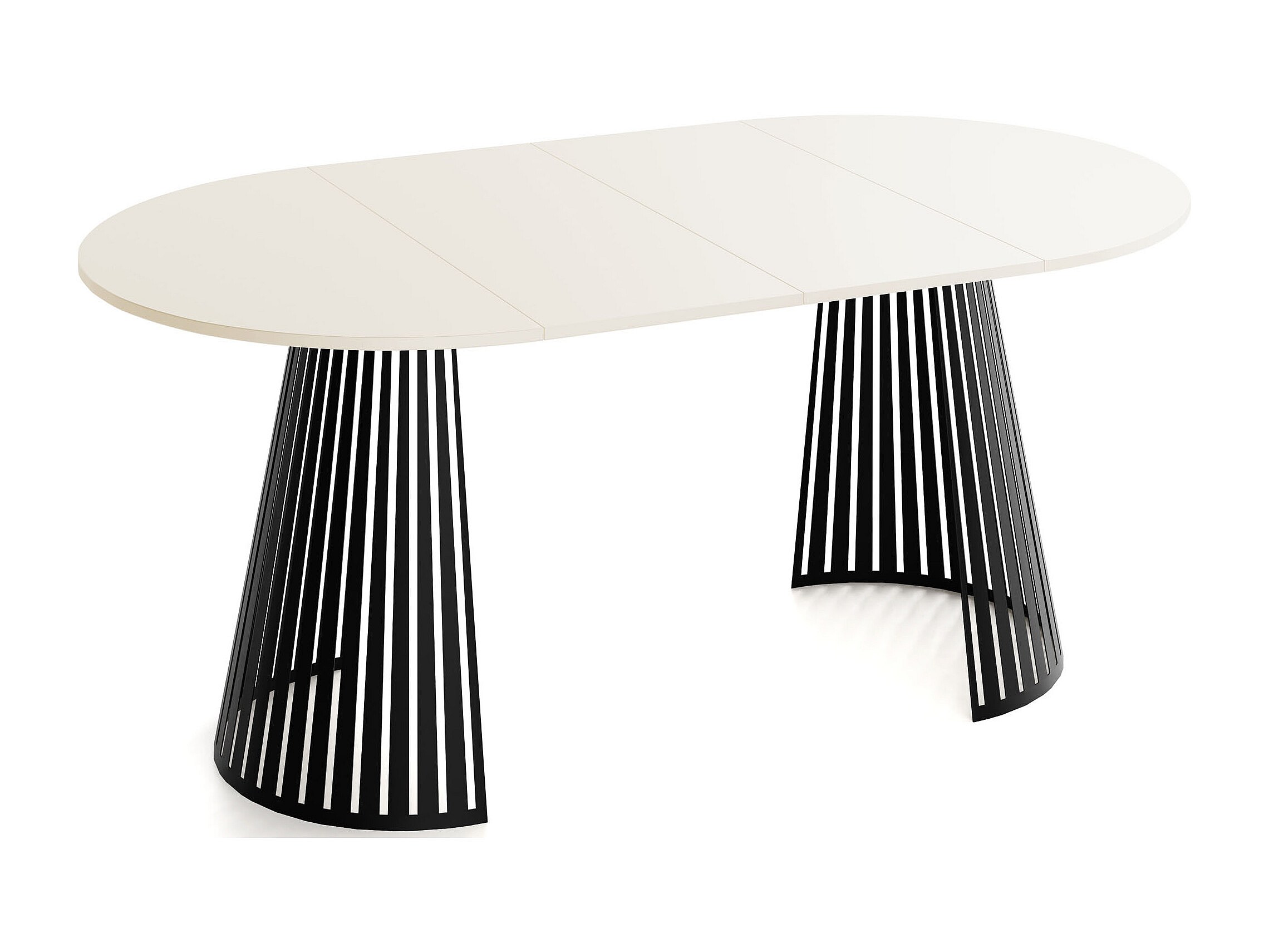 Esstisch Rund Ausziehbar mit Lamellen im Loft-Stil – 100 cm – Industrieller Tisch mit Schwarzen Metallbeinen, Platzsparend für Wohnzimmer Esszimmer – Beige Cashmere