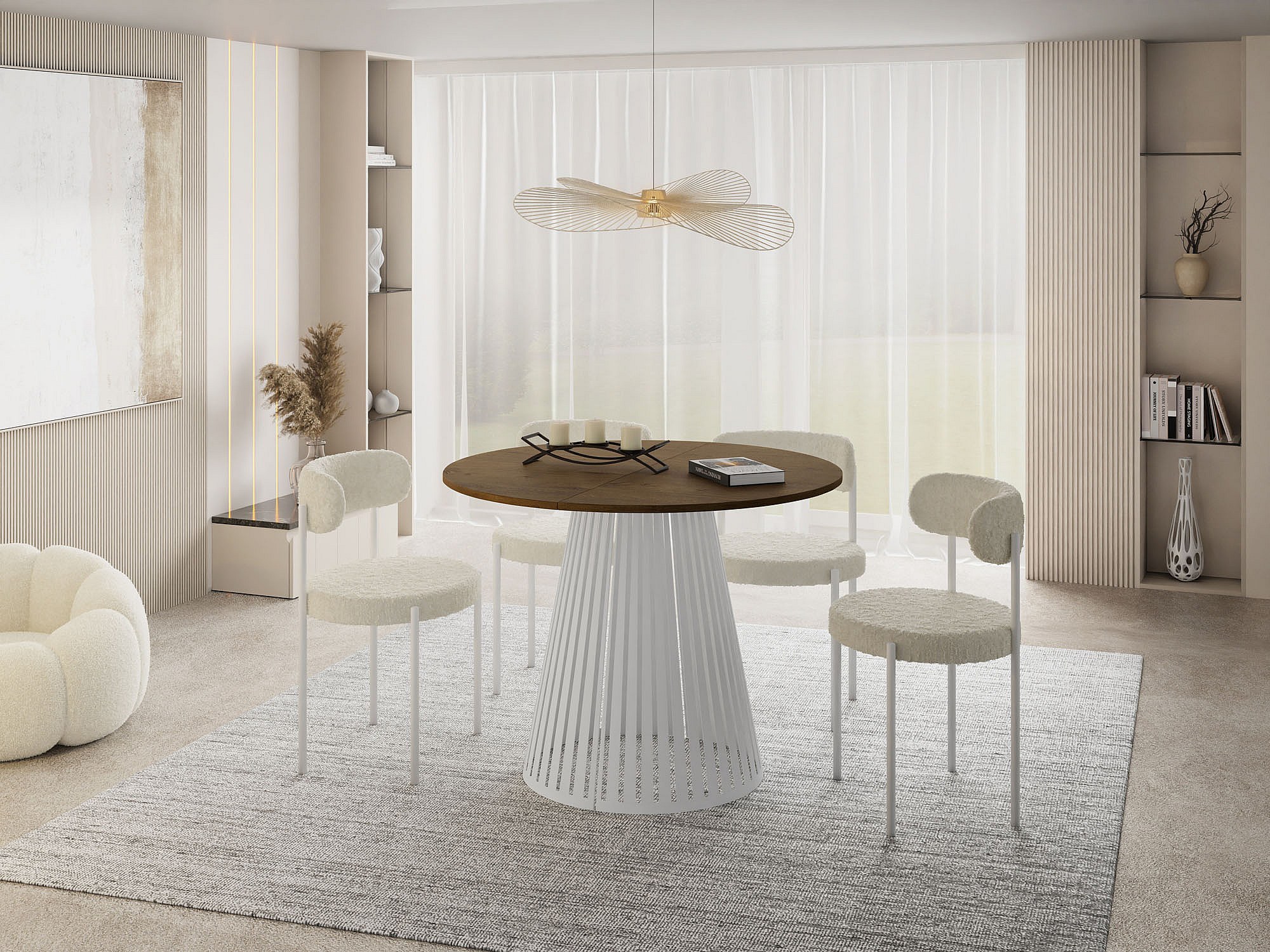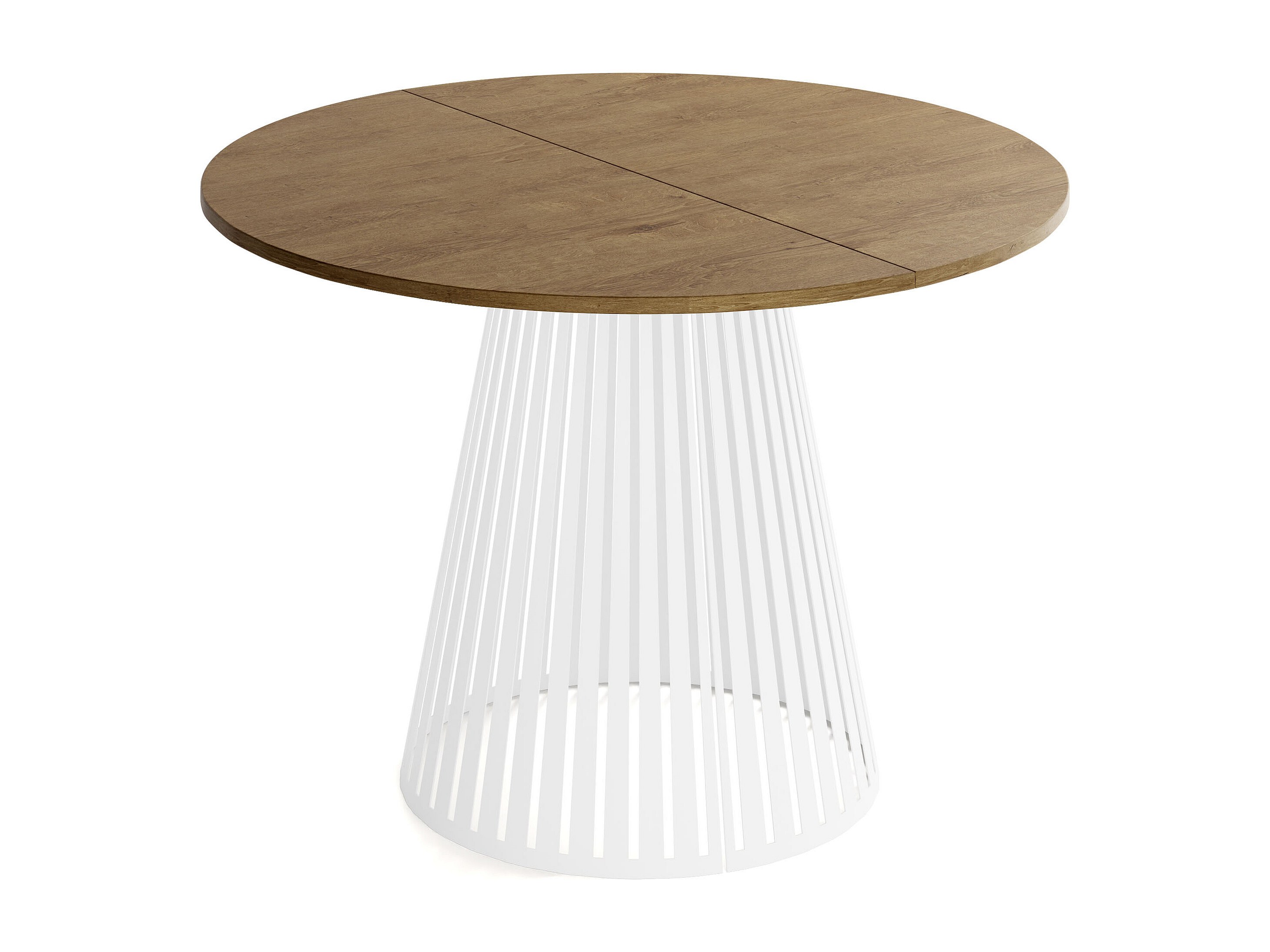 Esstisch Rund Ausziehbar mit Lamellen im Loft-Stil – 100 cm – Industrieller Tisch mit Weißen Metallbeinen, Platzsparend für Wohnzimmer Esszimmer – Braun