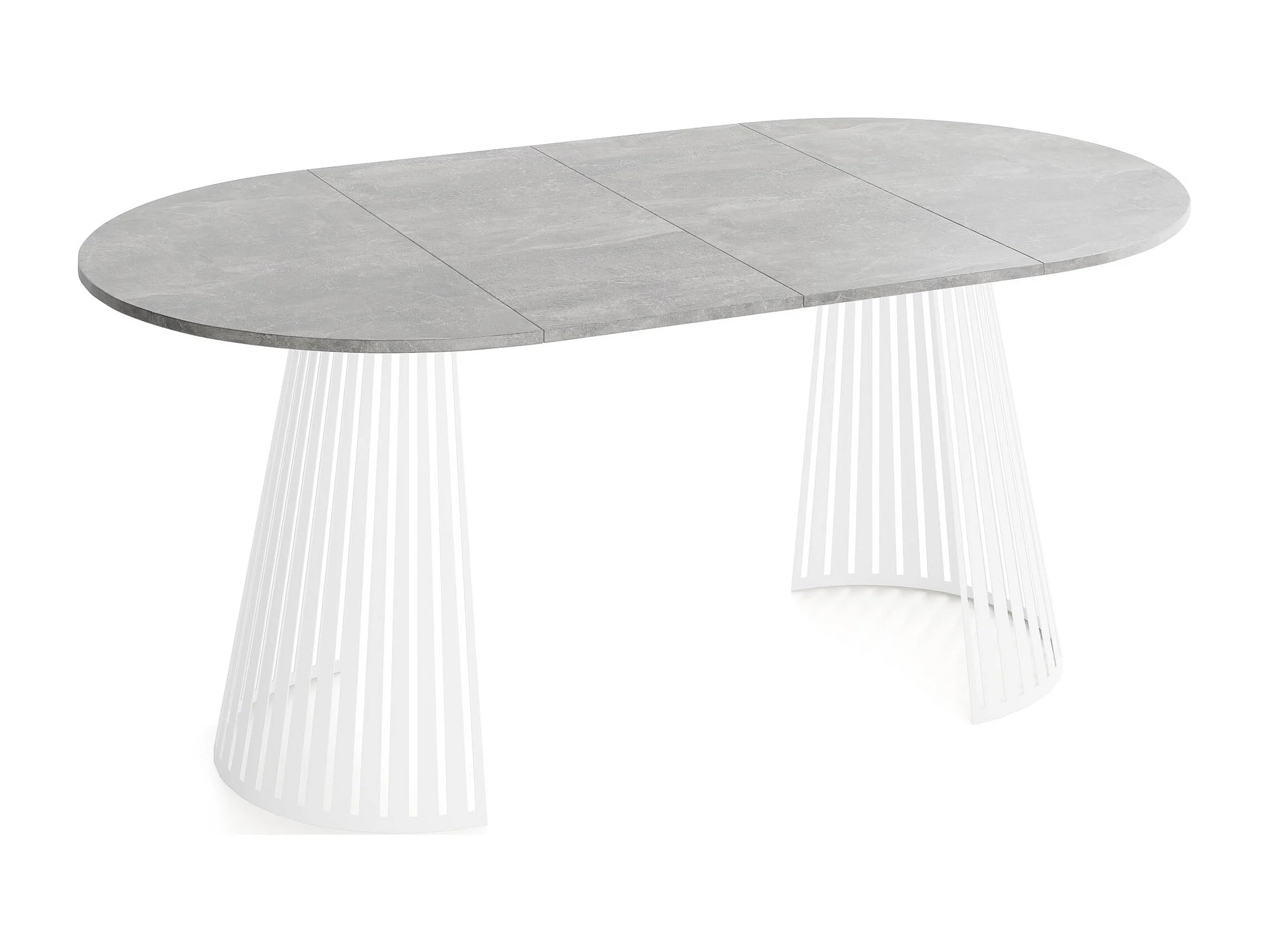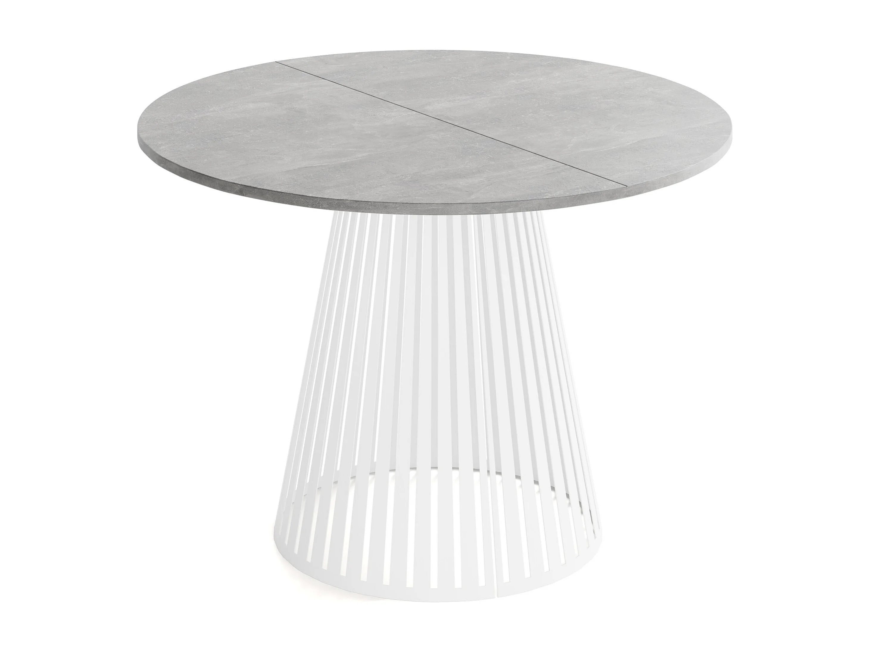 Esstisch Rund Ausziehbar mit Lamellen im Loft-Stil – 100 cm – Industrieller Tisch mit Weißen Metallbeinen, Platzsparend für Wohnzimmer Esszimmer – Grauer Beton