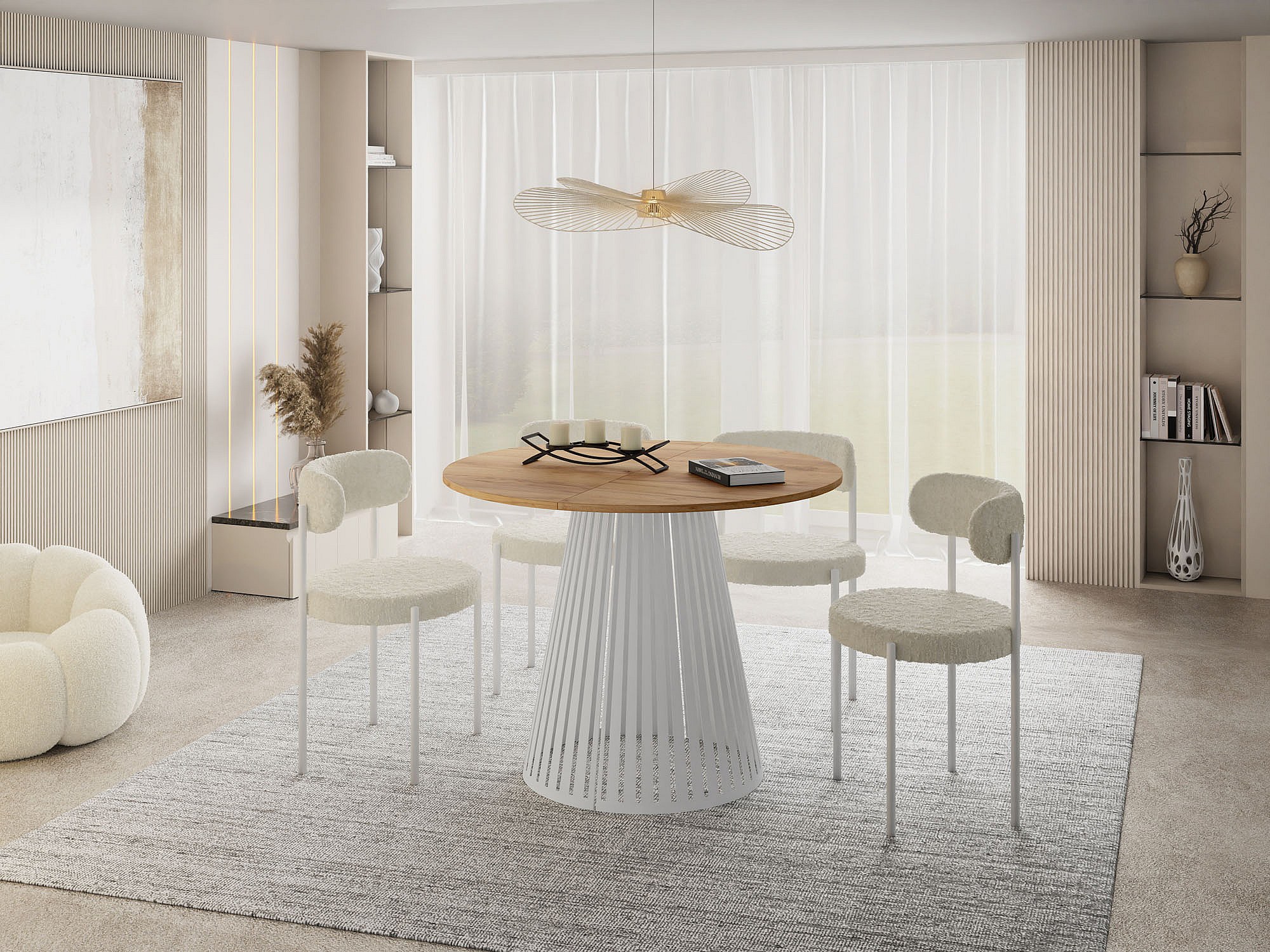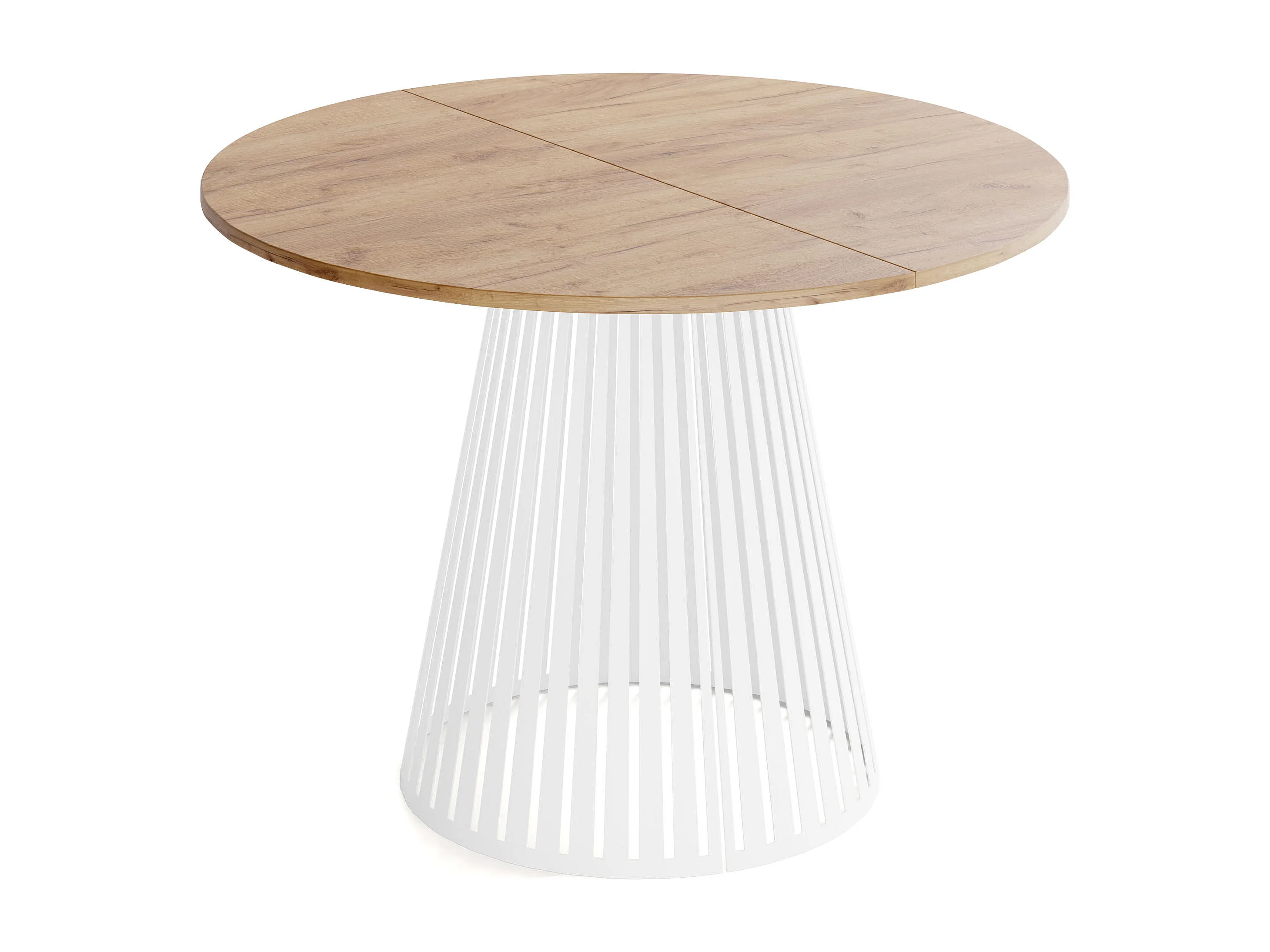 Esstisch Rund Ausziehbar mit Lamellen im Loft-Stil – 100 cm – Industrieller Tisch mit Weißen Metallbeinen, Platzsparend für Wohnzimmer oder Esszimmer – Braun