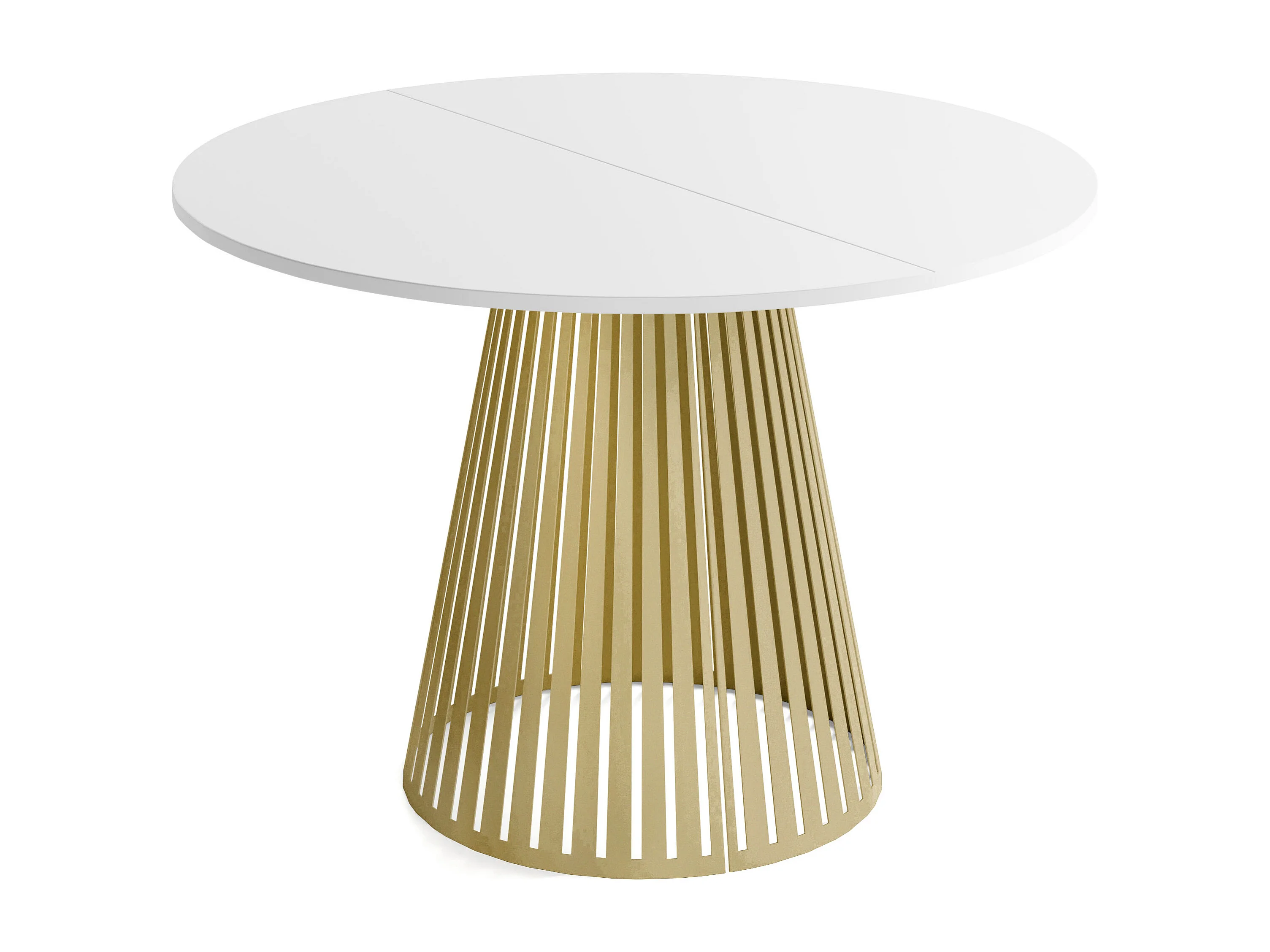 Esstisch Rund Ausziehbar mit Lamellen im Loft-Stil – 120 cm – Industrieller Tisch mit Goldenen Metallbeinen, Platzsparend für Wohnzimmer Esszimmer – Weiß