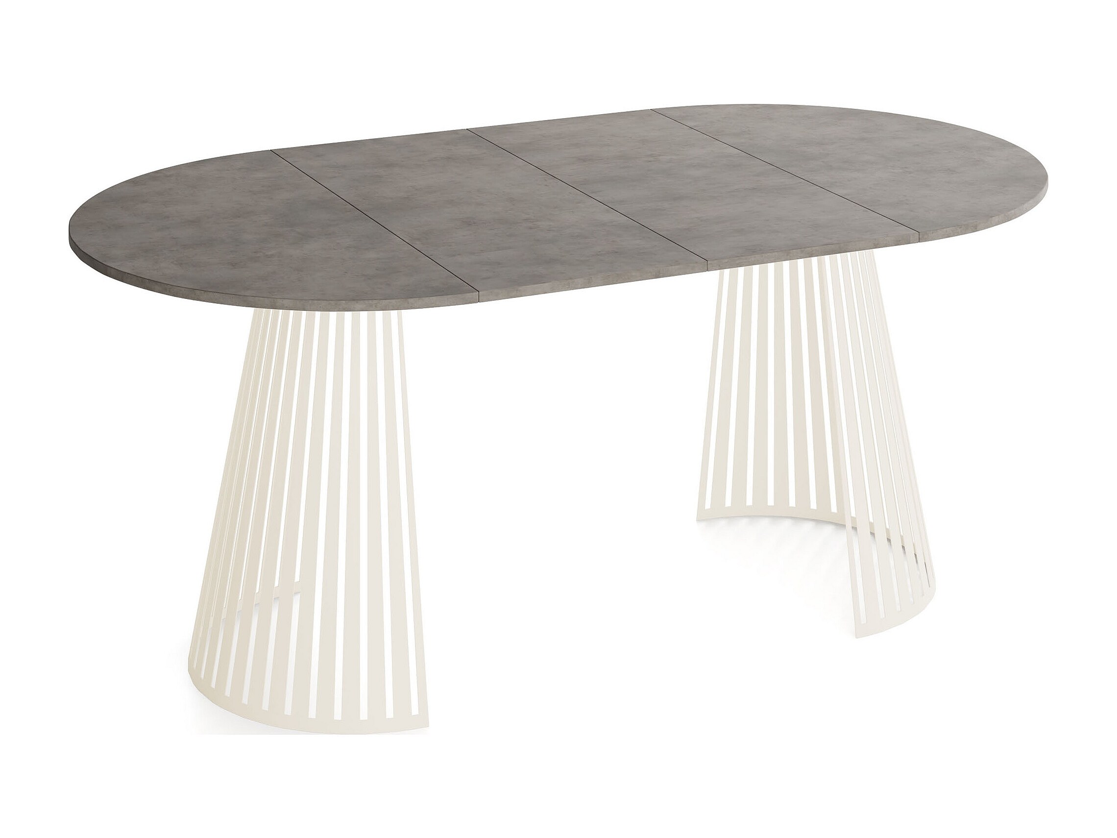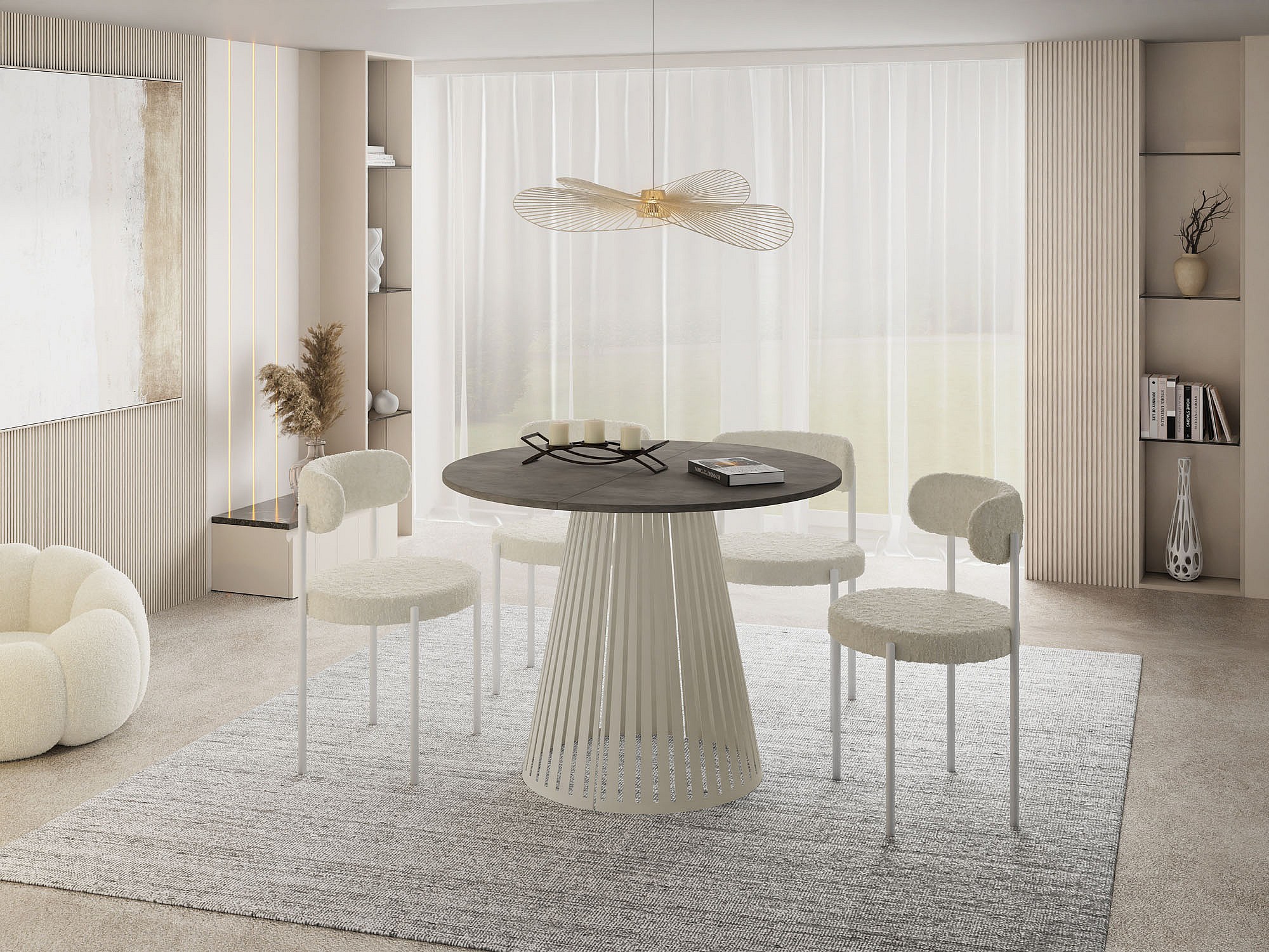 Esstisch Rund Ausziehbar mit Lamellen im Loft-Stil – 120 cm – Industrieller Tisch mit Metallbeinen in Beige Cashmere, Platzsparend – Beton-Optik Dunkelgrau