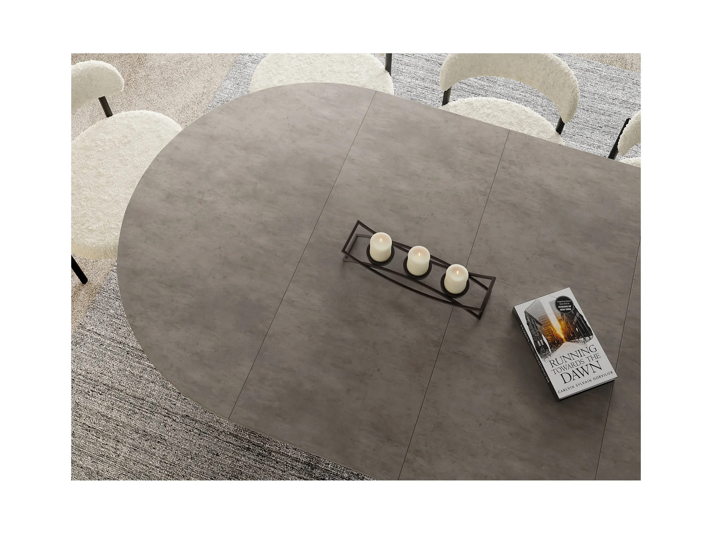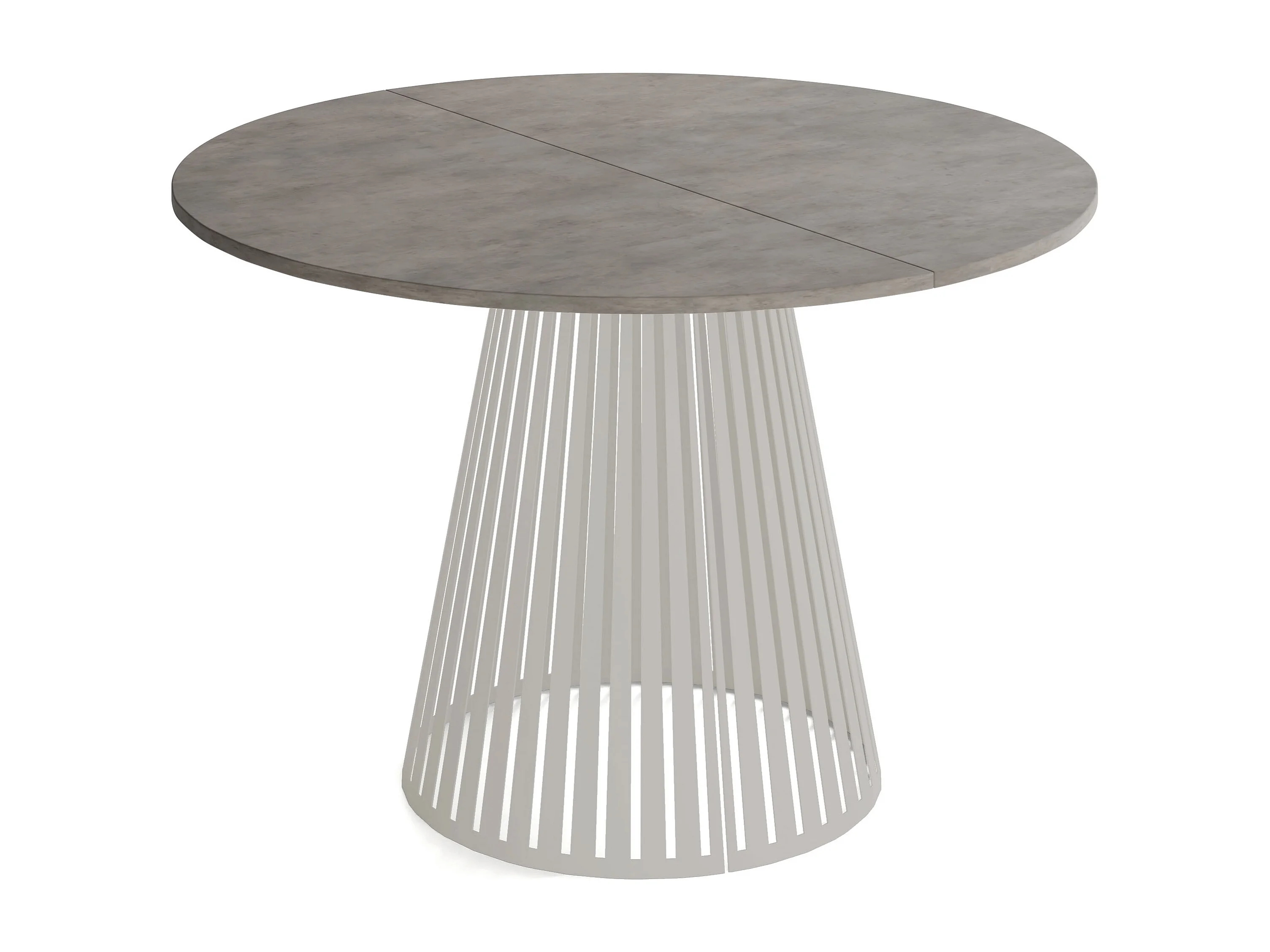 Esstisch Rund Ausziehbar mit Lamellen im Loft-Stil – 120 cm – Industrieller Tisch mit Metallbeinen in Grau-Beige, Platzsparend – Beton-Optik Dunkelgrau