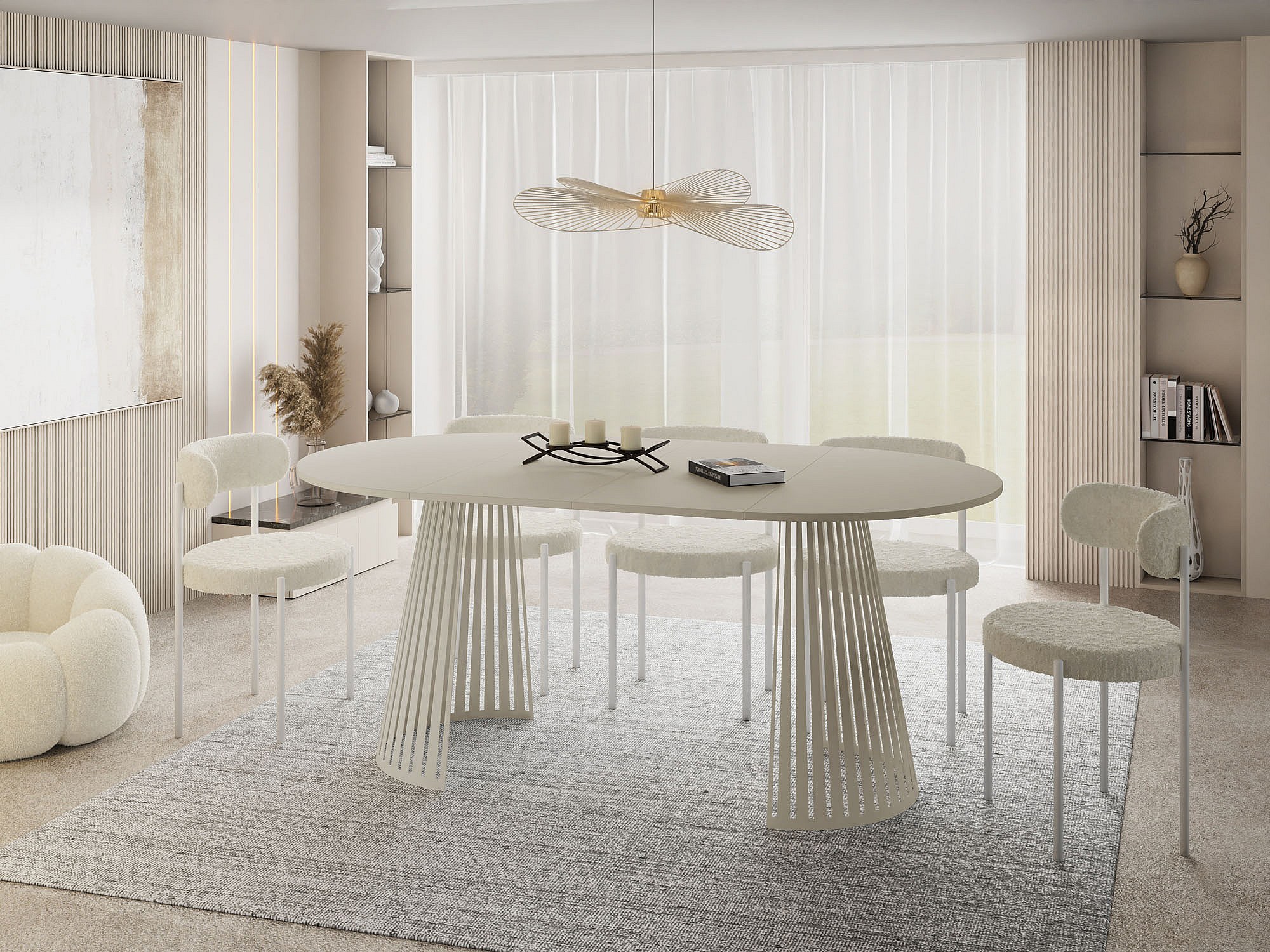 Esstisch Rund Ausziehbar mit Lamellen im Loft-Stil – 120 cm – Industrieller Tisch mit Metallbeinen in Beige Cashmere, Platzsparend für Wohnzimmer – Beige Cashmere
