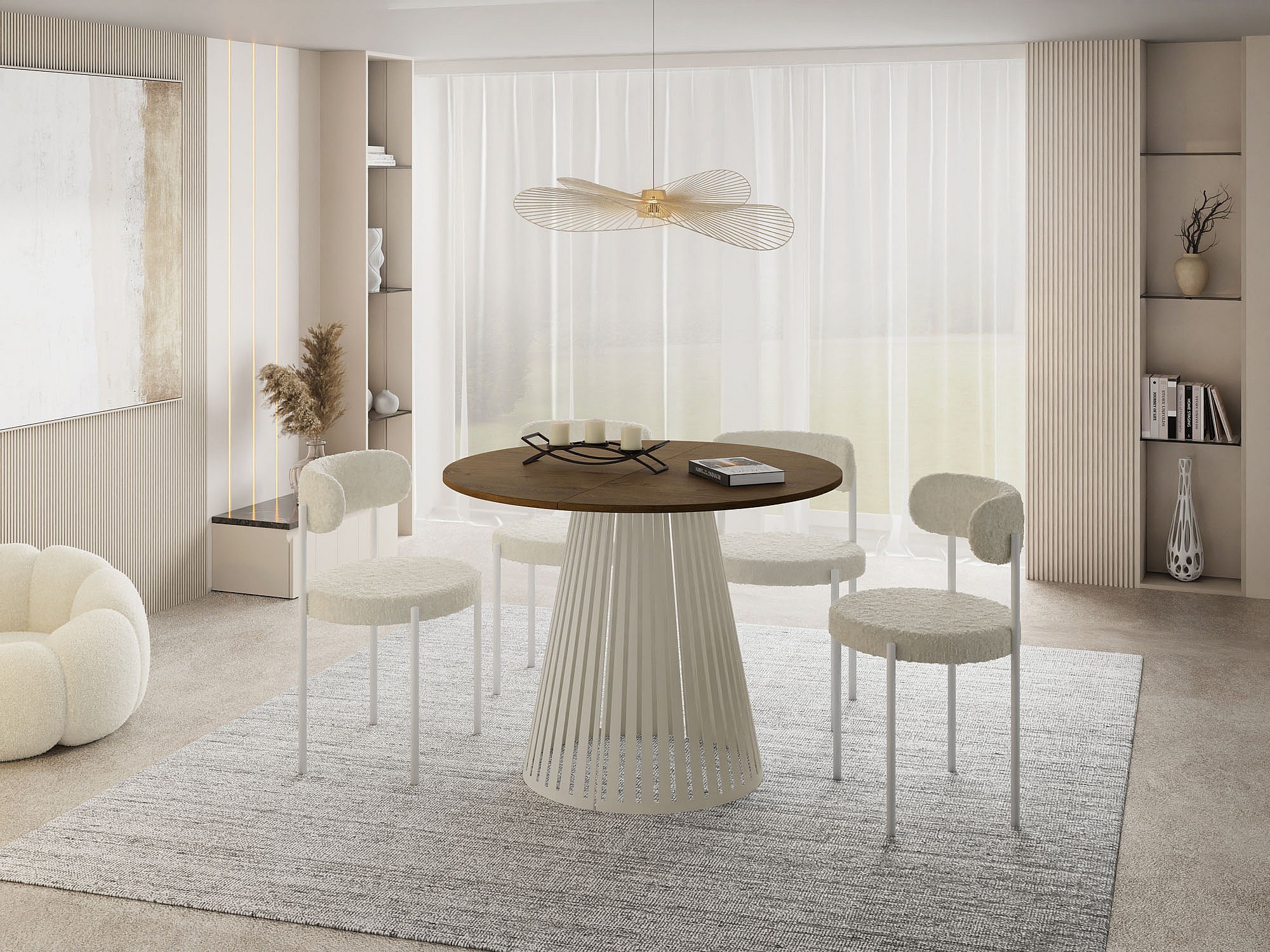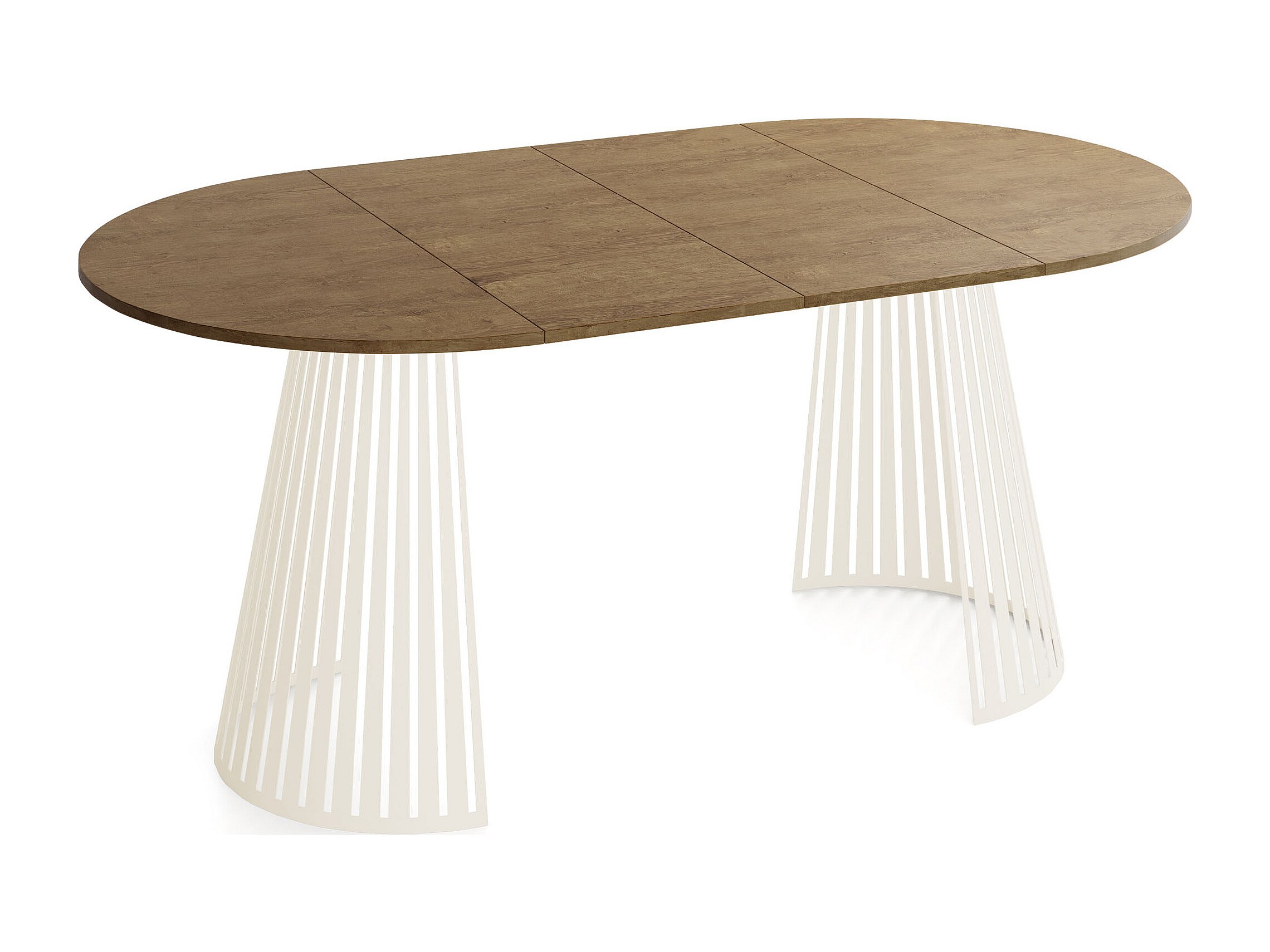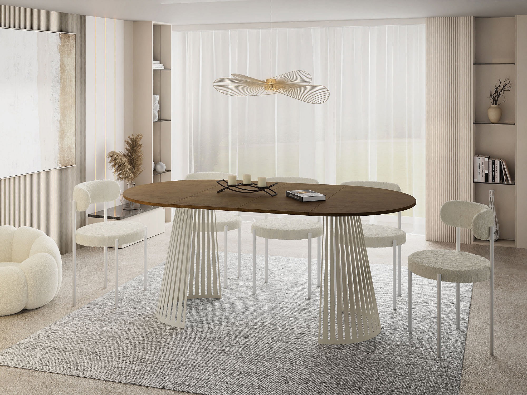 Esstisch Rund Ausziehbar mit Lamellen im Loft-Stil – 120 cm – Industrieller Tisch mit Metallbeinen in Beige Cashmere, Platzsparend für Wohnzimmer Esszimmer – Braun