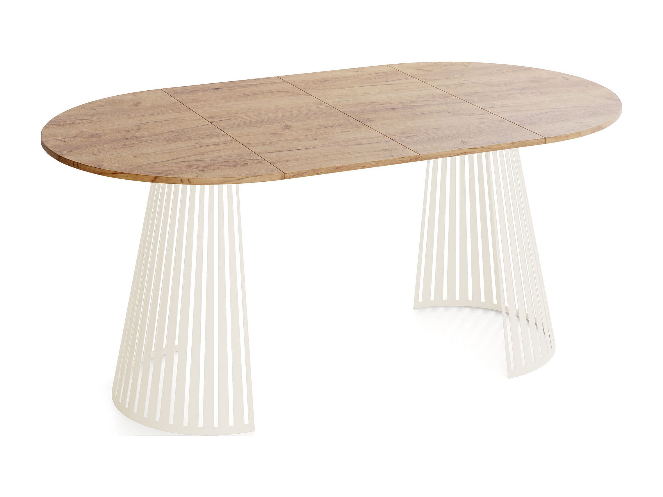 Esstisch Rund Ausziehbar mit Lamellen im Loft-Stil – 120 cm – Industrieller Tisch mit Metallbeinen in Beige Cashmere, Platzsparend für Wohnzimmer, Esszimmer – Braun