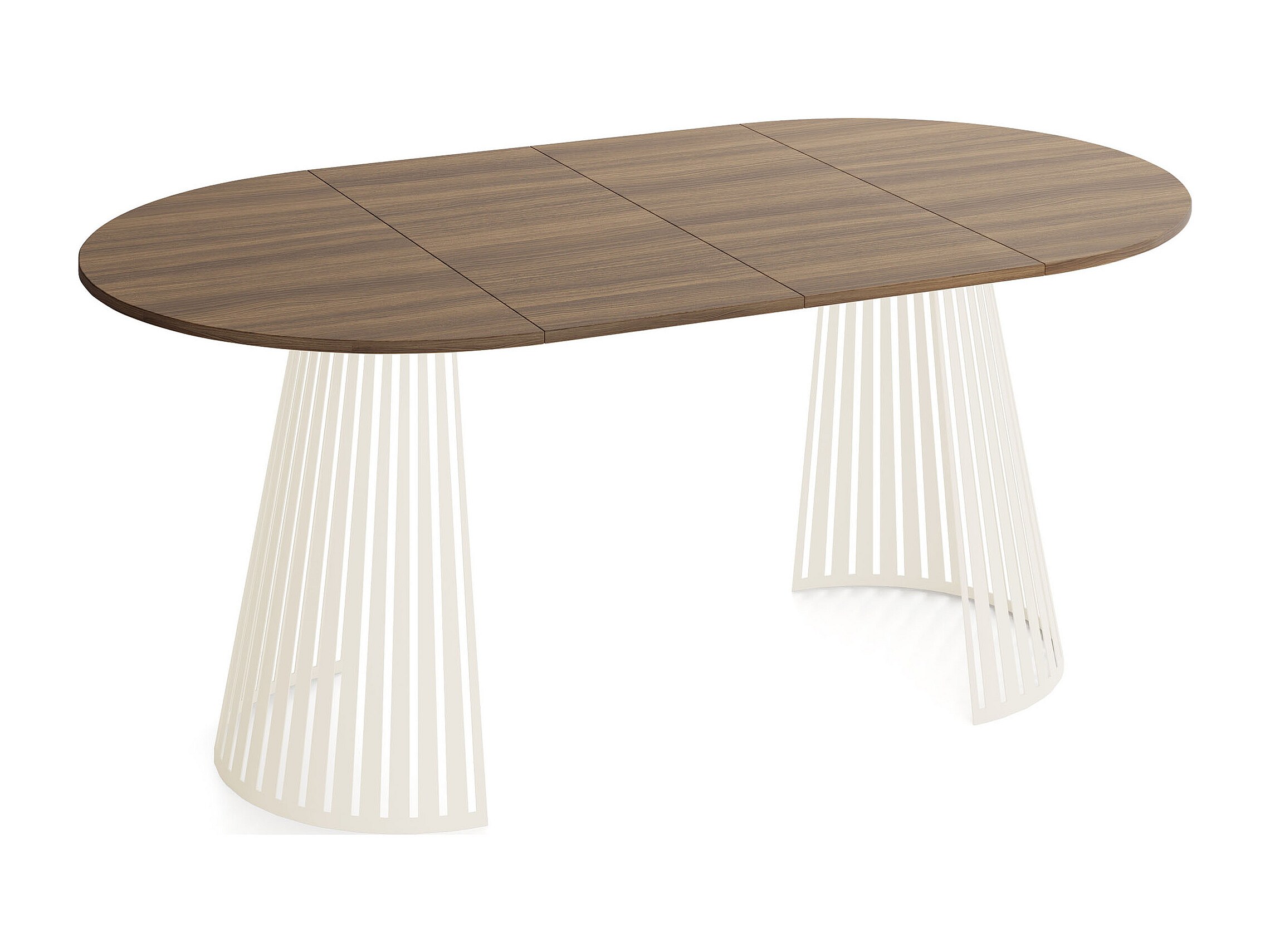 Esstisch Rund Ausziehbar mit Lamellen im Loft-Stil – 120 cm – Industrieller Tisch mit Metallbeinen in Beige Cashmere, Platzsparend für Wohnzimmer – Walnuss Braun