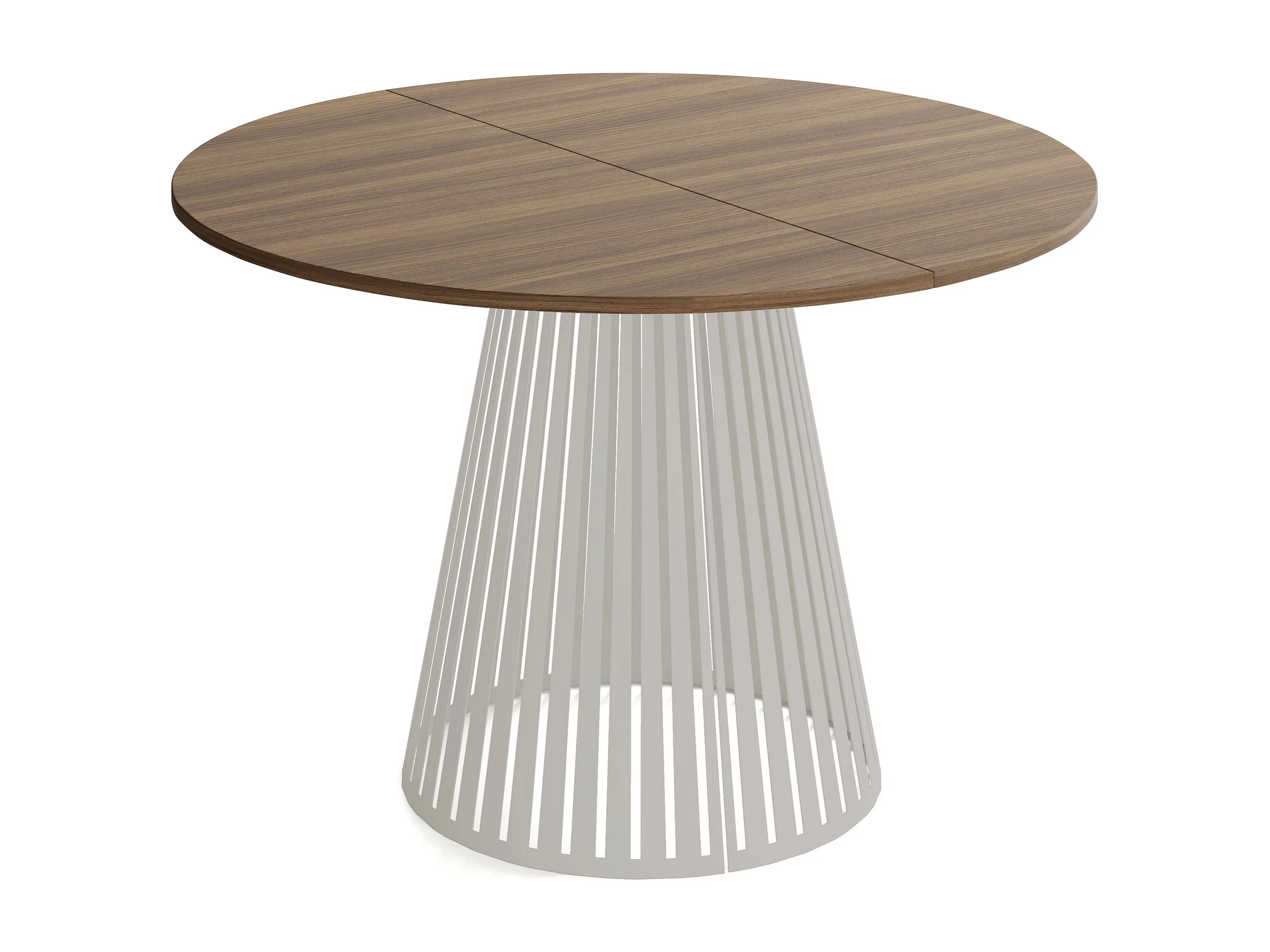 Esstisch Rund Ausziehbar mit Lamellen im Loft-Stil – 120 cm – Industrieller Tisch mit Metallbeinen in Grau-Beige, Platzsparend für Wohnzimmer – Walnuss Braun