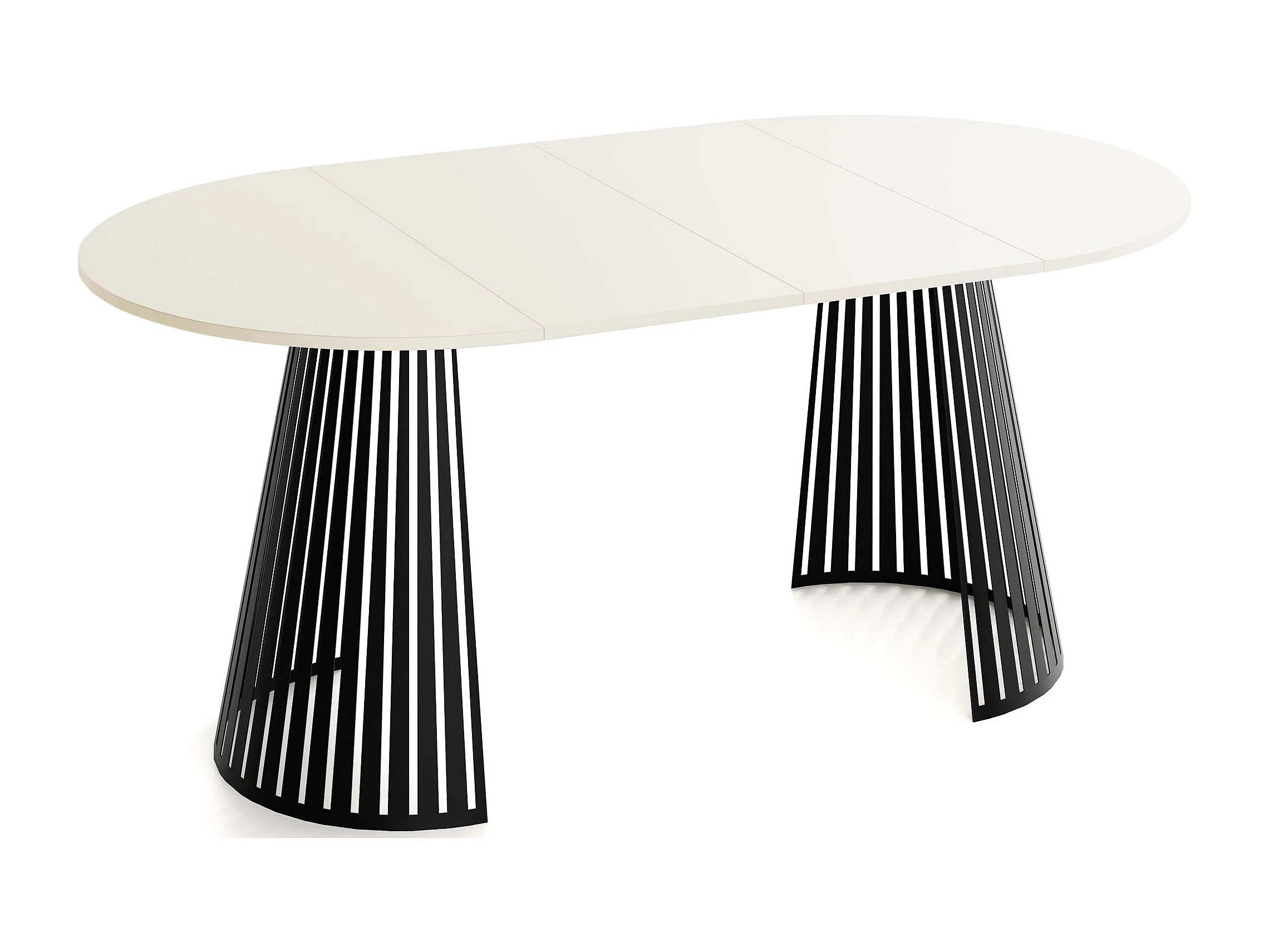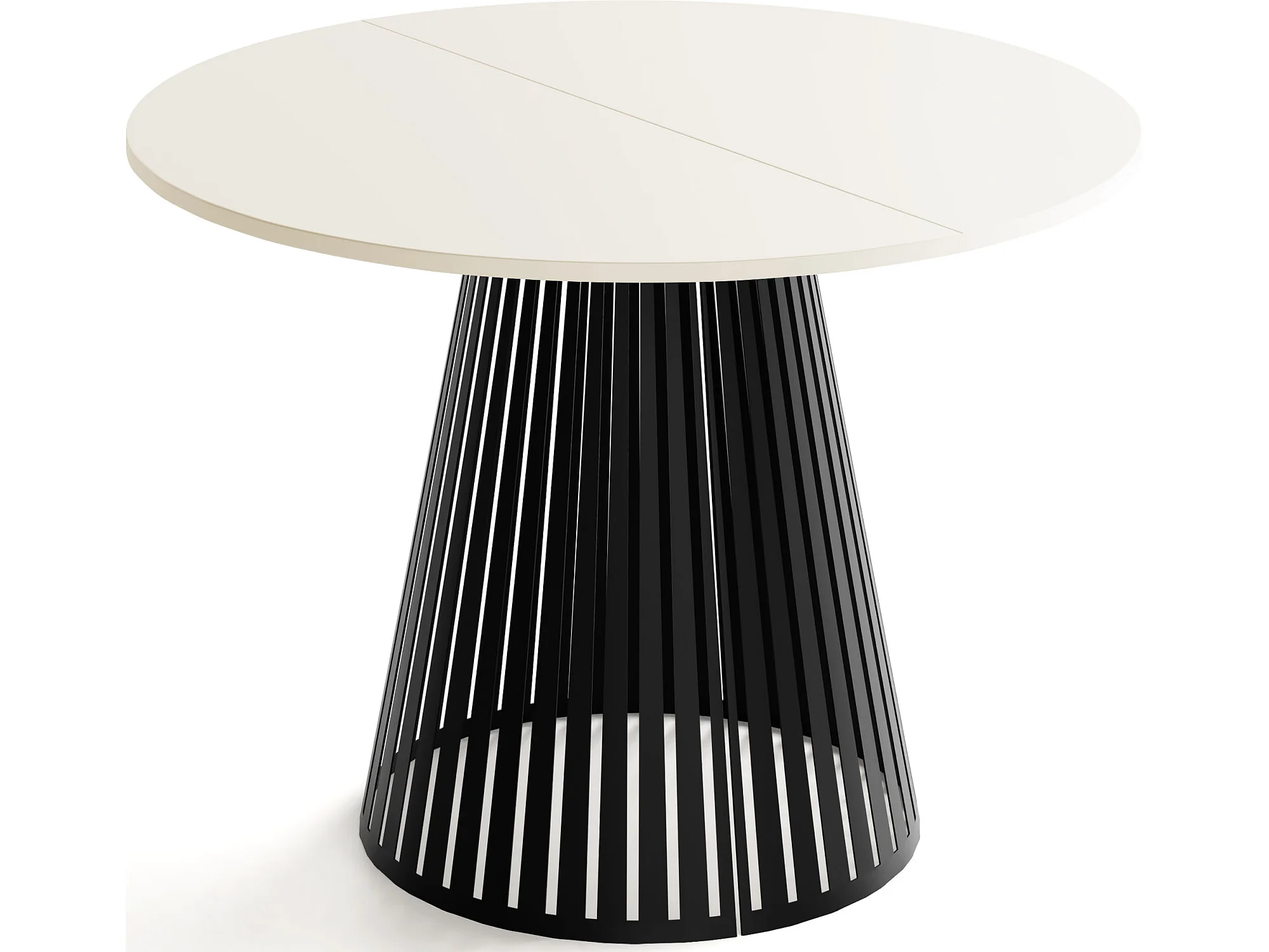 Esstisch Rund Ausziehbar mit Lamellen im Loft-Stil – 120 cm – Industrieller Tisch mit Schwarzen Metallbeinen, Platzsparend für Wohnzimmer Esszimmer – Beige Cashmere