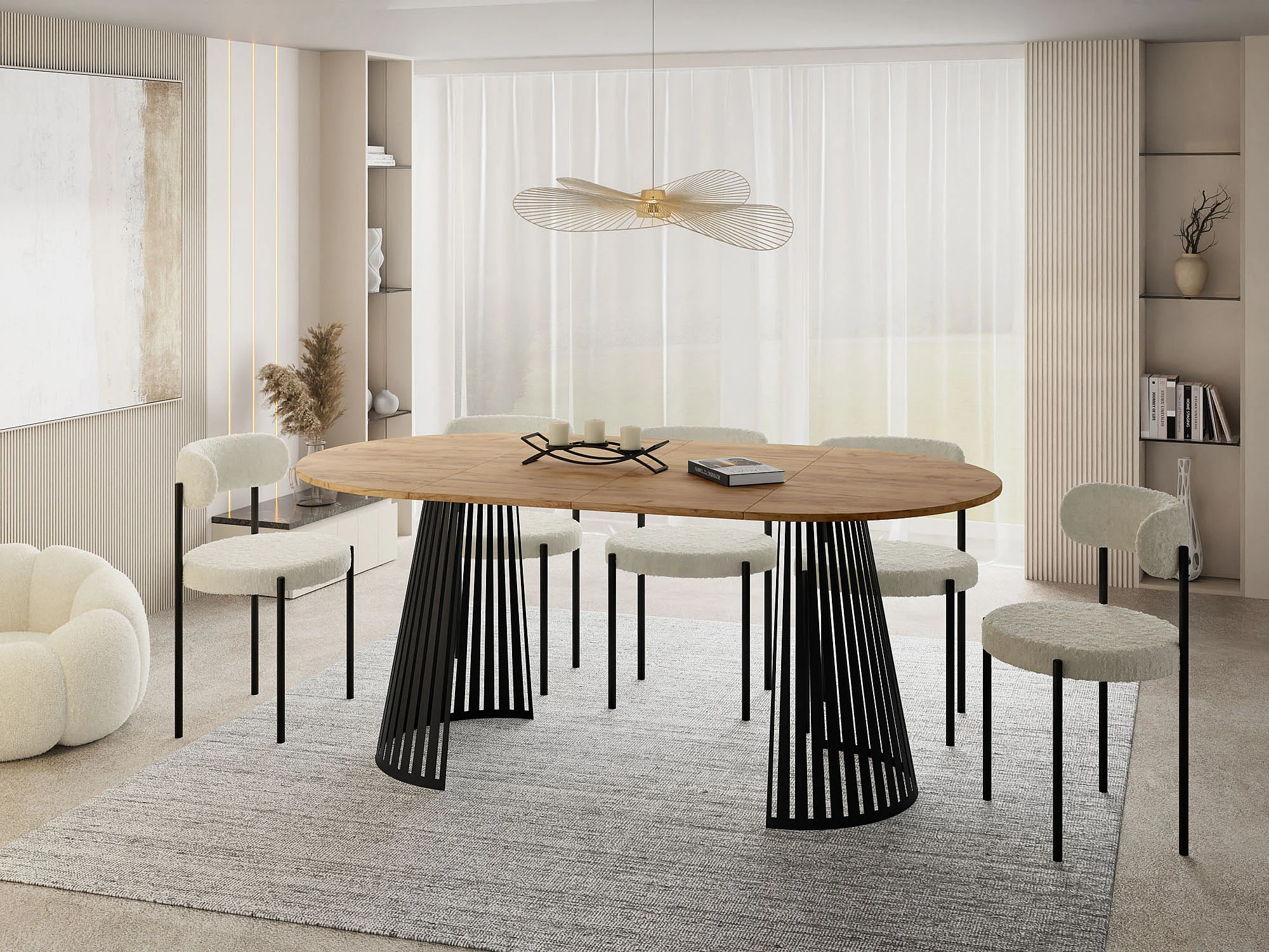 Esstisch Rund Ausziehbar mit Lamellen im Loft-Stil – 120 cm – Industrieller Tisch mit Schwarzen Metallbeinen, Platzsparend für Wohnzimmer Esszimmer – Braun