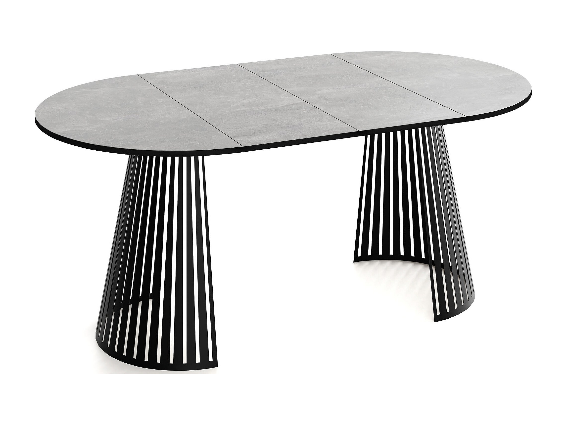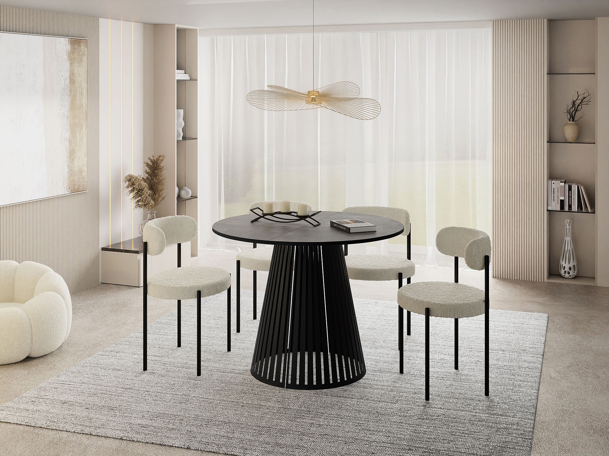 Esstisch Rund Ausziehbar mit Lamellen im Loft-Stil – 120 cm – Industrieller Tisch mit Schwarzen Metallbeinen, Platzsparend für Wohnzimmer Esszimmer – Grauer Beton