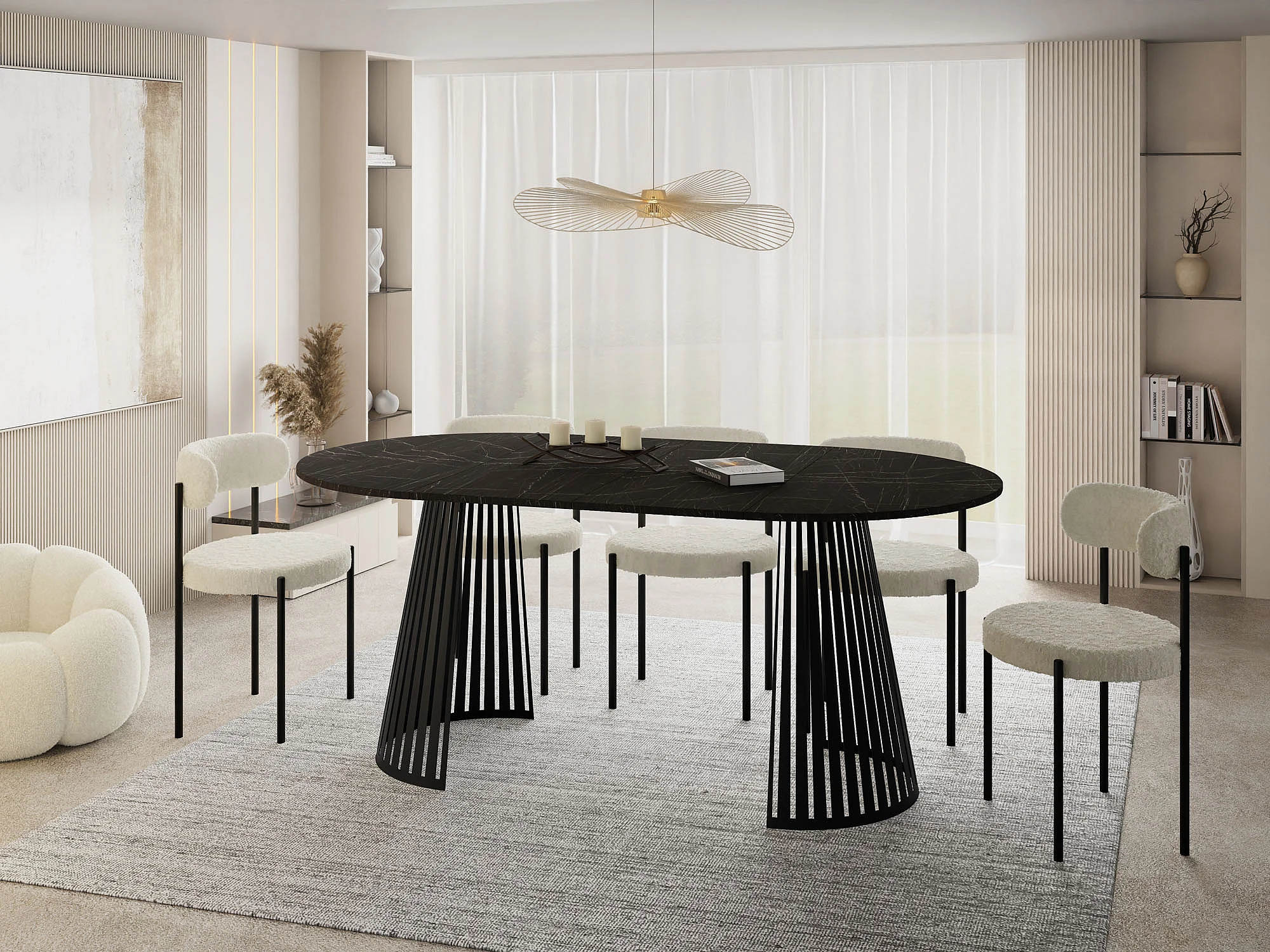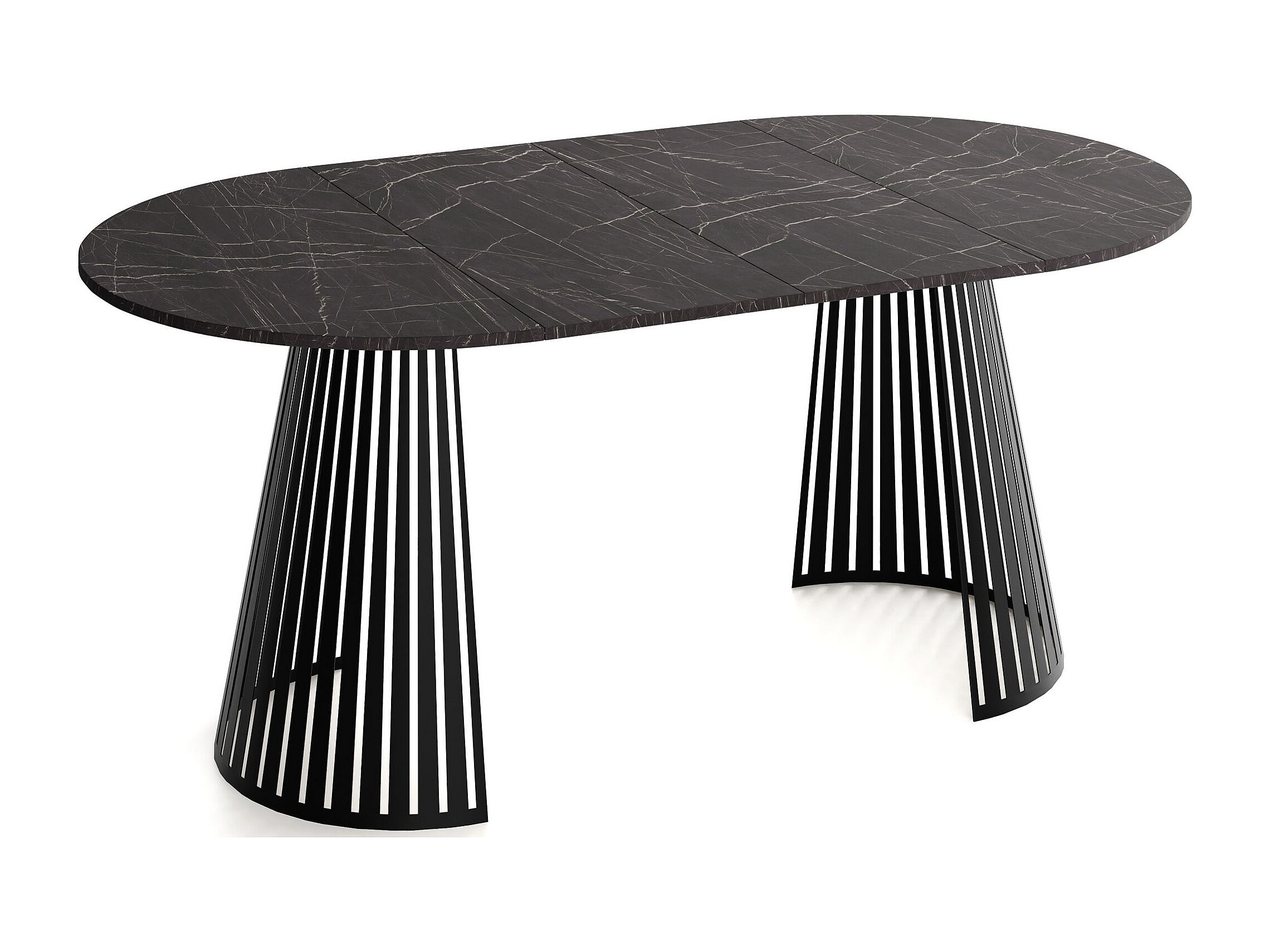 Esstisch Rund Ausziehbar mit Lamellen im Loft-Stil – 120 cm – Industrieller Tisch mit Schwarzen Metallbeinen, Platzsparend für Wohnzimmer Esszimmer – Marmor Schwarz