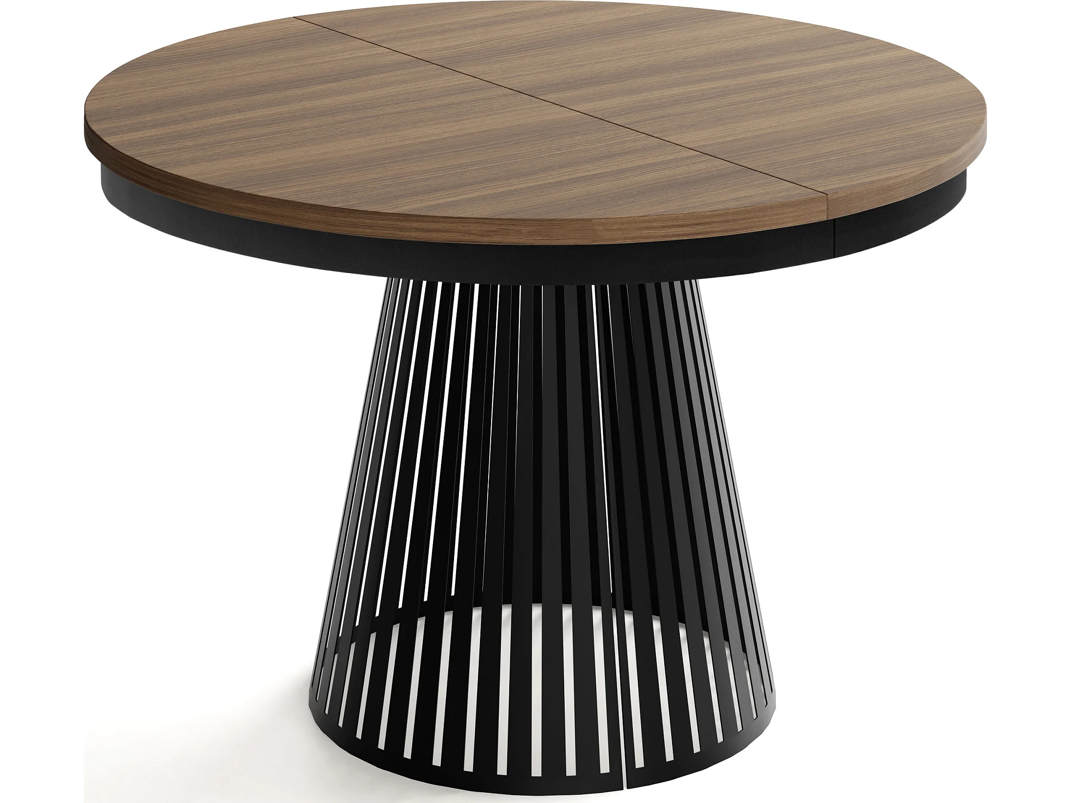 Esstisch Rund Ausziehbar mit Lamellen im Loft-Stil – 120 cm – Industrieller Tisch mit Schwarzen Metallbeinen, Platzsparend für Wohnzimmer – Walnuss Braun