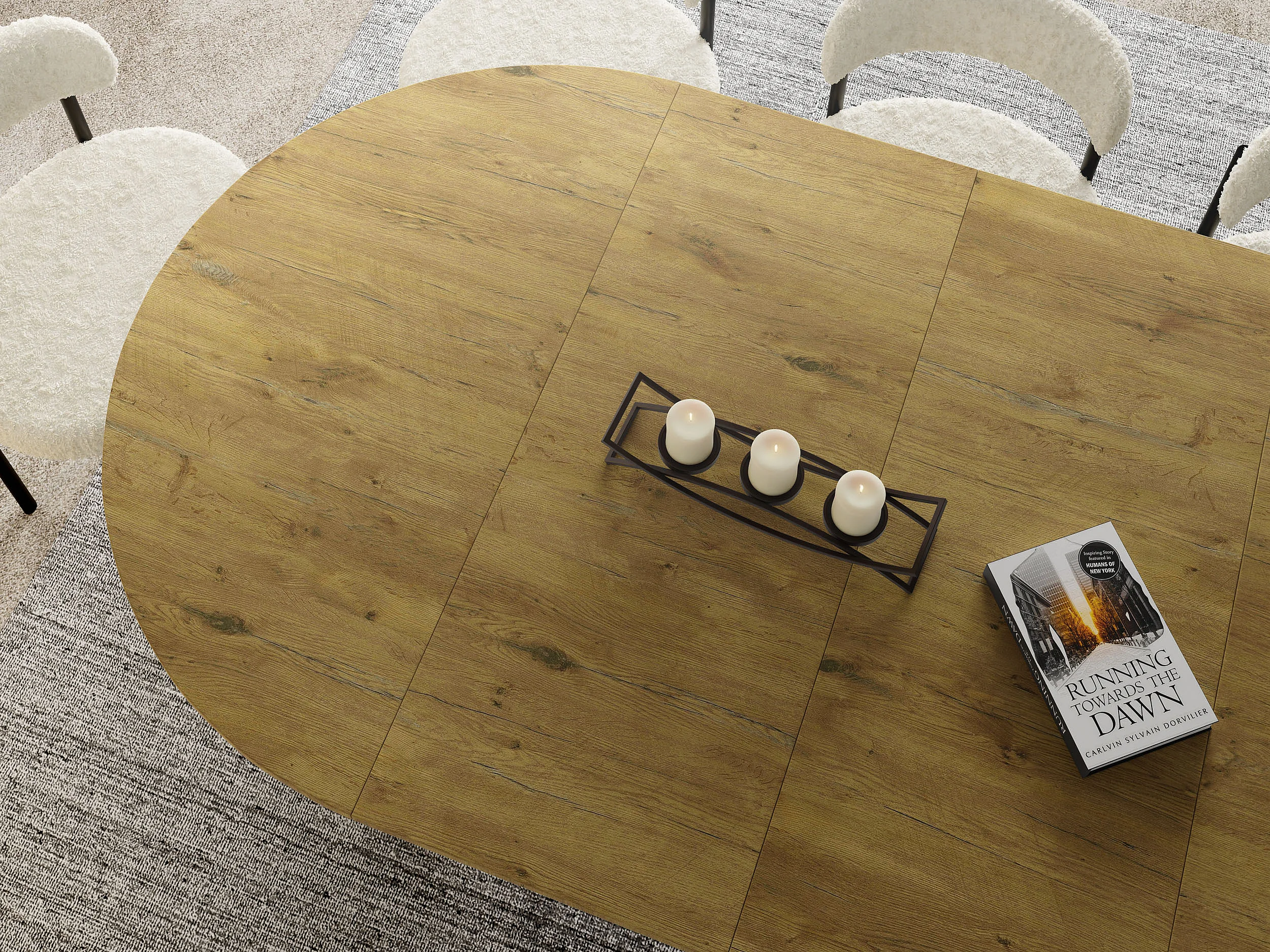 Esstisch Rund Ausziehbar mit Lamellen im Loft-Stil – 120 cm – Industrieller Tisch mit Weißen Metallbeinen, Platzsparend für Wohnzimmer Esszimmer – Braun