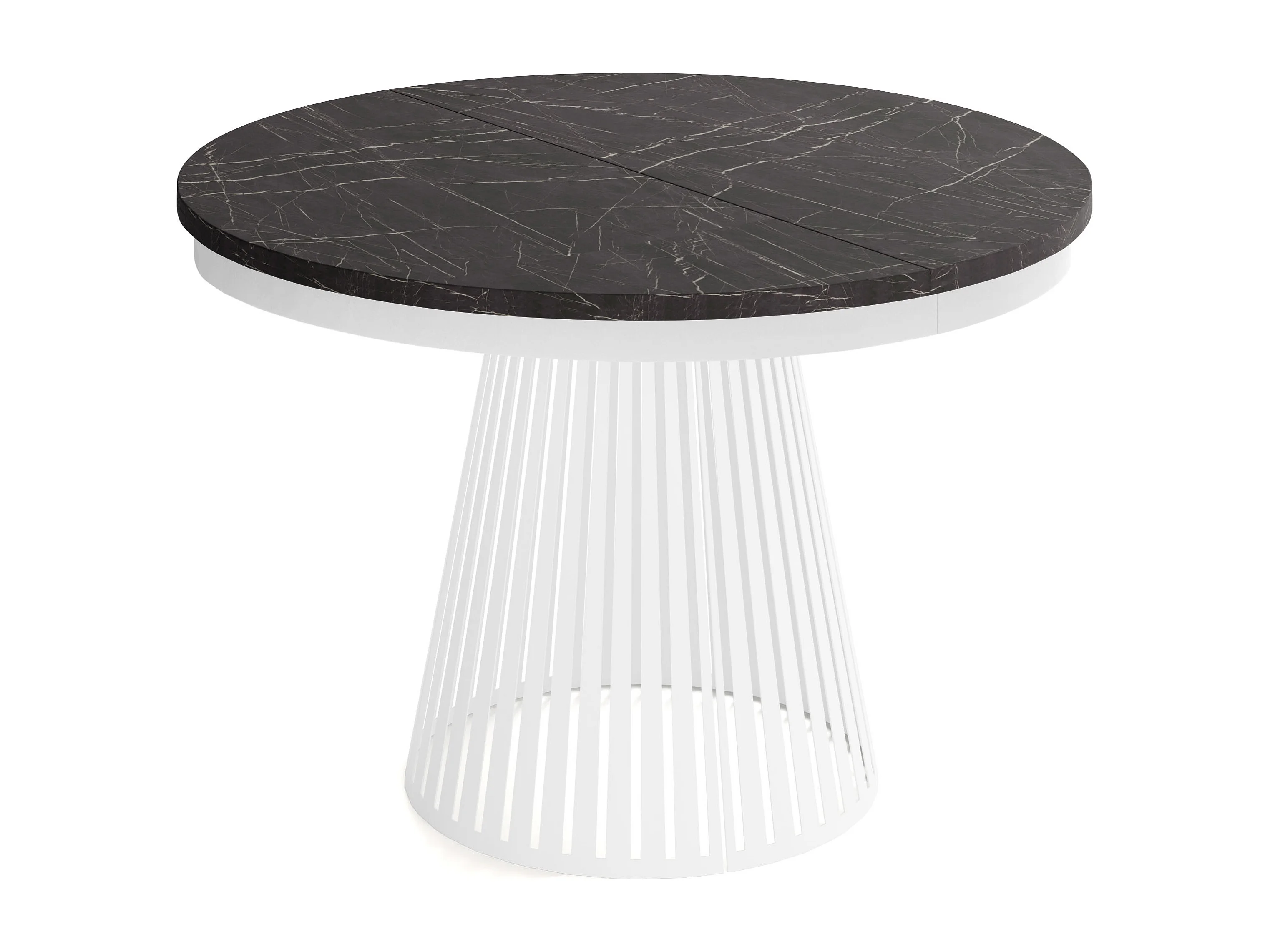 Esstisch Rund Ausziehbar mit Lamellen im Loft-Stil – 120 cm – Industrieller Tisch mit Weißen Metallbeinen, Platzsparend für Wohnzimmer Esszimmer – Marmor Schwarz