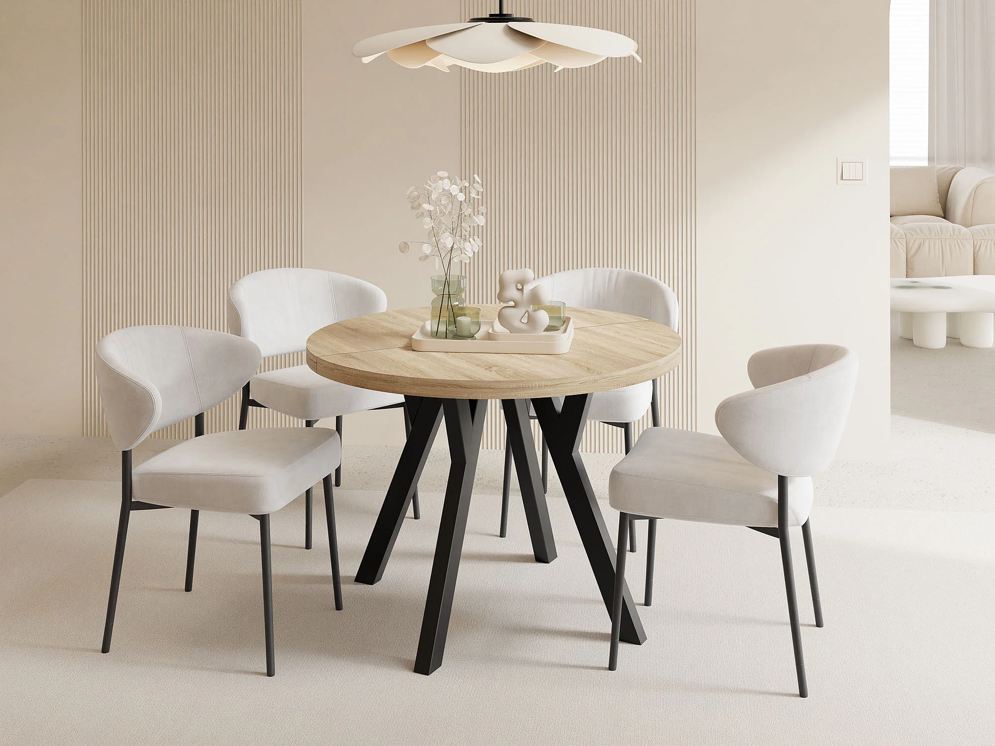 Esstisch Rund Groß XXL Ausziehbar im Loft-Stil – 100 bis 250 cm – Extra Lang Ausziehtisch mit Schwarzen Holzbeinen, Tisch für 5-14 Personen – Eiche Hell Braun